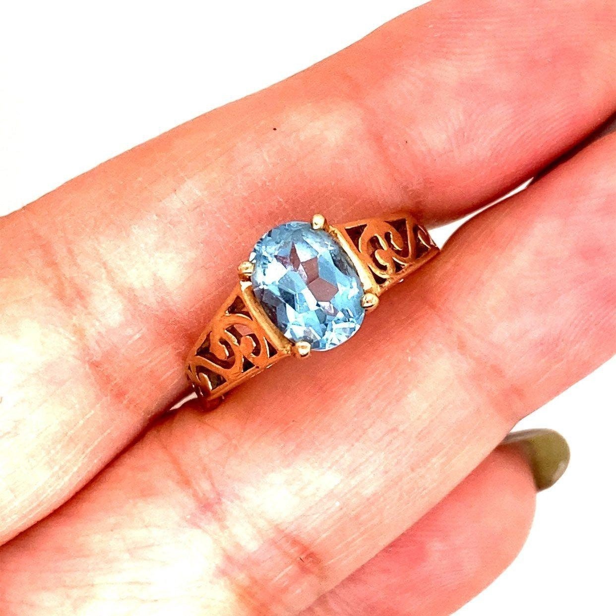 Real 10k Yellow Gold Blue Topaz Ring, NOT GOLD PLATED OR GOLD FILLED.