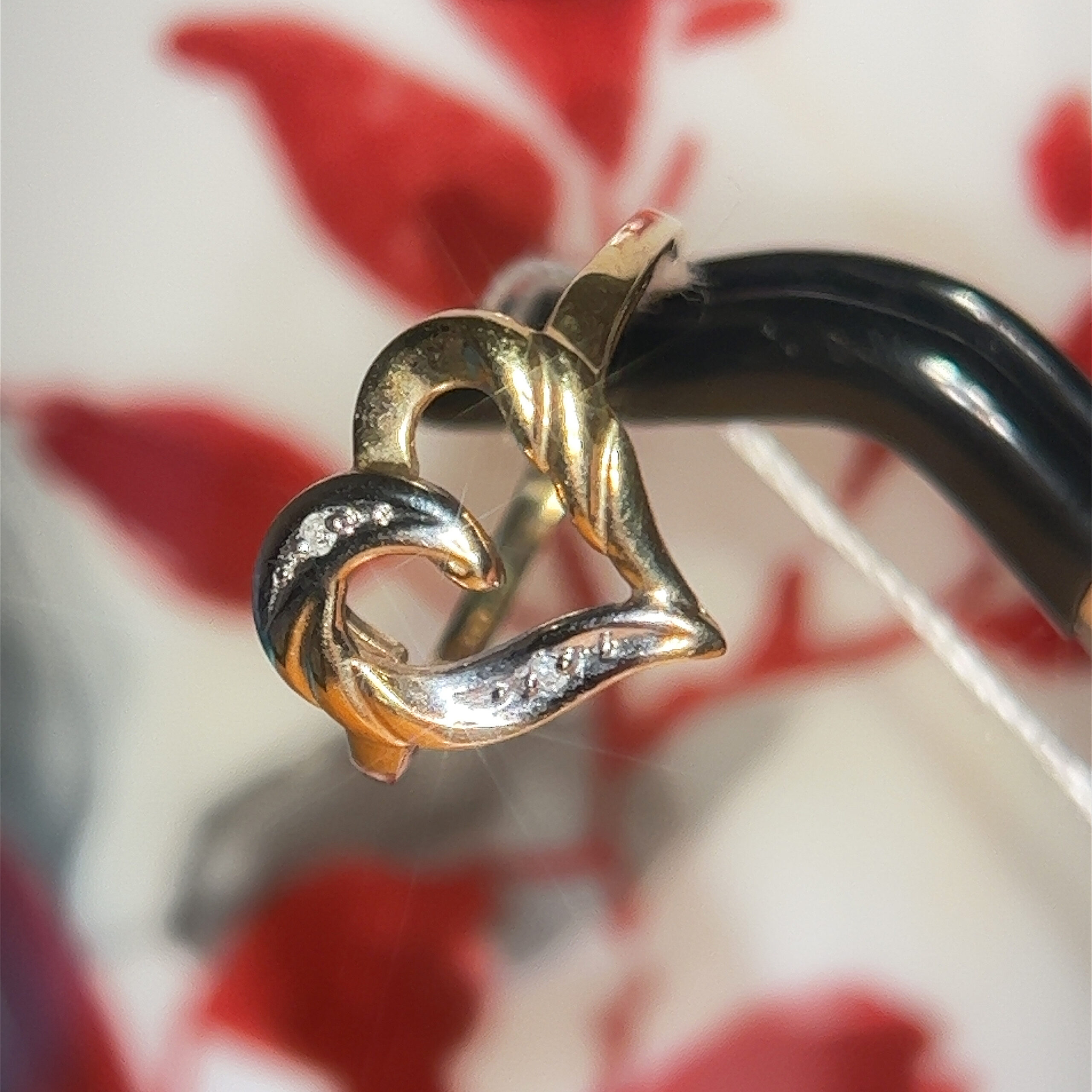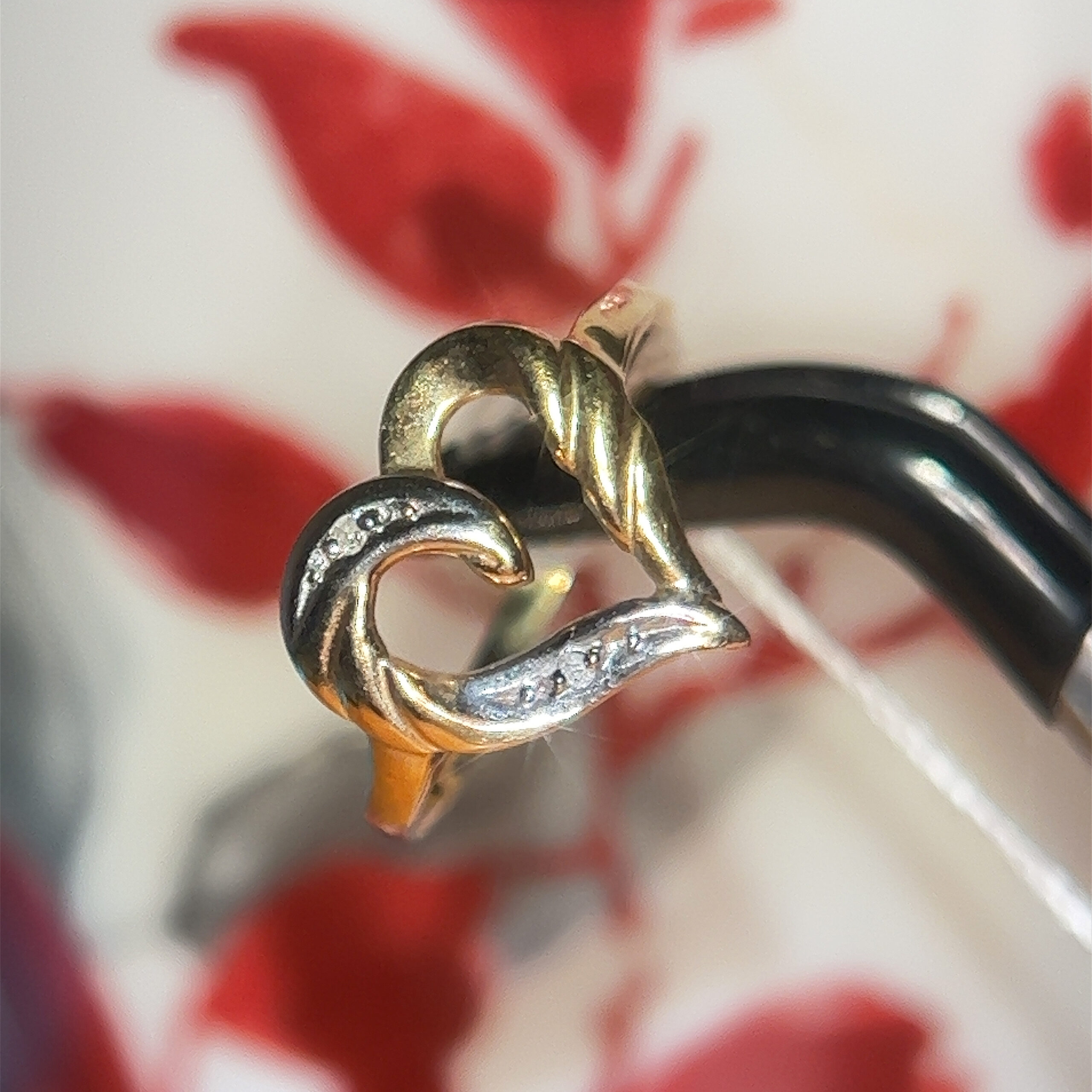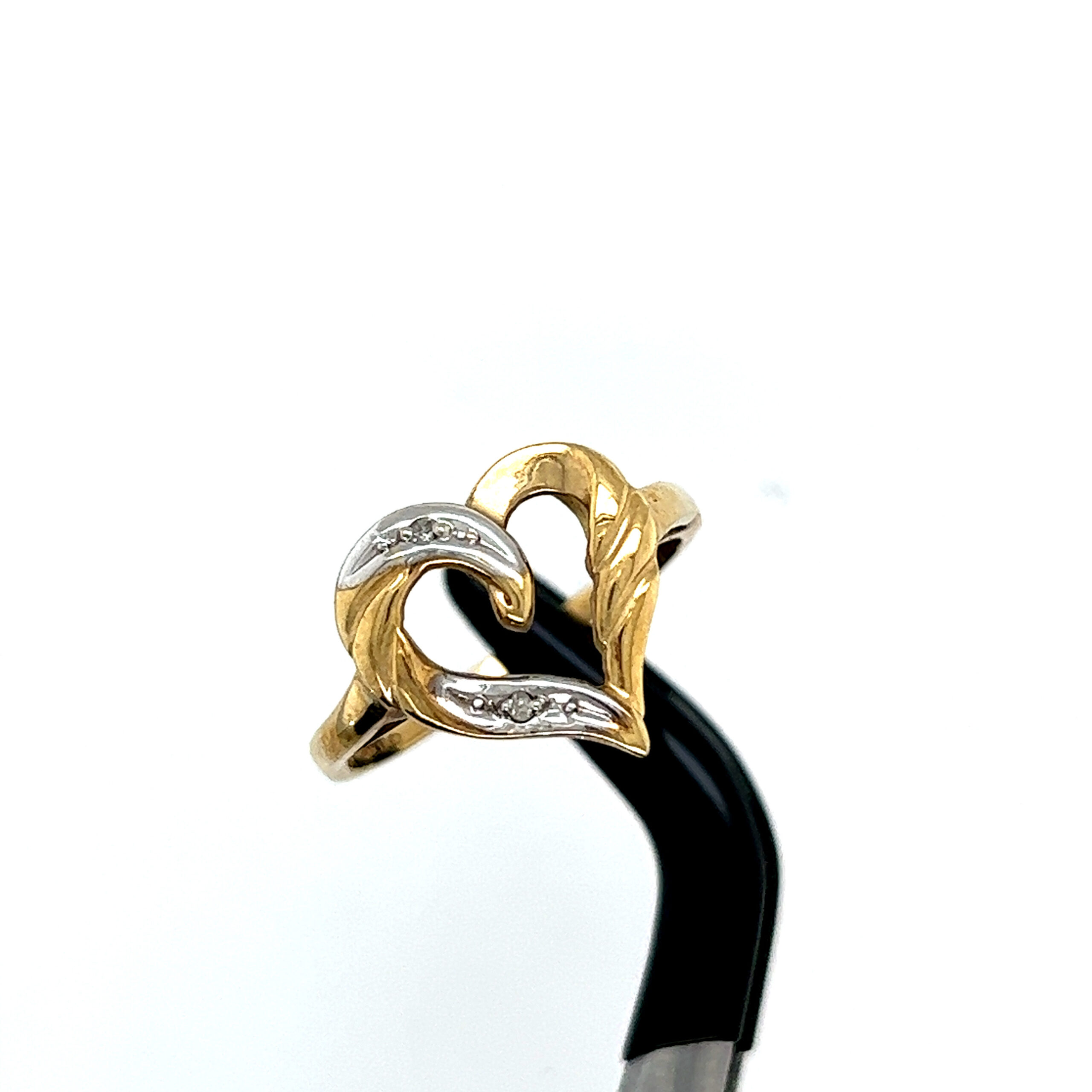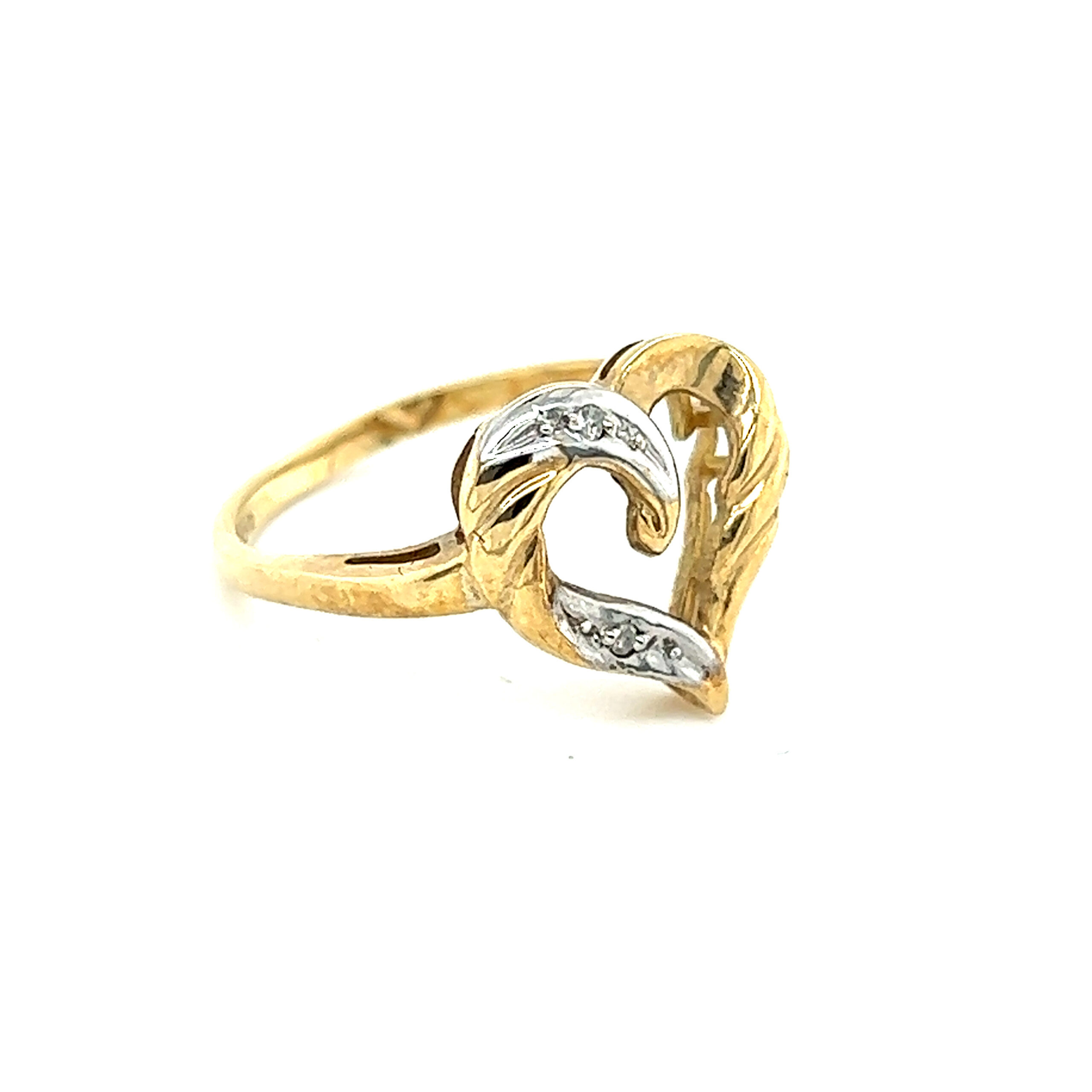 The ring has small diamonds. Cute for gift or could use as an engagement ring too.