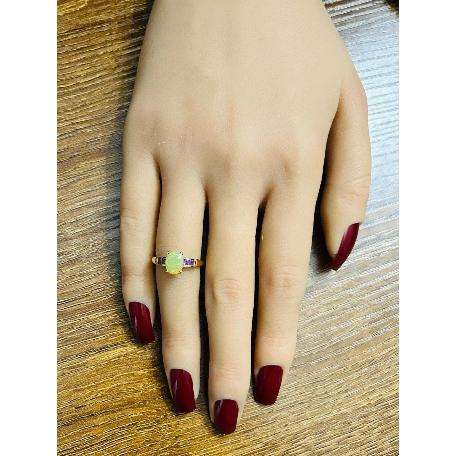 Real 10k Yellow Gold Opal / Pink Stones Ring, REAL GOLD, NOT GOLD PLATED OR GOLD FILLED.
