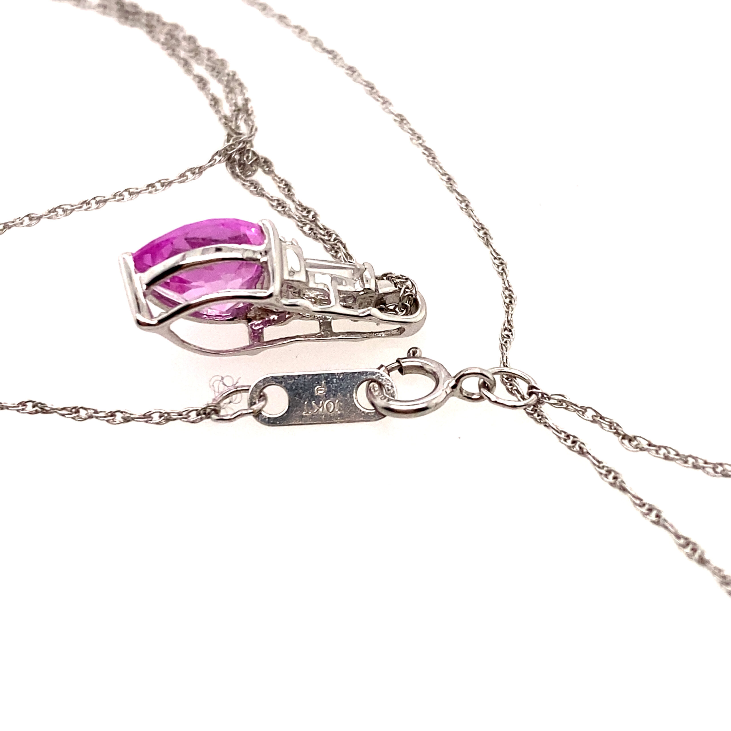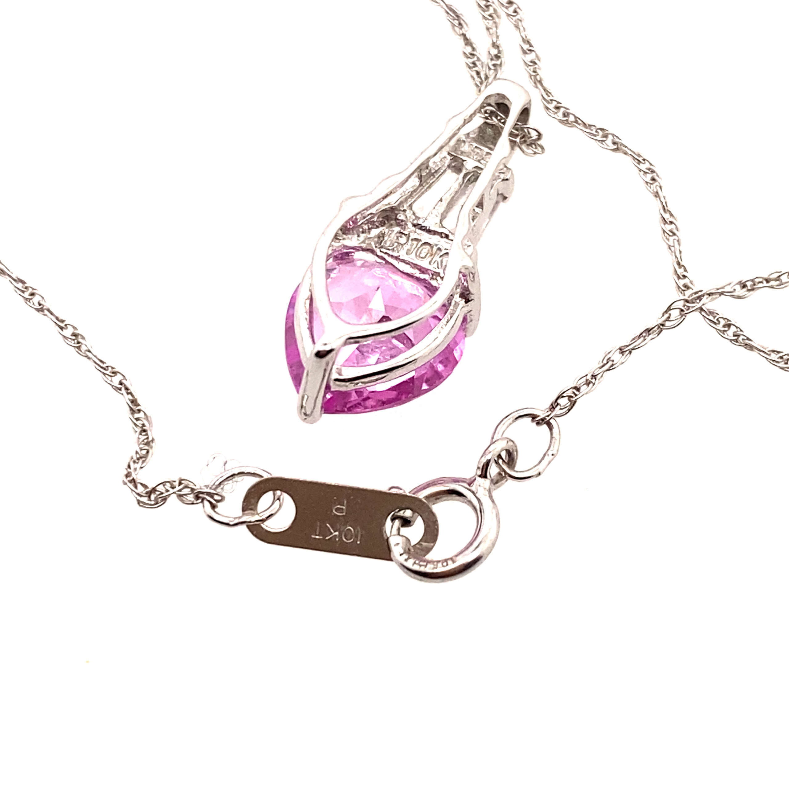 Real 10KT White Gold Lab Pink Sapphire and CZ Pendant Necklace , NOT GOLD PLATED OR GOLD FILLED.