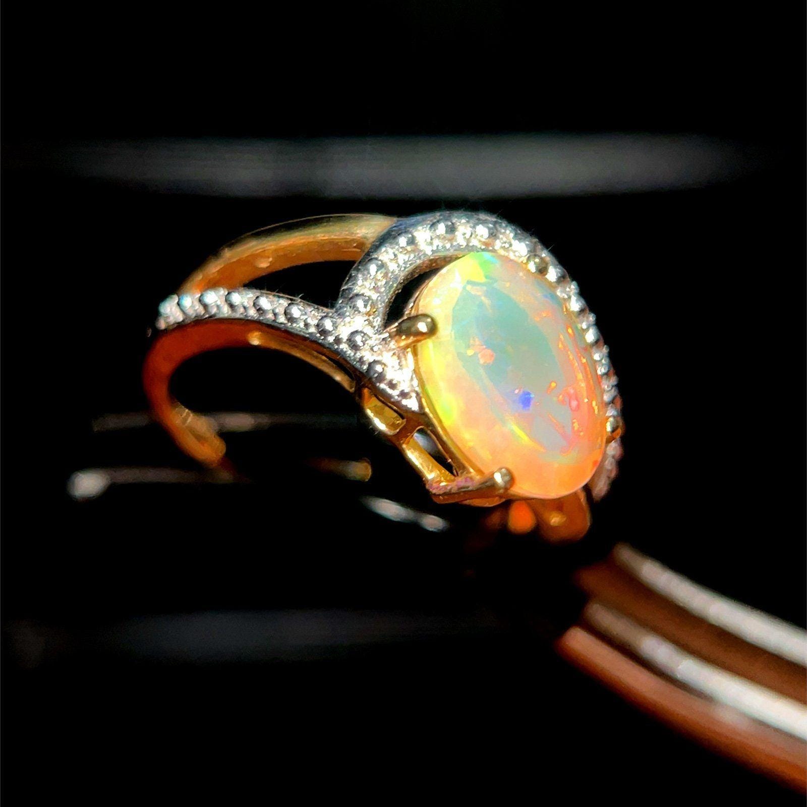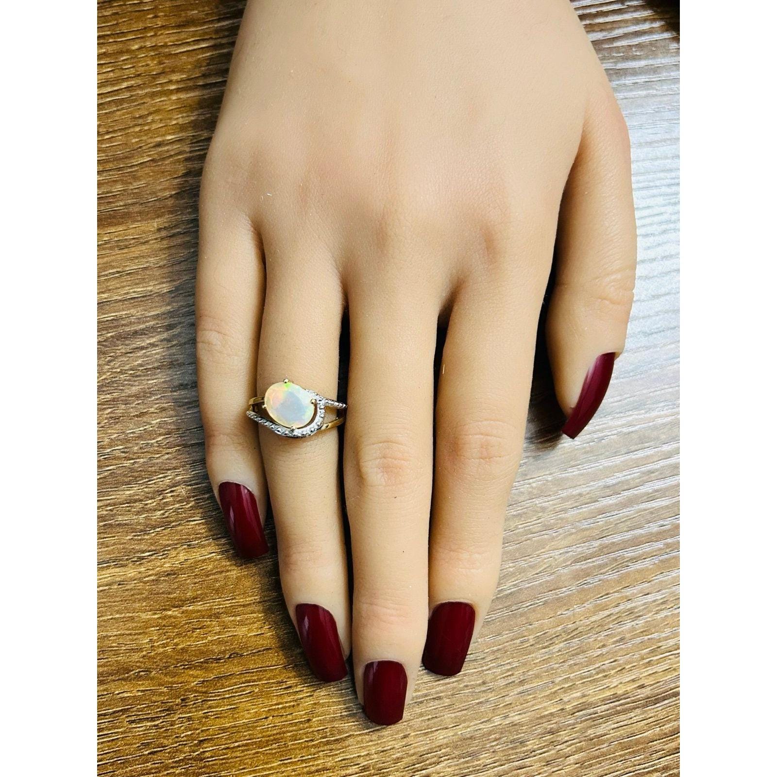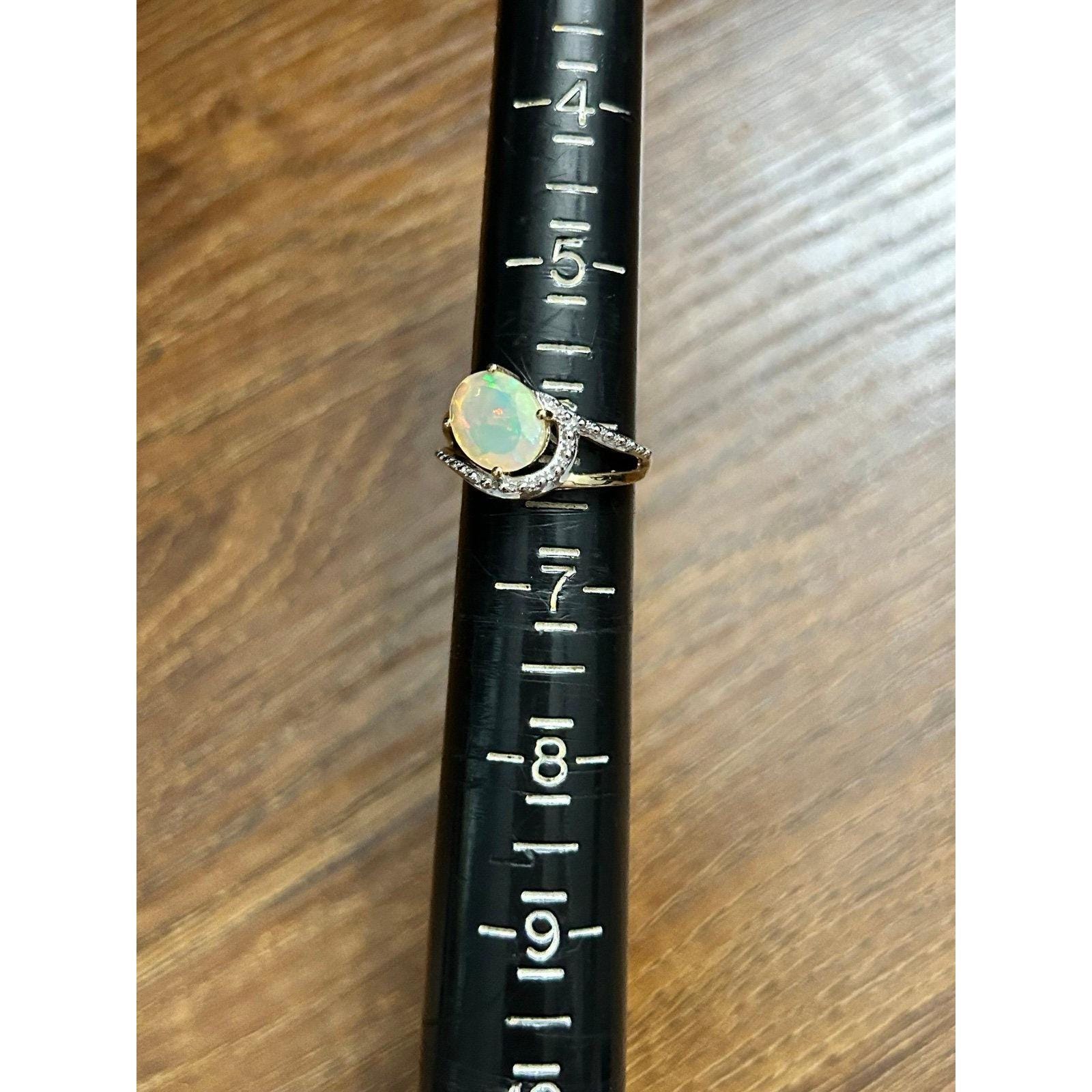 Real 10K Yellow Gold Opal and Diamonds Ring, NOT GOLD PLATED OR GOLD FILLED.