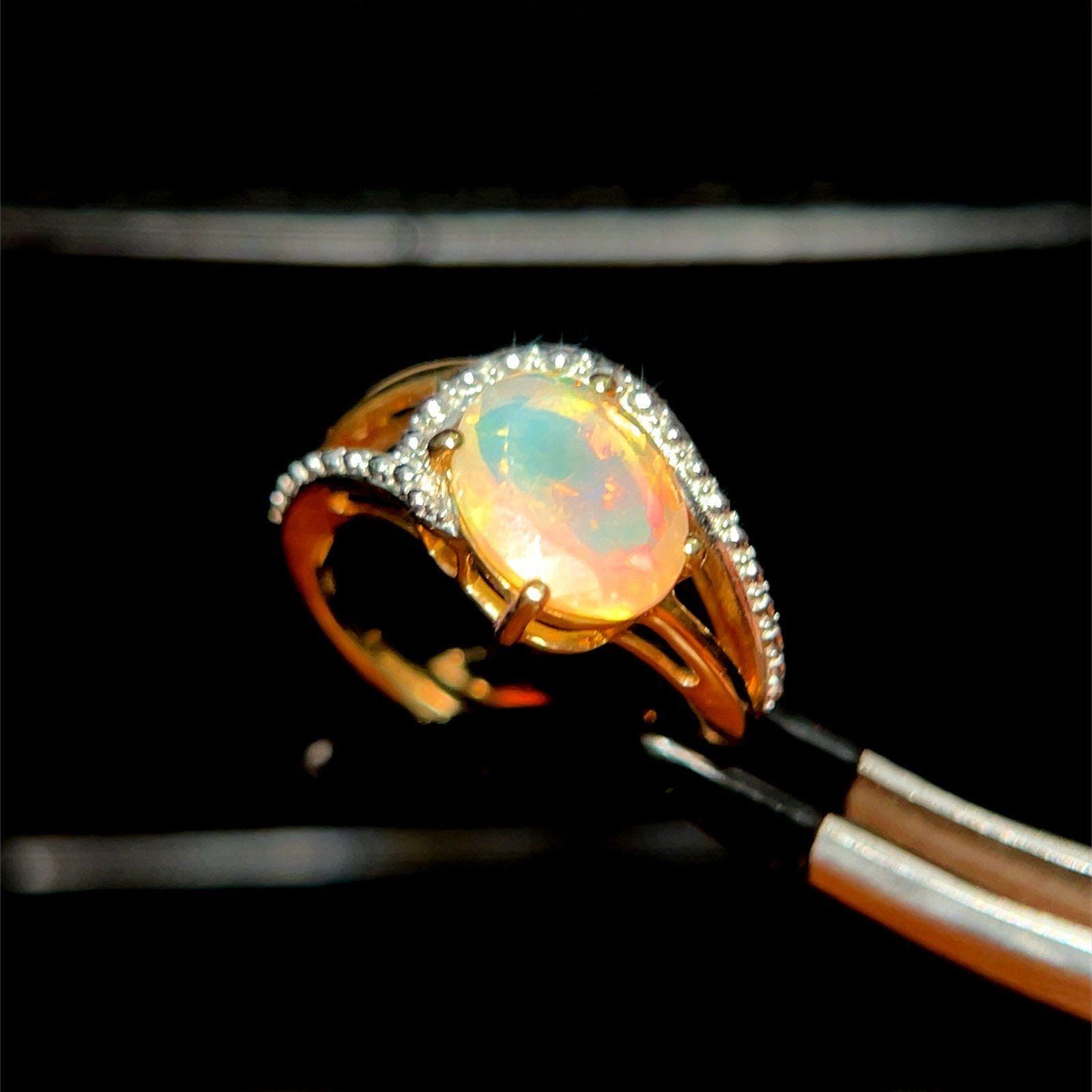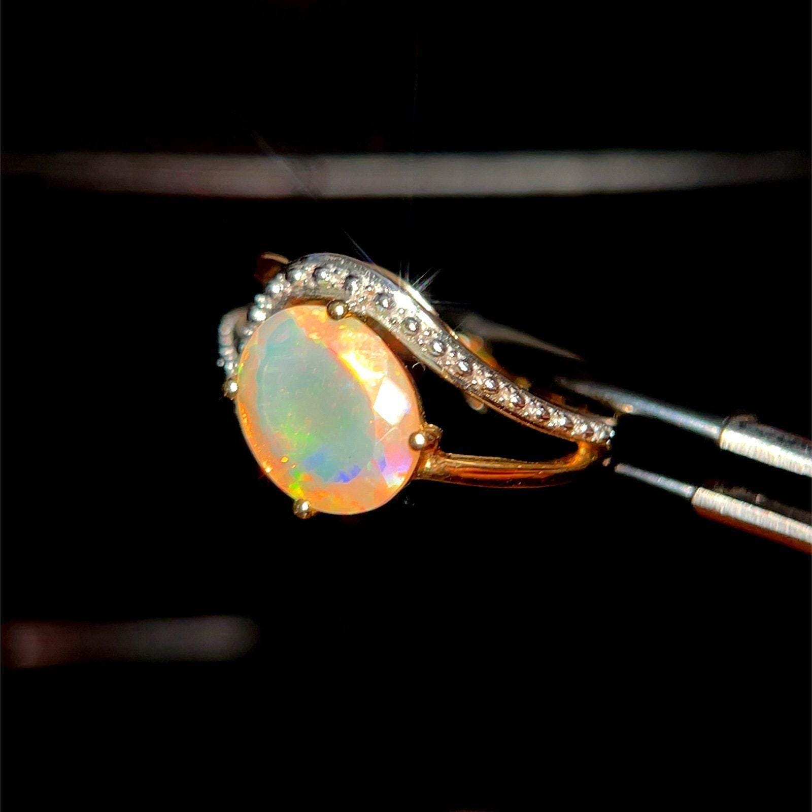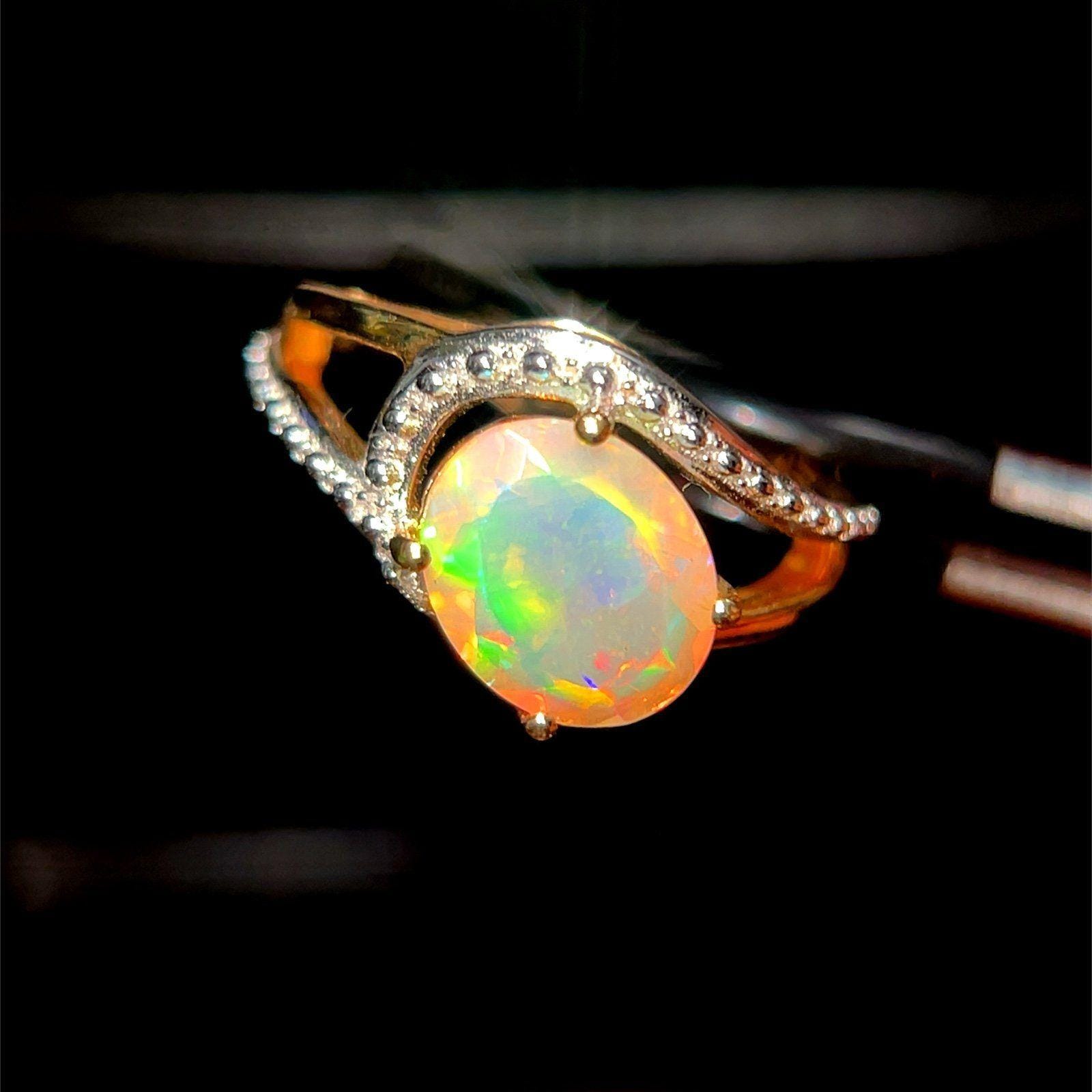 Real 10K Yellow Gold Opal and Diamonds Ring, NOT GOLD PLATED OR GOLD FILLED.