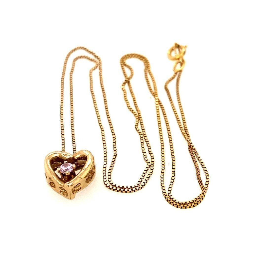 Real 10KT Pink Sapphire Heart Necklace , NOT GOLD PLATED OR GOLD FILLED.