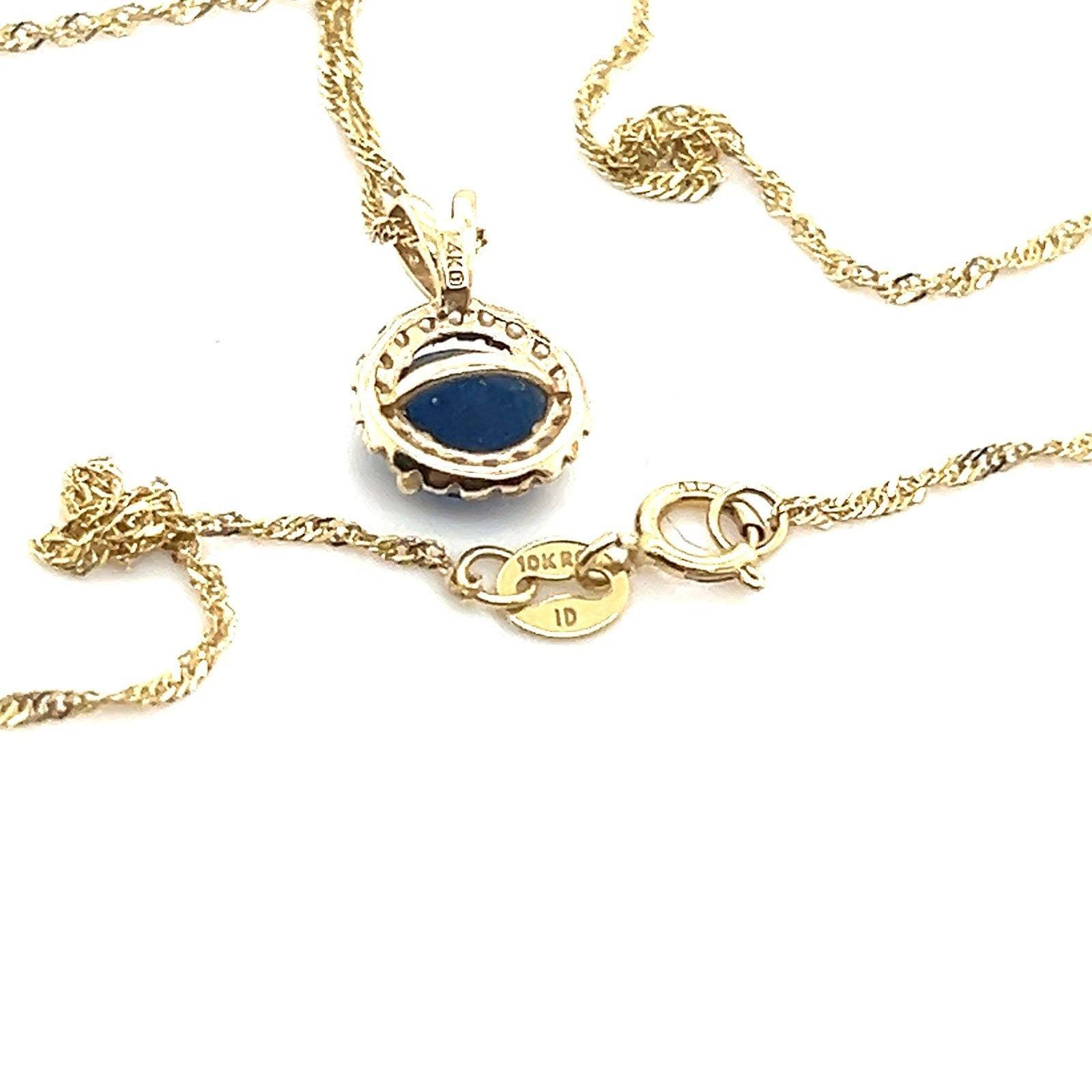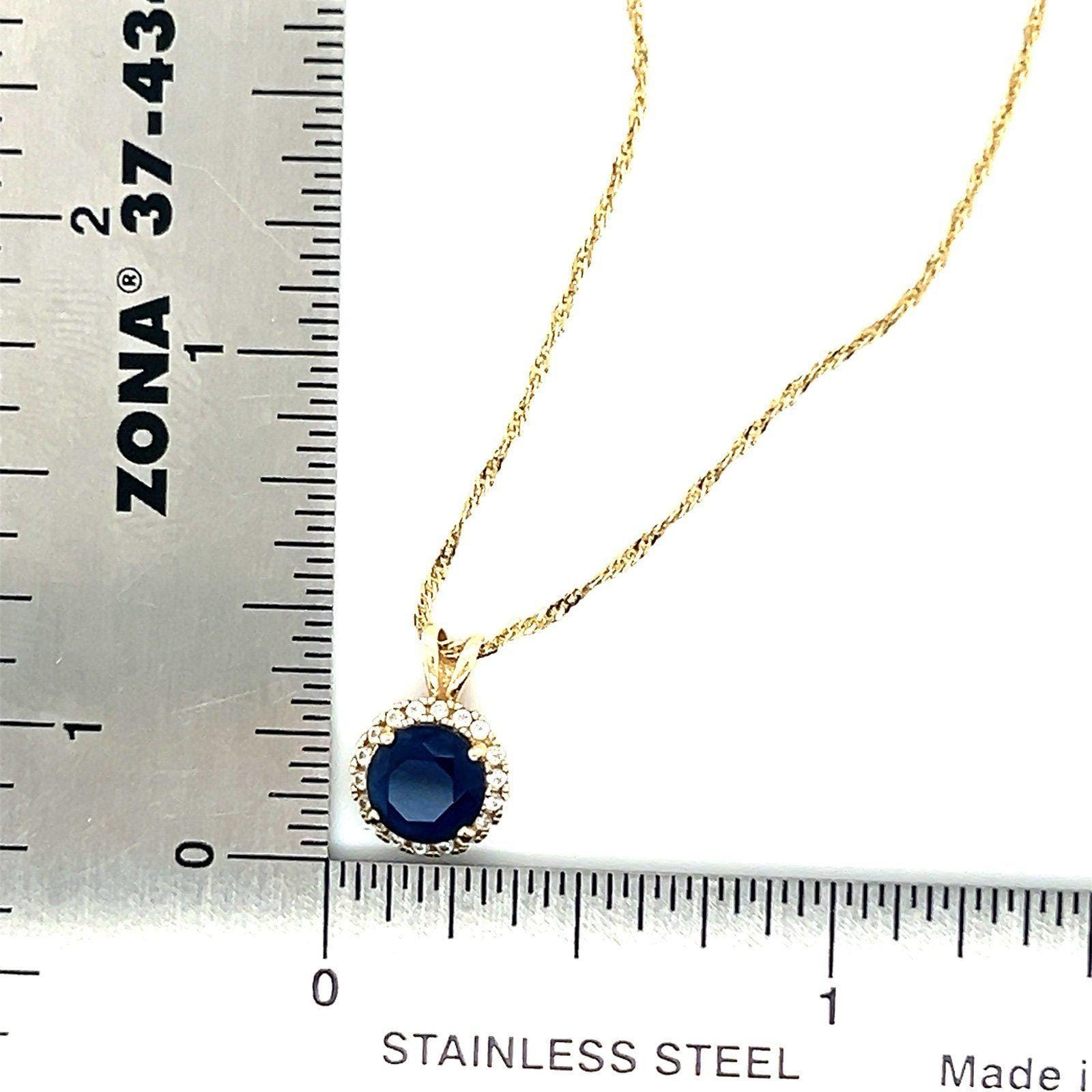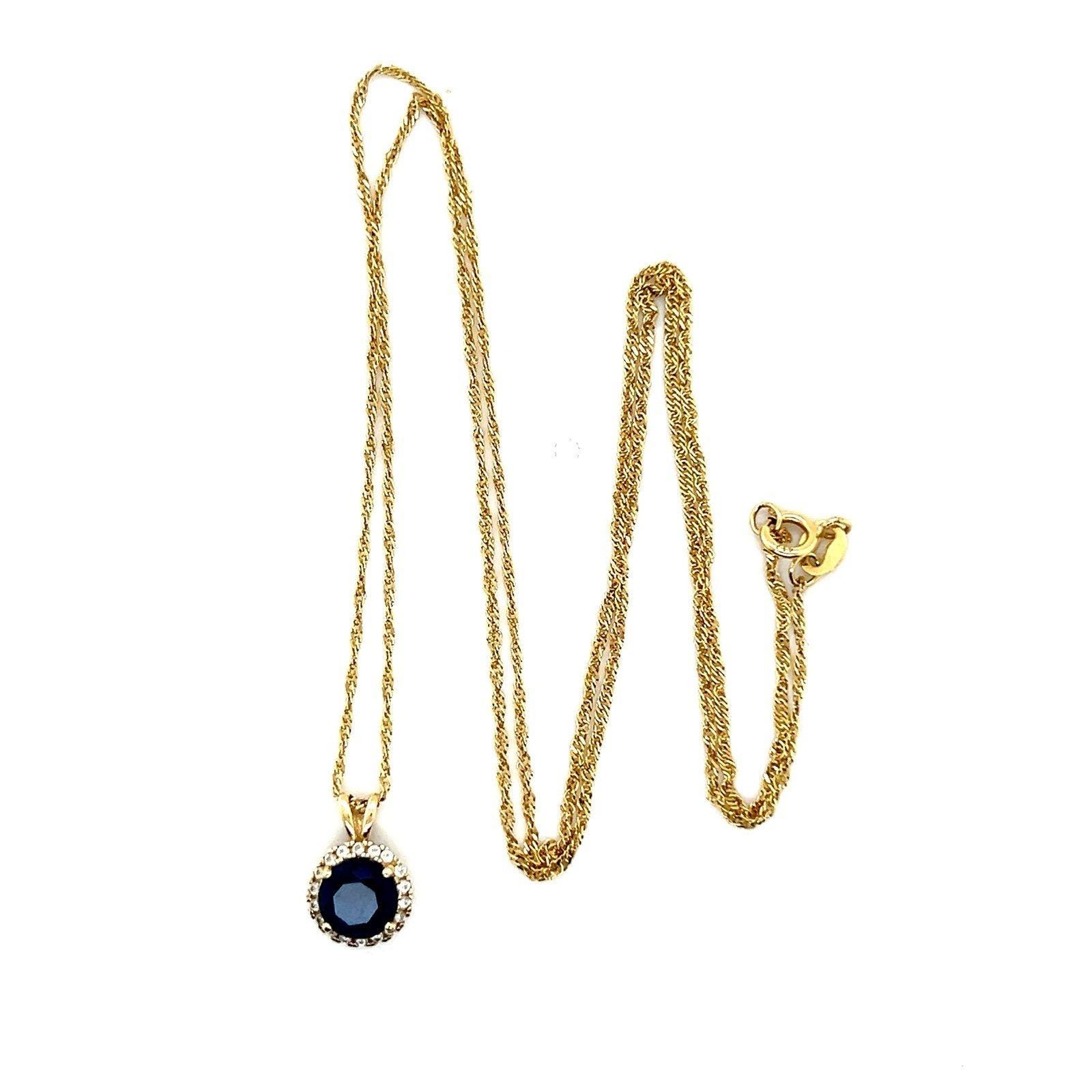 Real 10K Twisted Chain with 14K Yellow Gold Blue Sapphire and Cz Pendant, REAL GOLD, Not gold plated or gold filled.