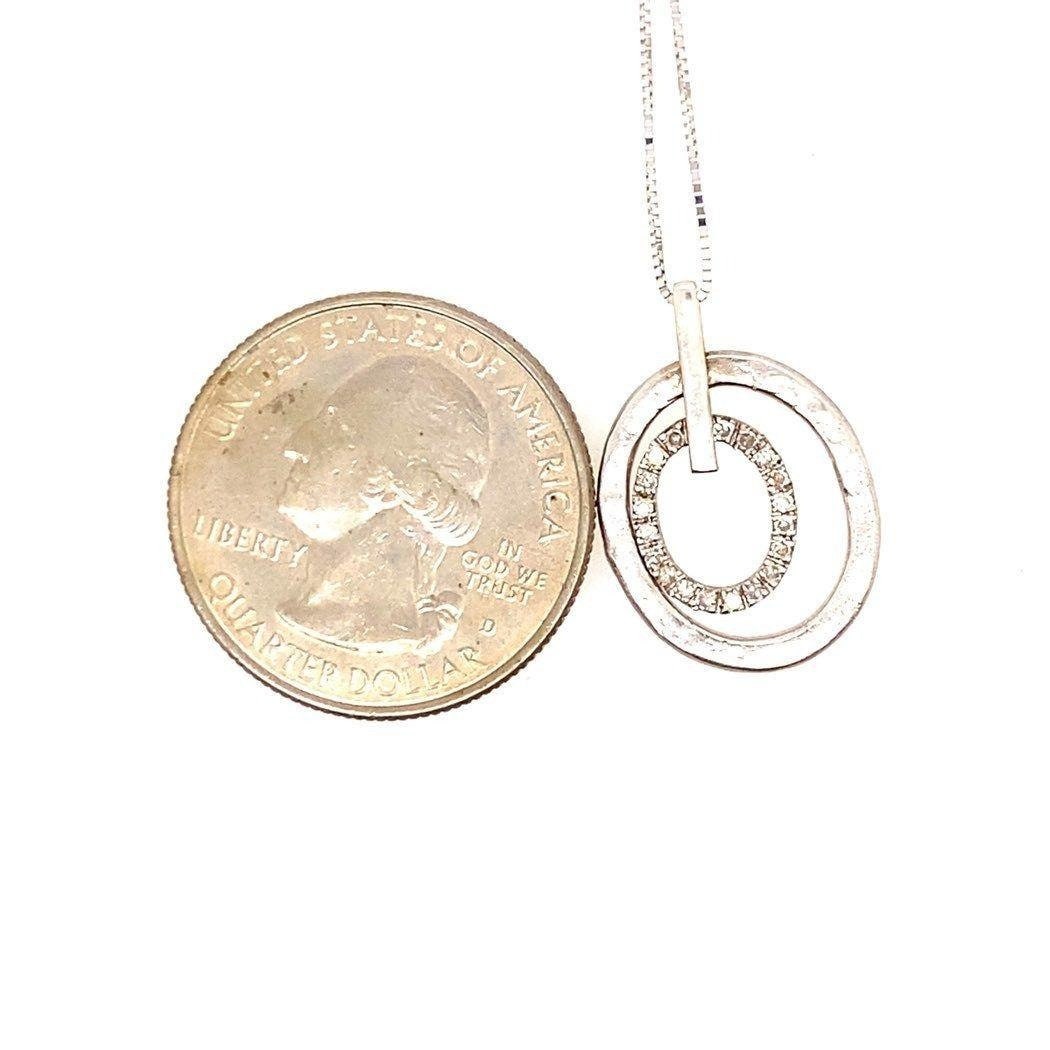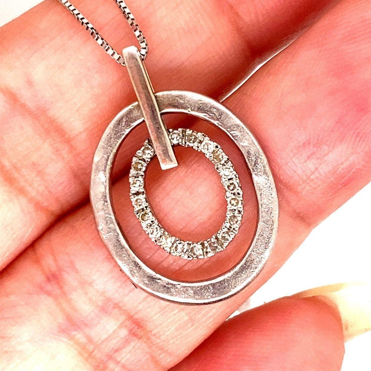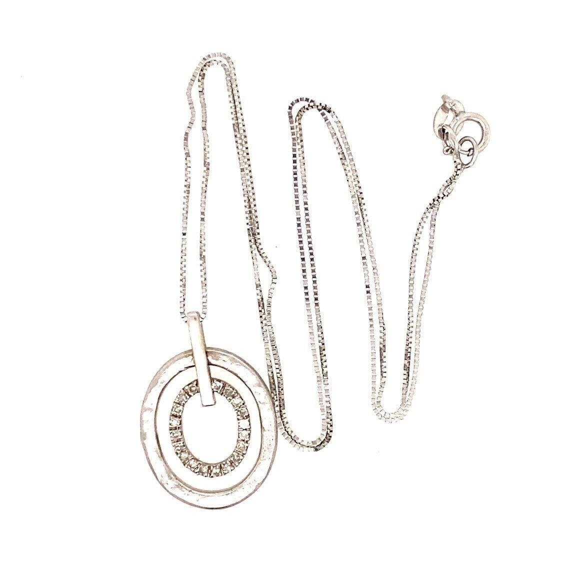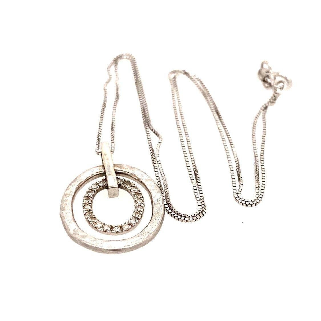 Real 14k White Gold 2-Circles Diamond Pendant Necklace , NOT GOLD PLATED OR GOLD FILLED.