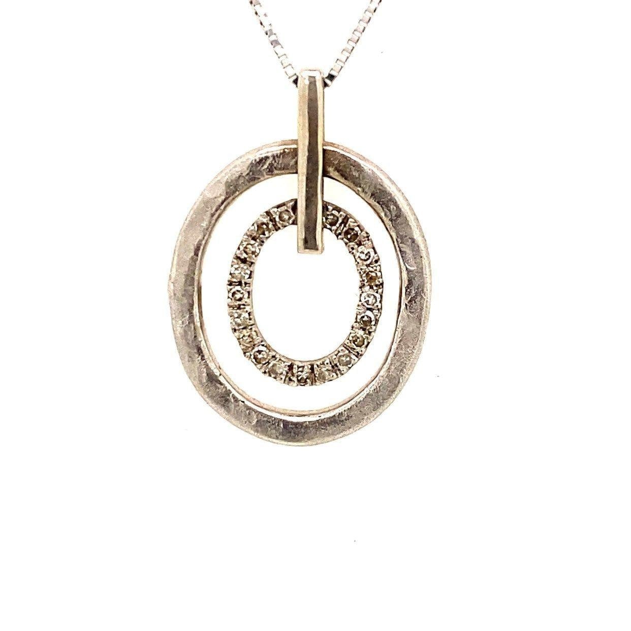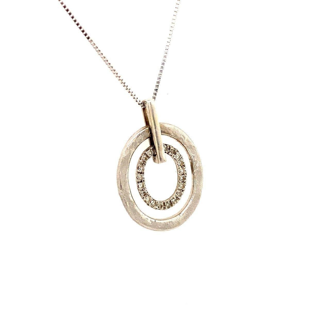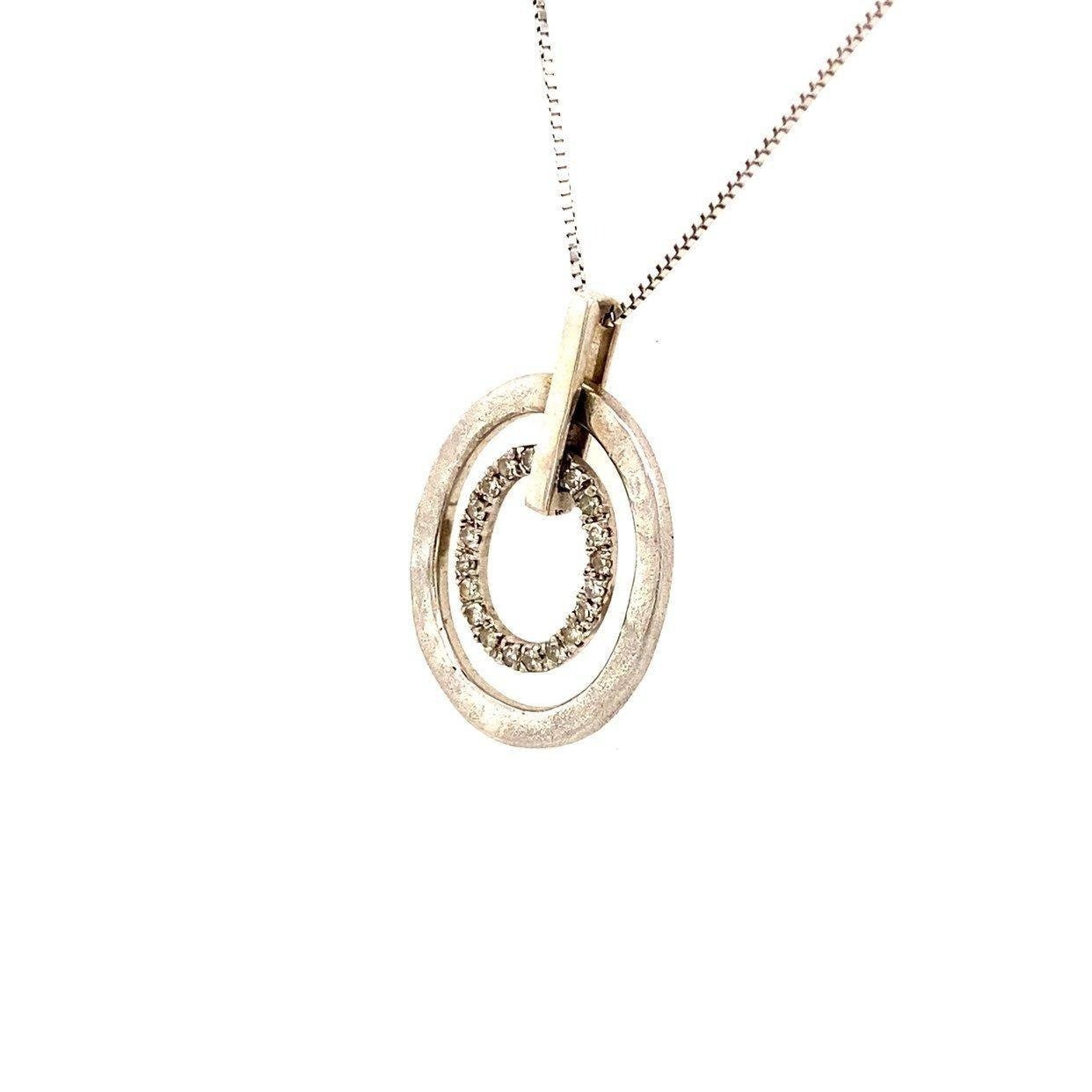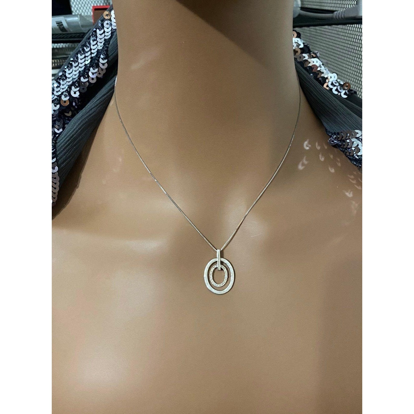 Real 14k White Gold 2-Circles Diamond Pendant Necklace , NOT GOLD PLATED OR GOLD FILLED.