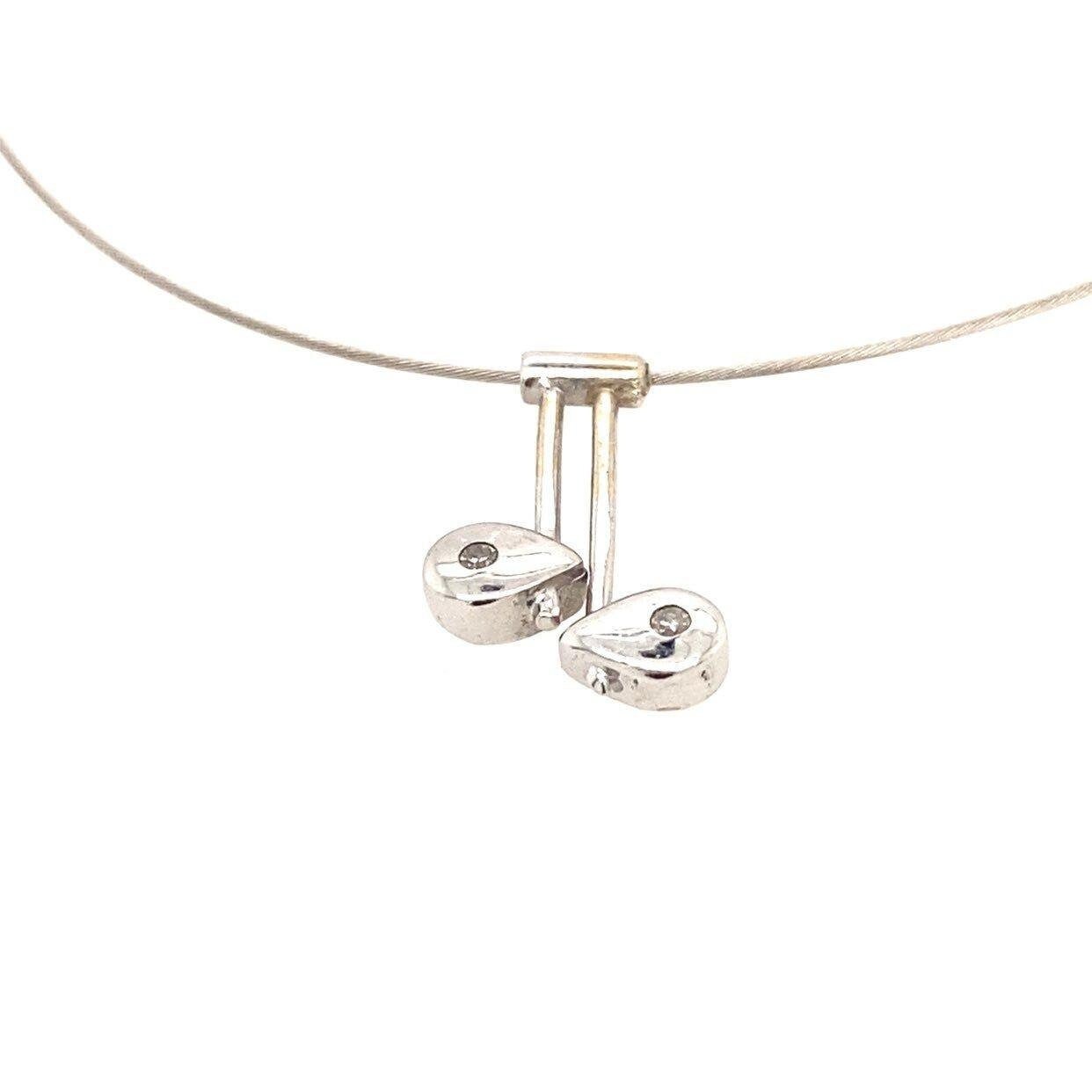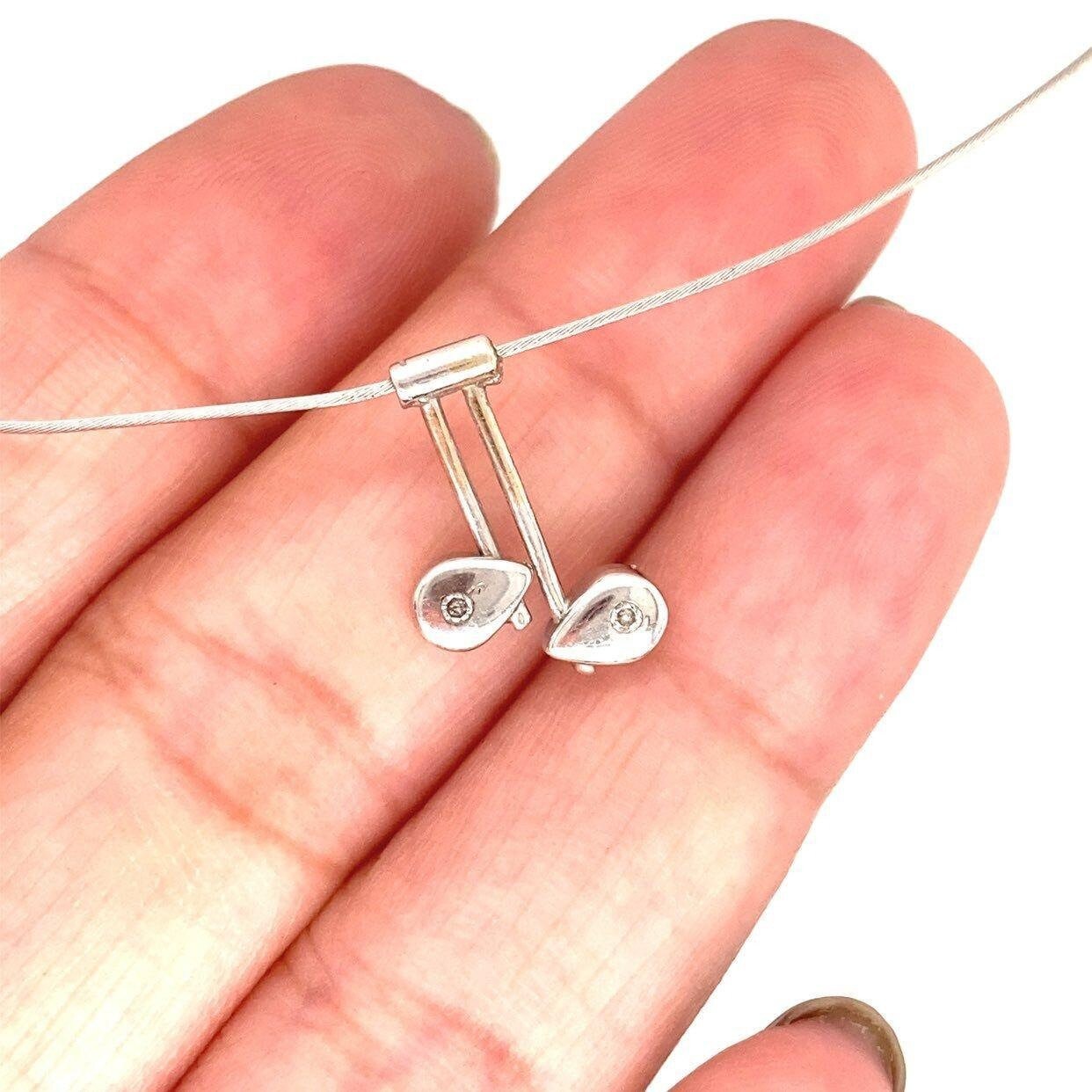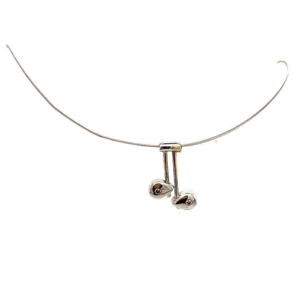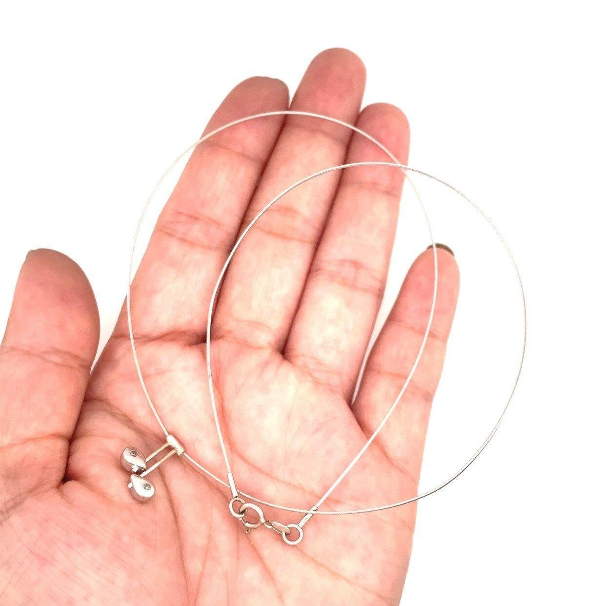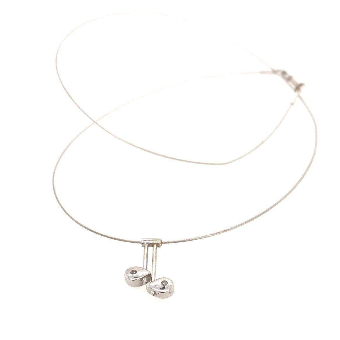 Real 14k White Gold Necklace with 2 Small Natural Diamonds, NOT GOLD PLATED OR GOLD FILLED.