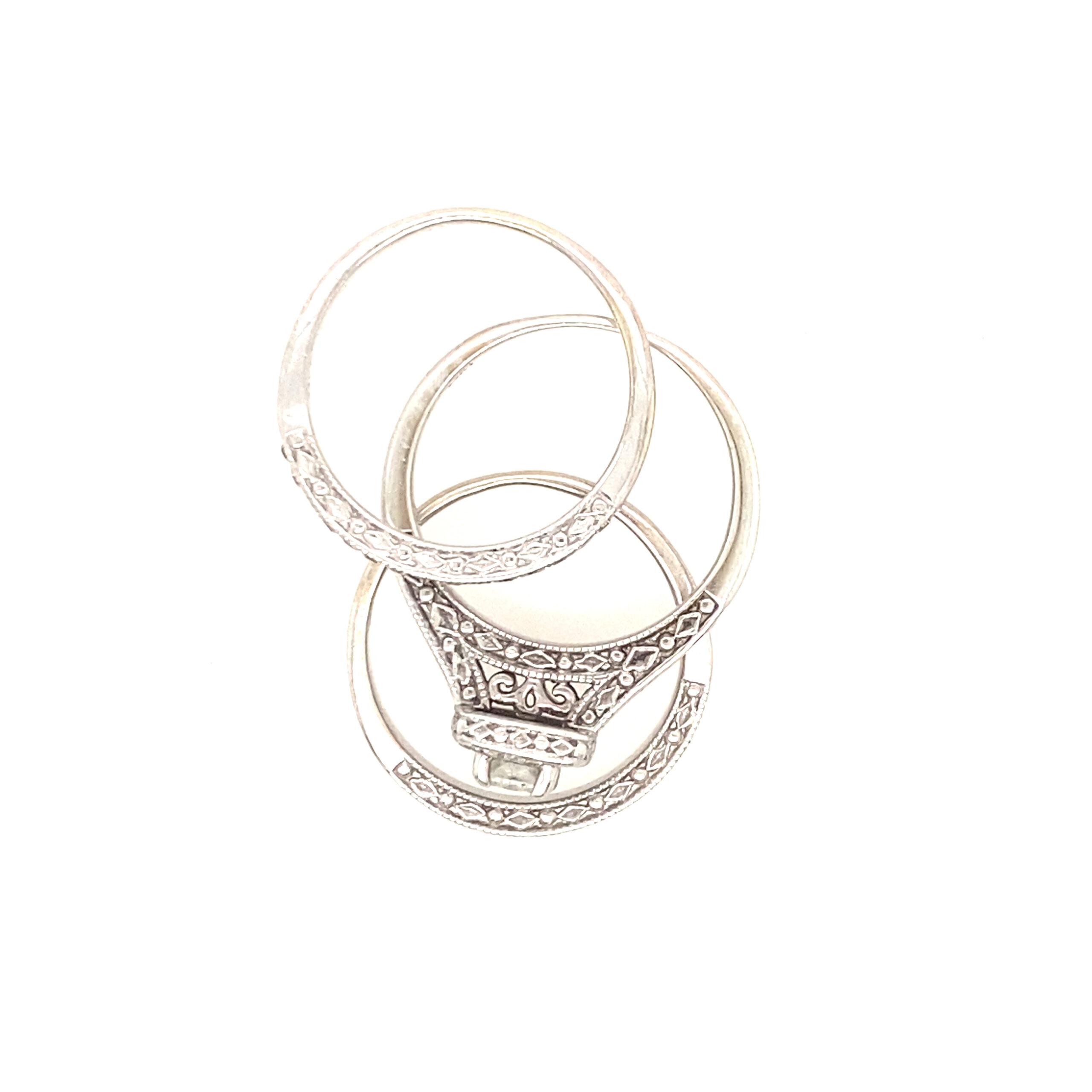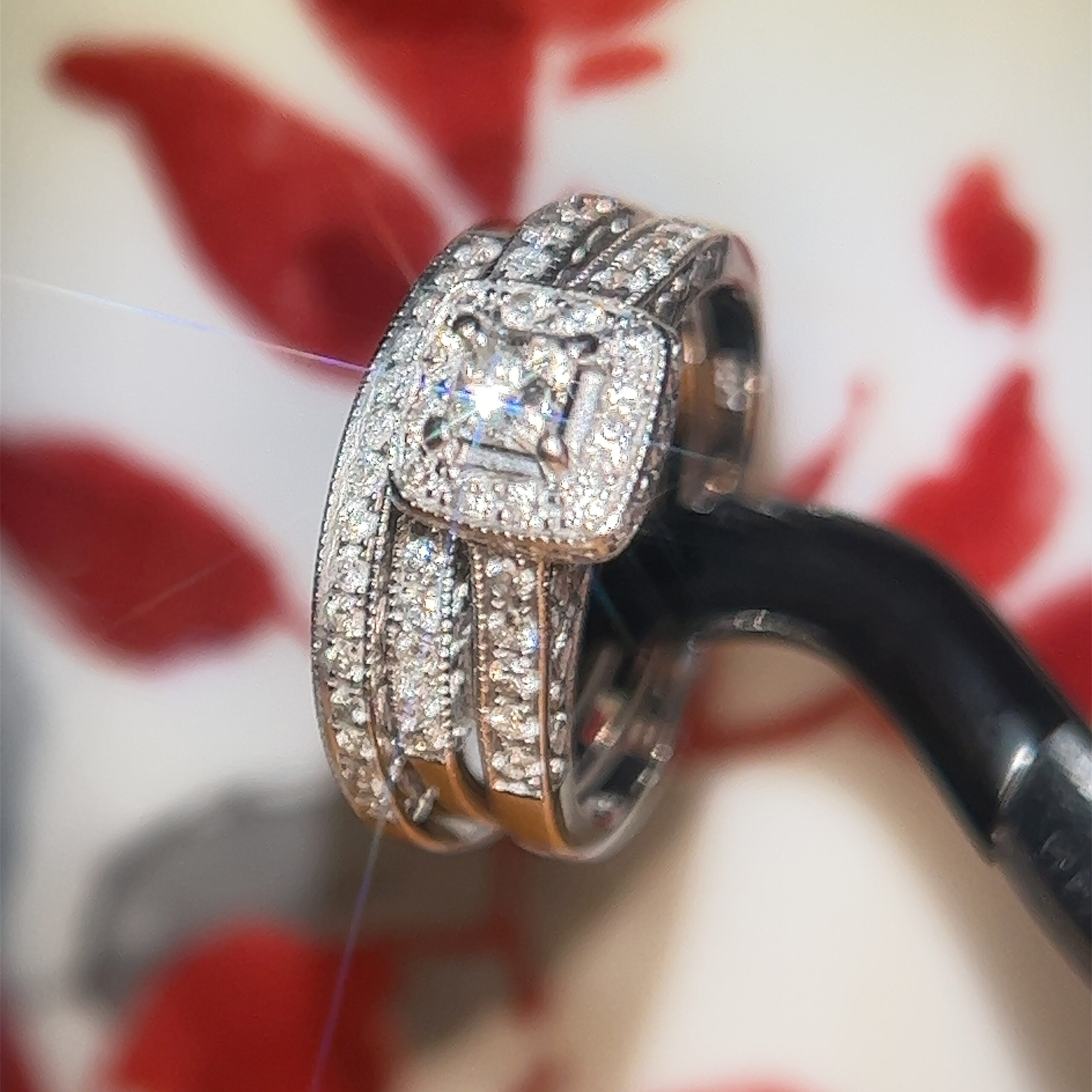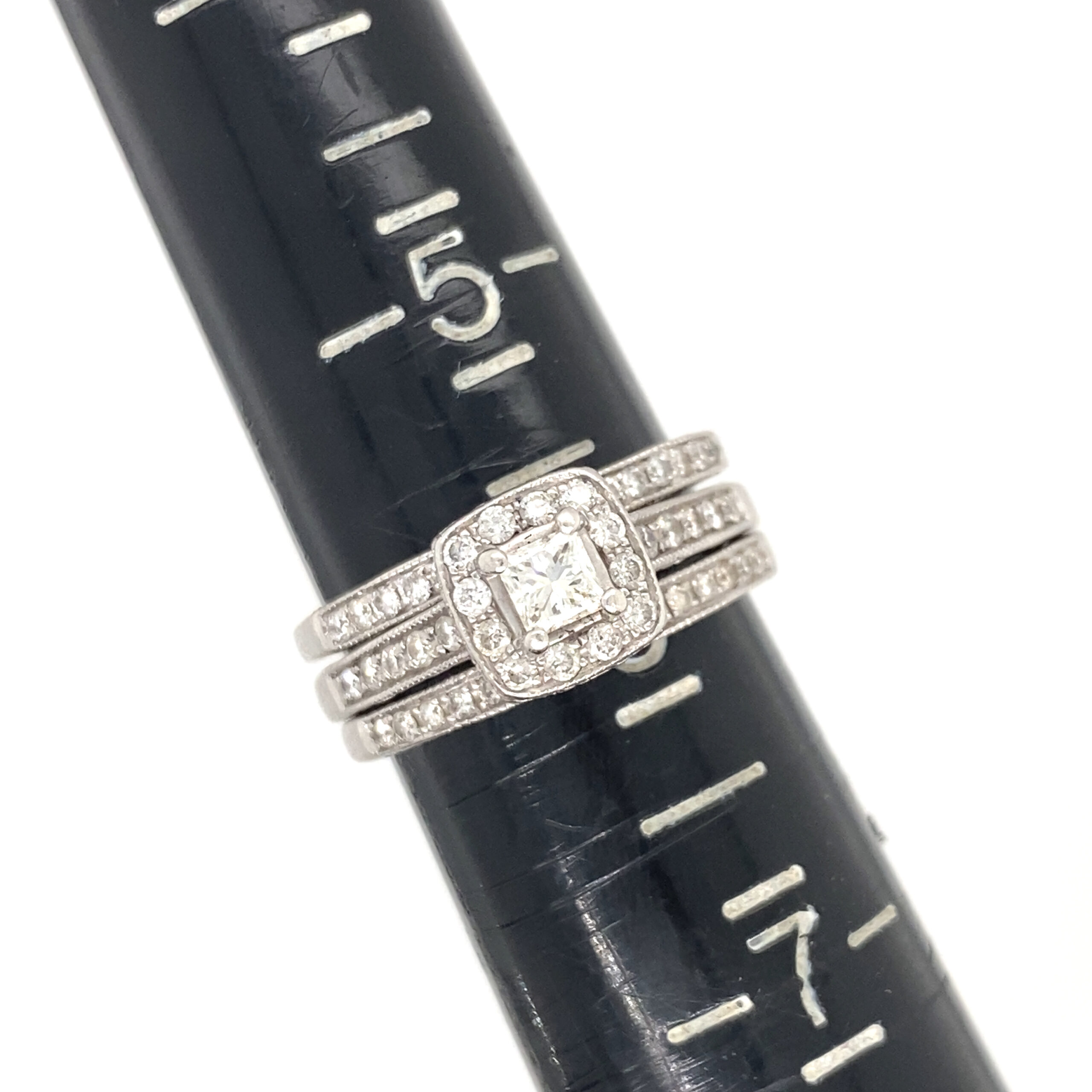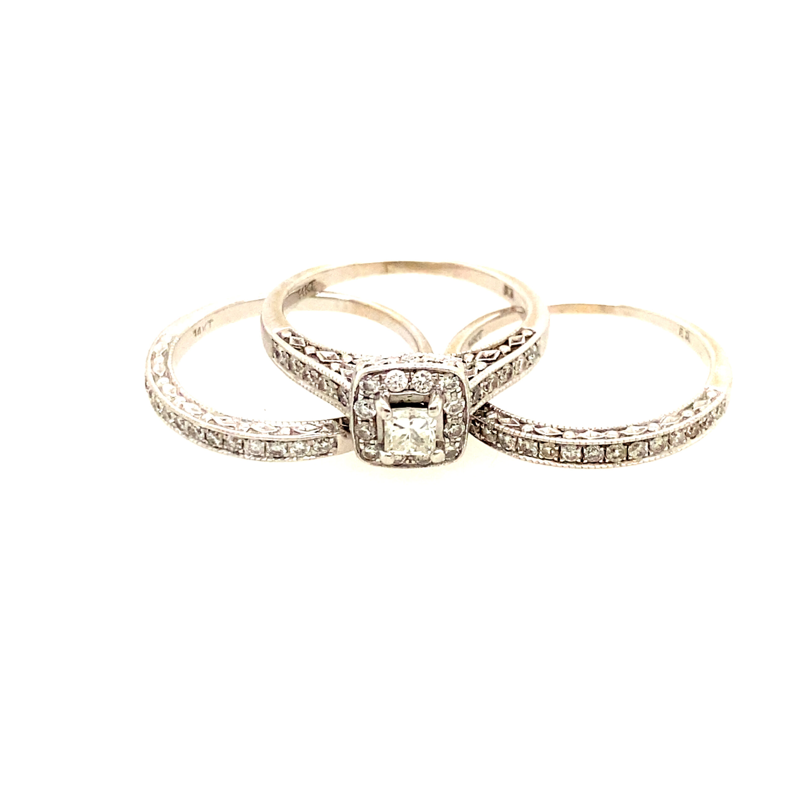 Real 14k White Gold Diamond Engagement Ring with 2 Bands Set, NOT GOLD PLATED OR GOLD FILLED.
