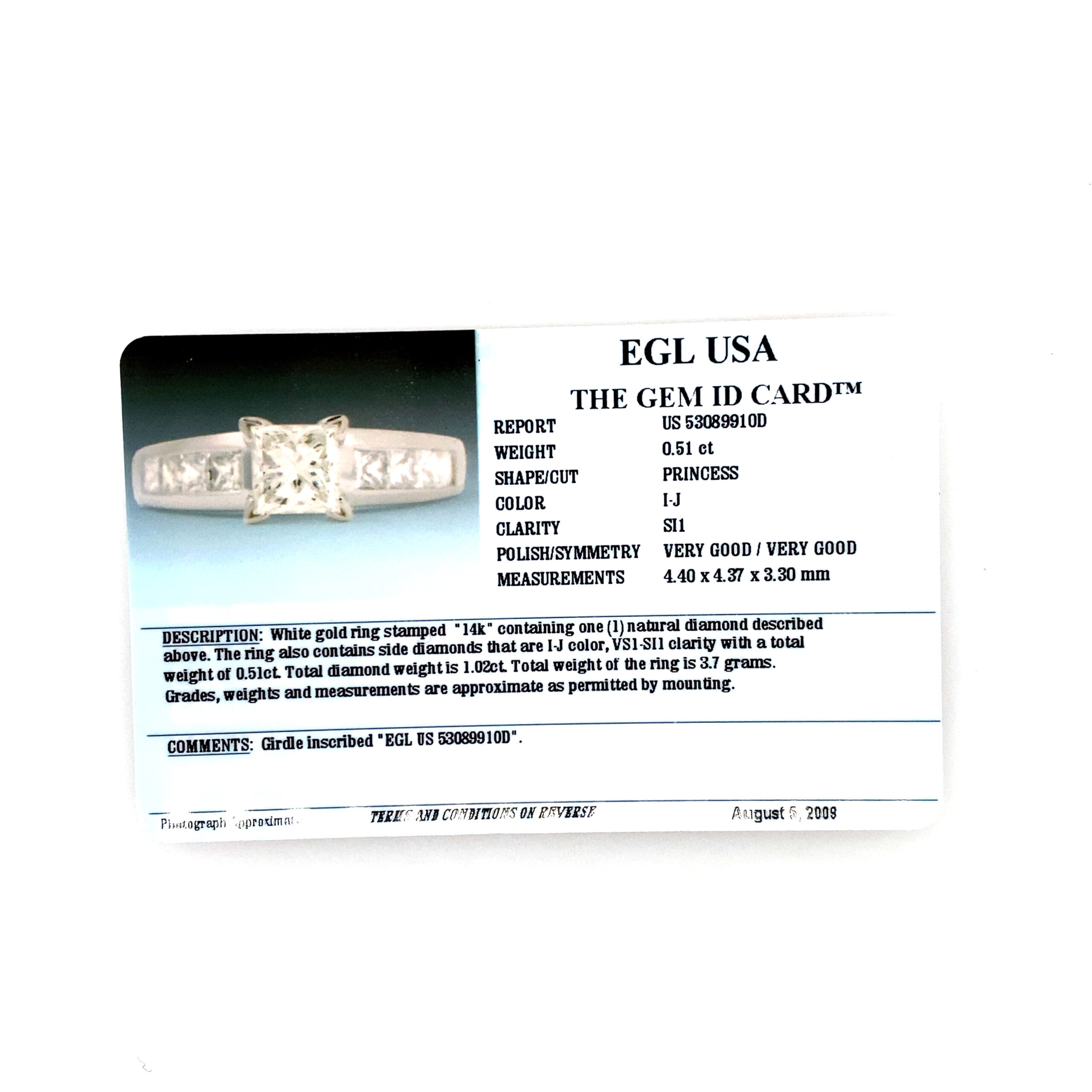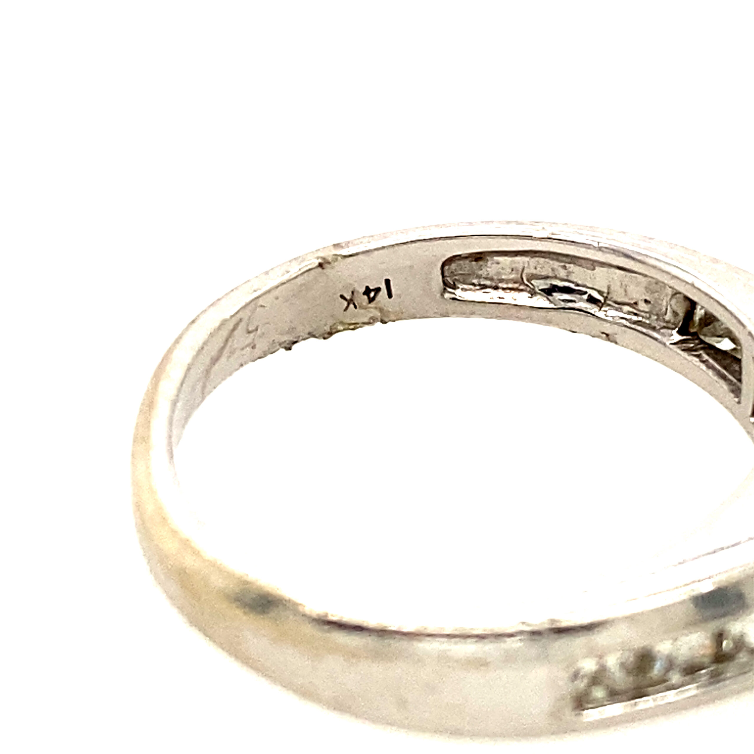 The band is off shaped and shows scratches due to wear. Diamonds are clear. See last pic for the specs.