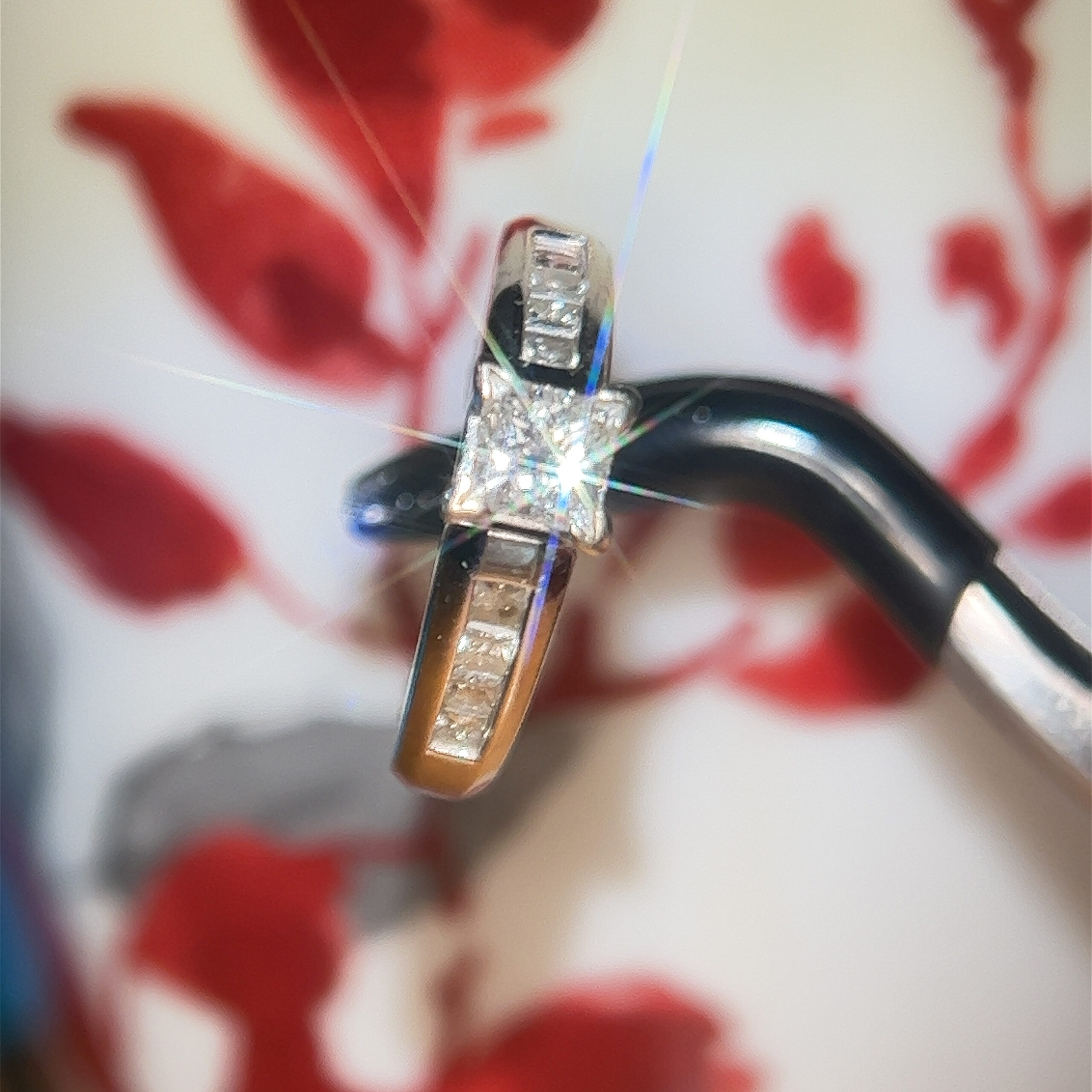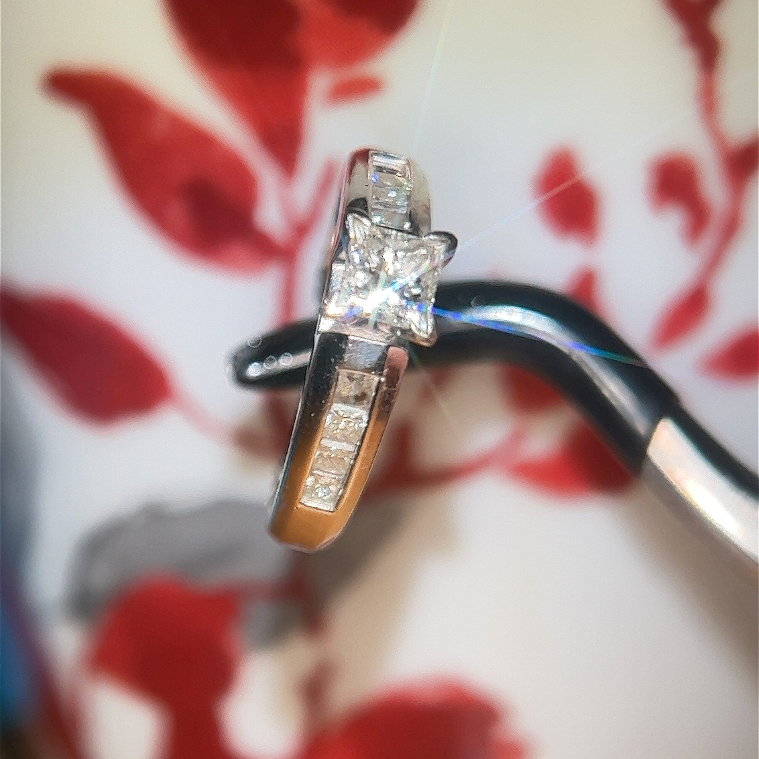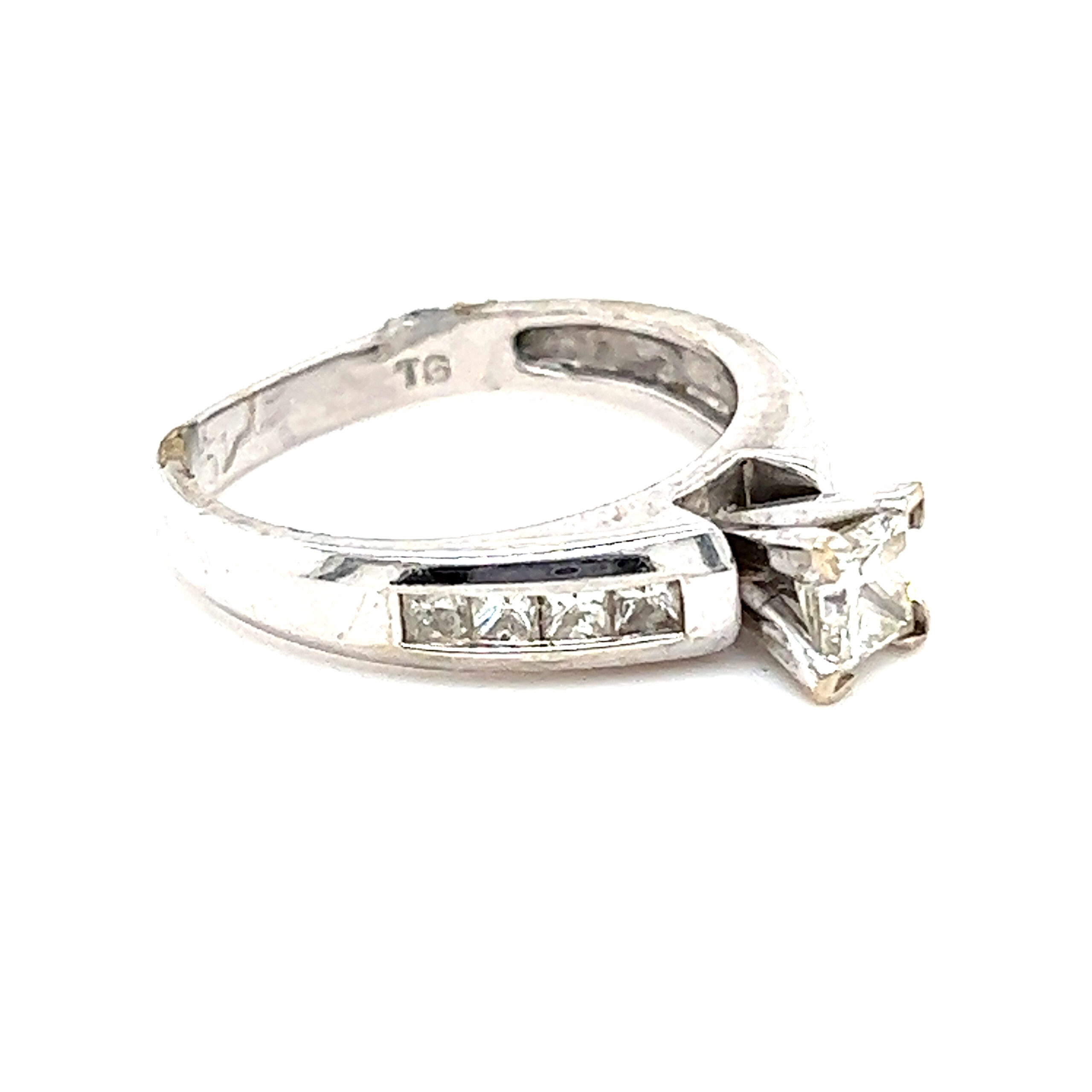 Real 14k White Gold Engagement Ring with Natural Princess Cut Diamonds, NOT GOLD PLATED OR GOLD FILLED.