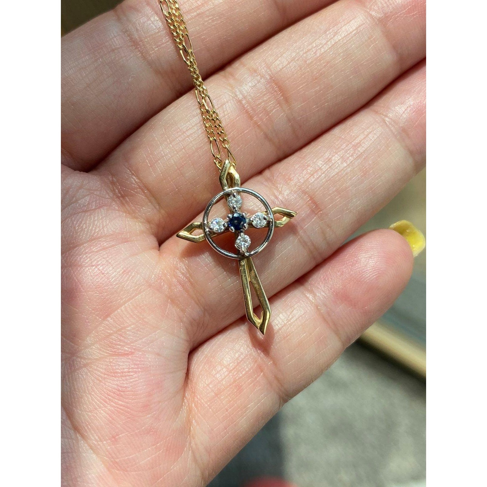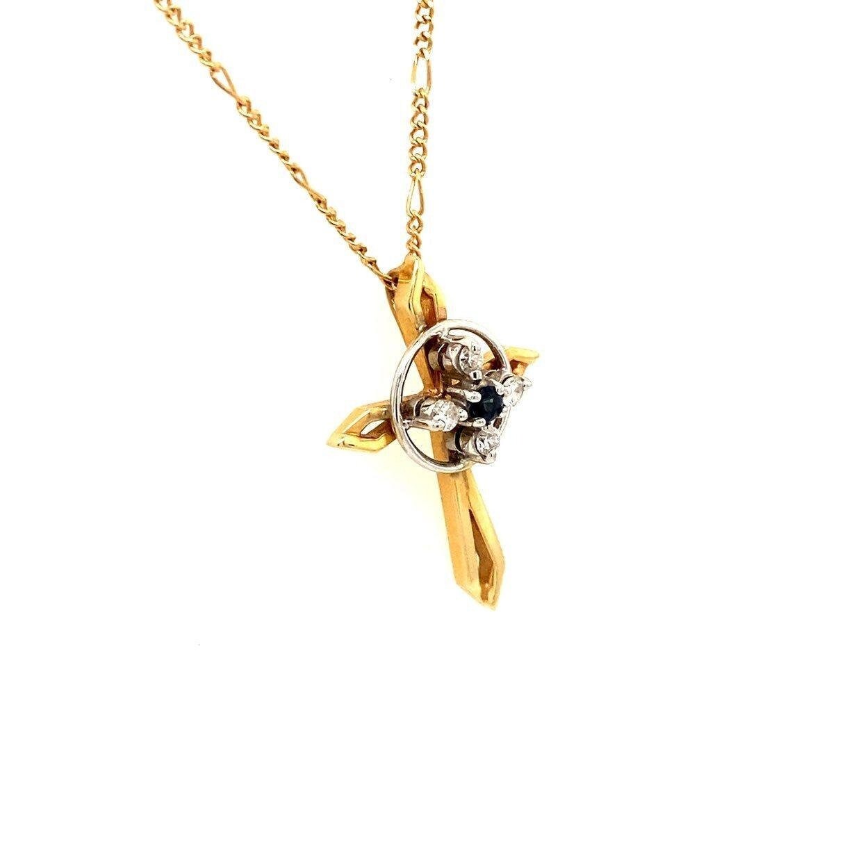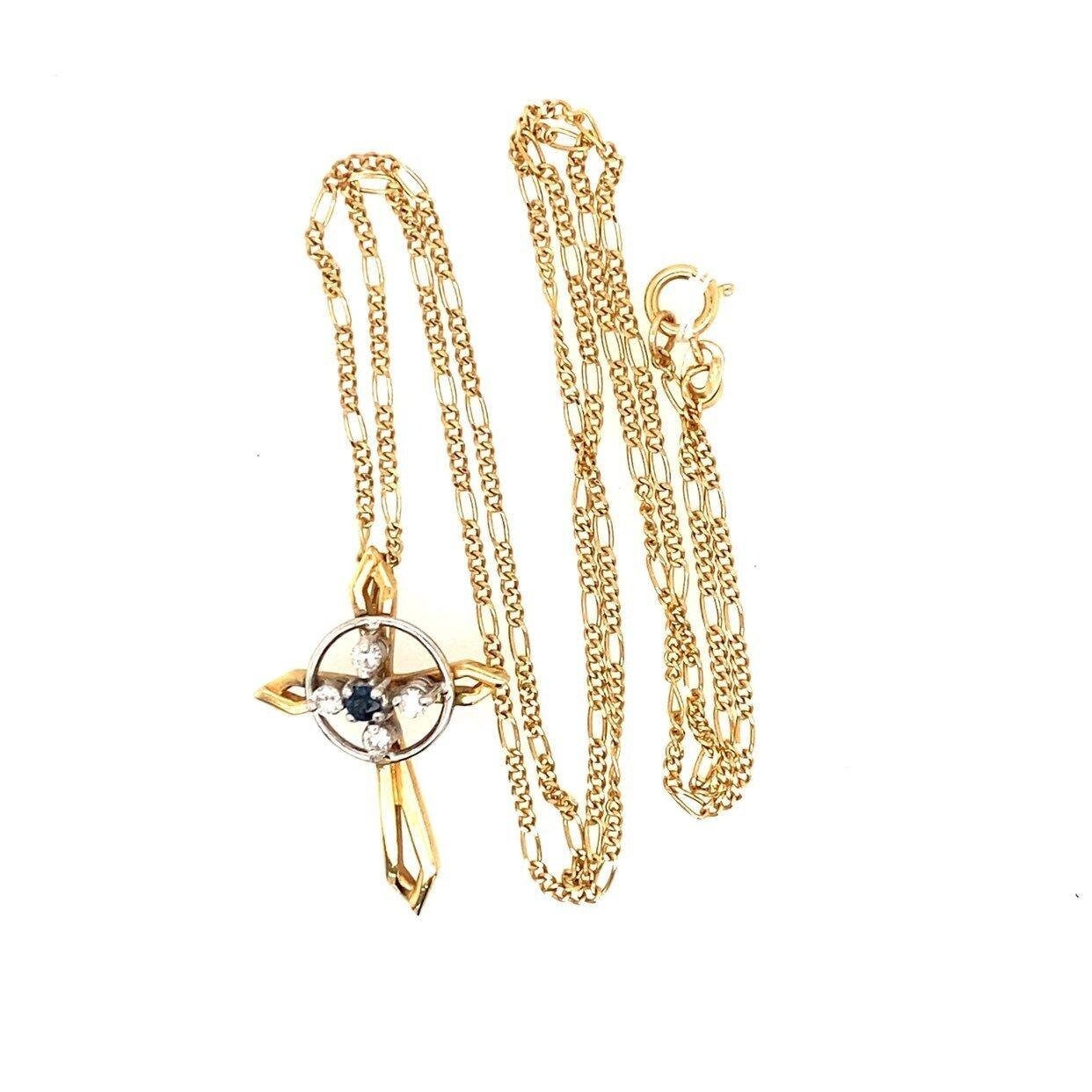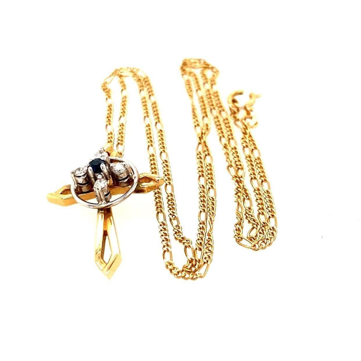 Real 14k Yellow Gold Necklace with Natural Blue Sapphire Encircling with 4 Small Natural Diamonds, NOT GOLD PLATED OR GOLD FILLED.