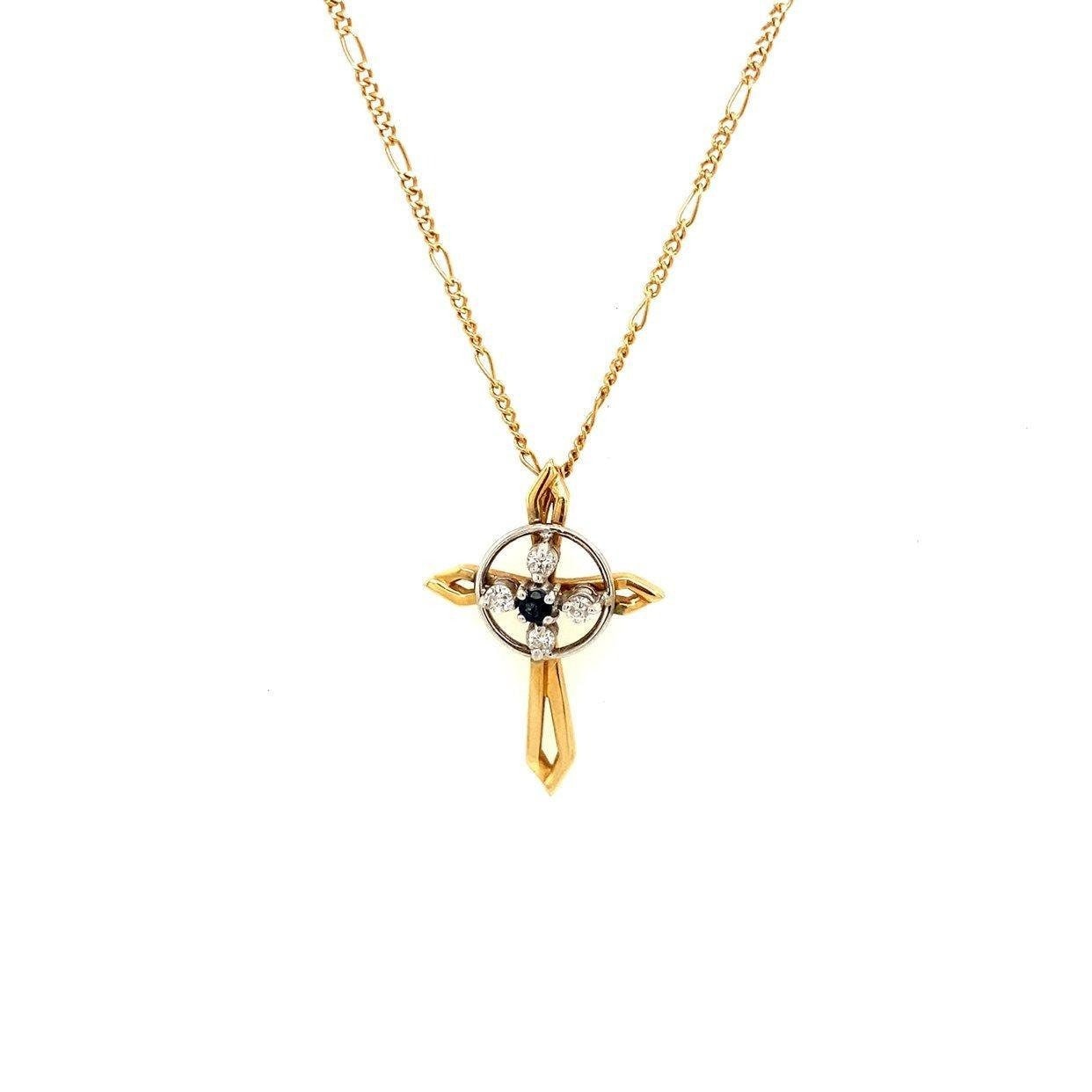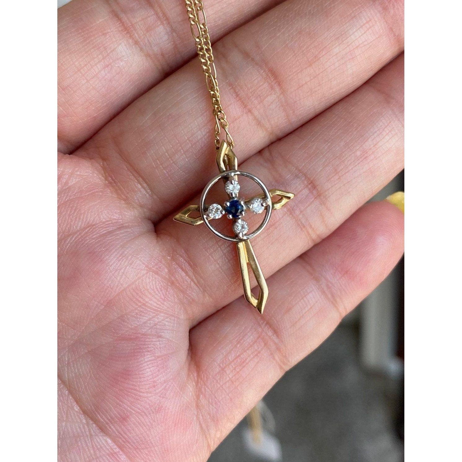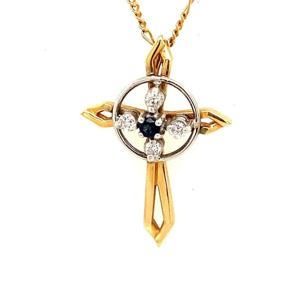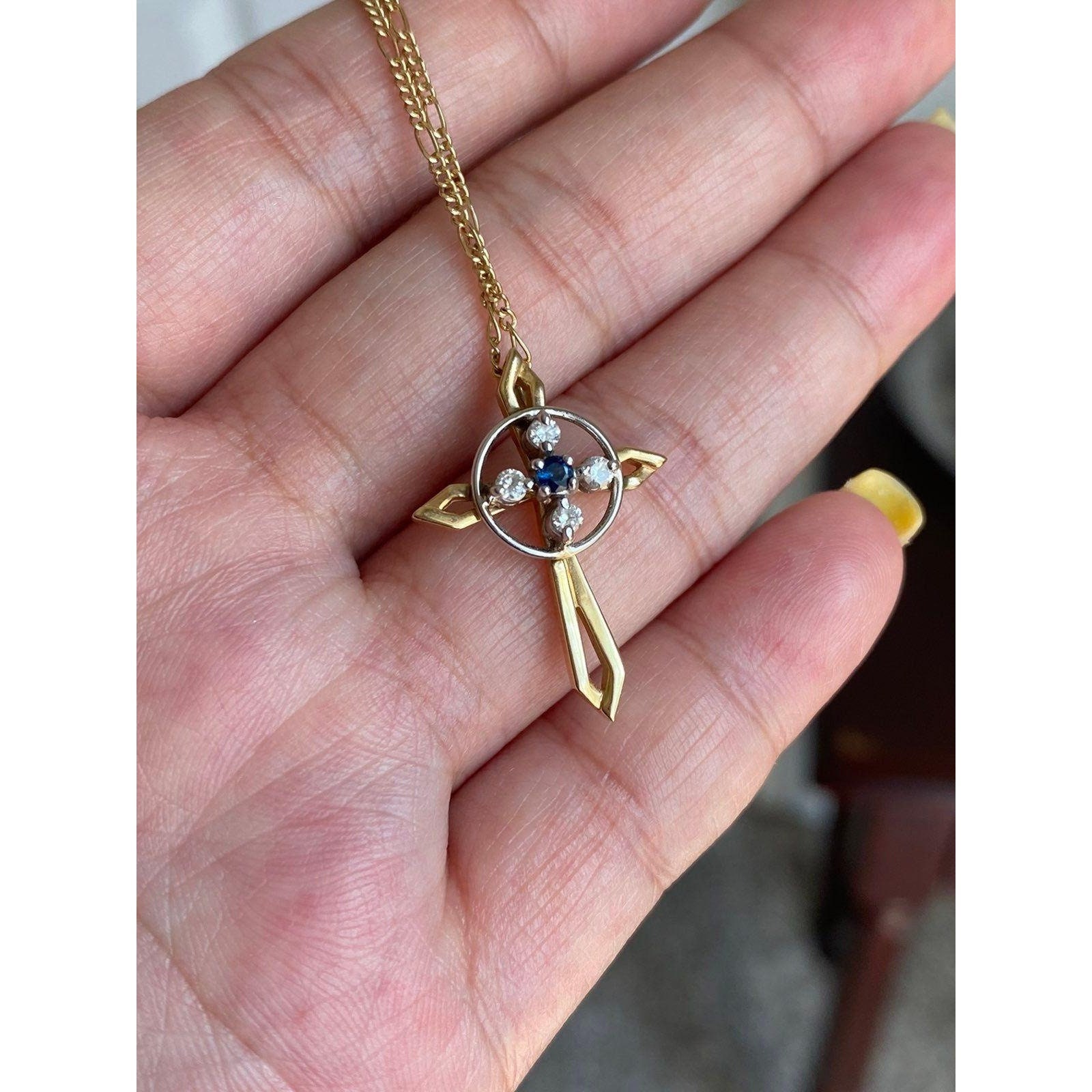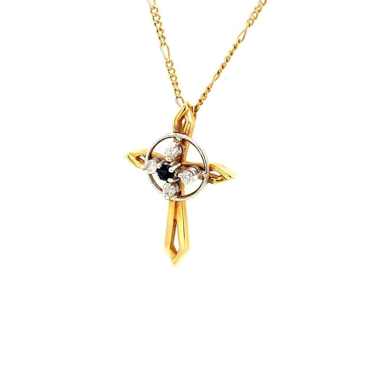 Real 14k Yellow Gold Necklace with Natural Blue Sapphire Encircling with 4 Small Natural Diamonds, NOT GOLD PLATED OR GOLD FILLED.