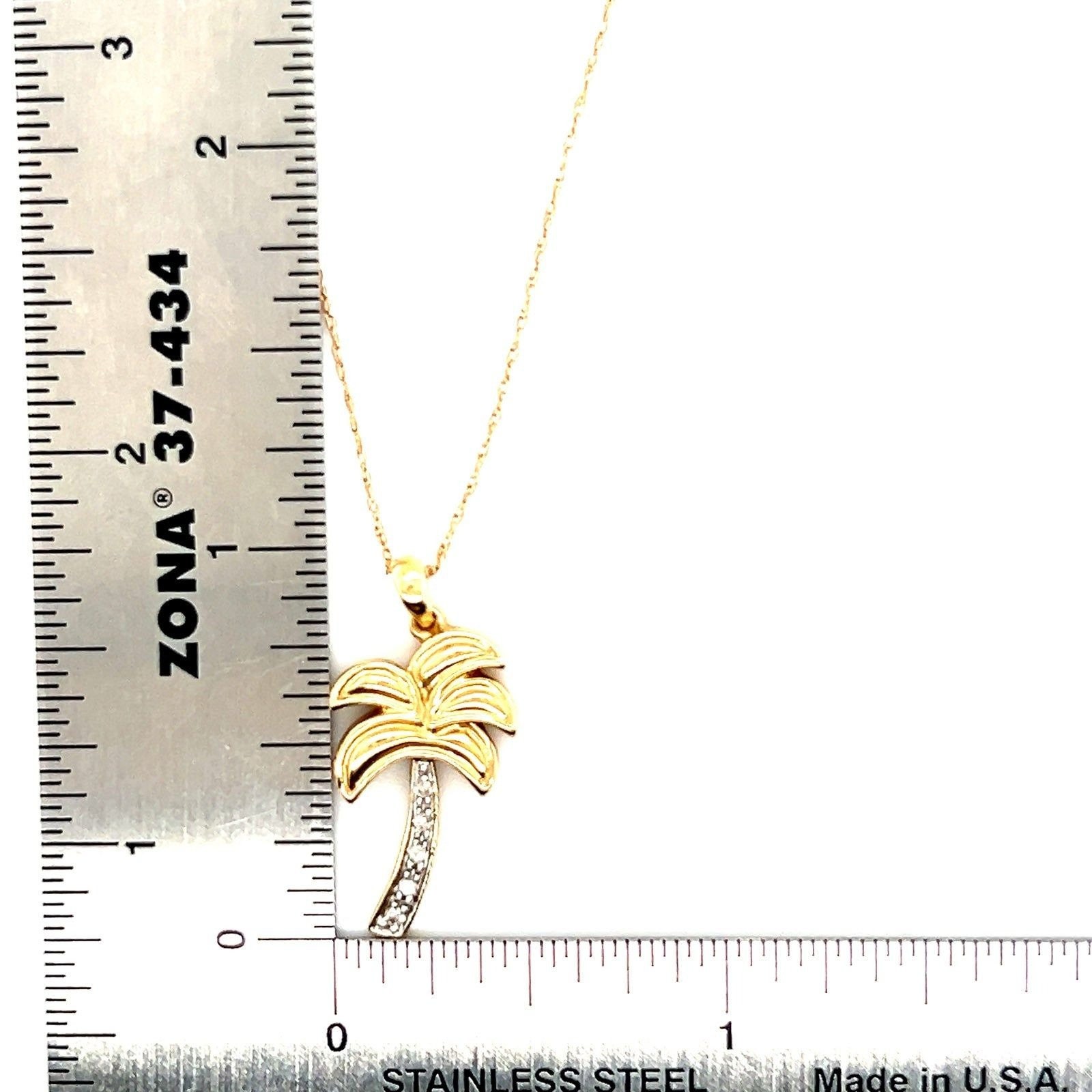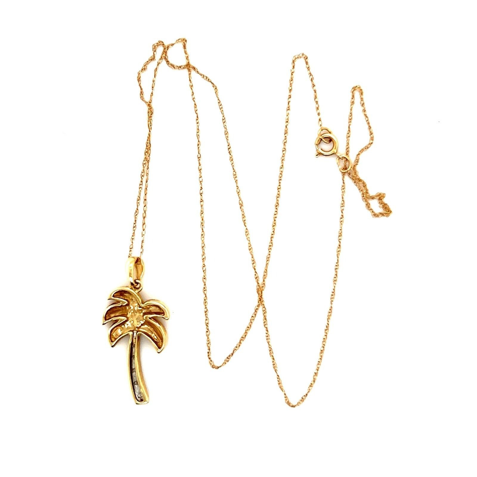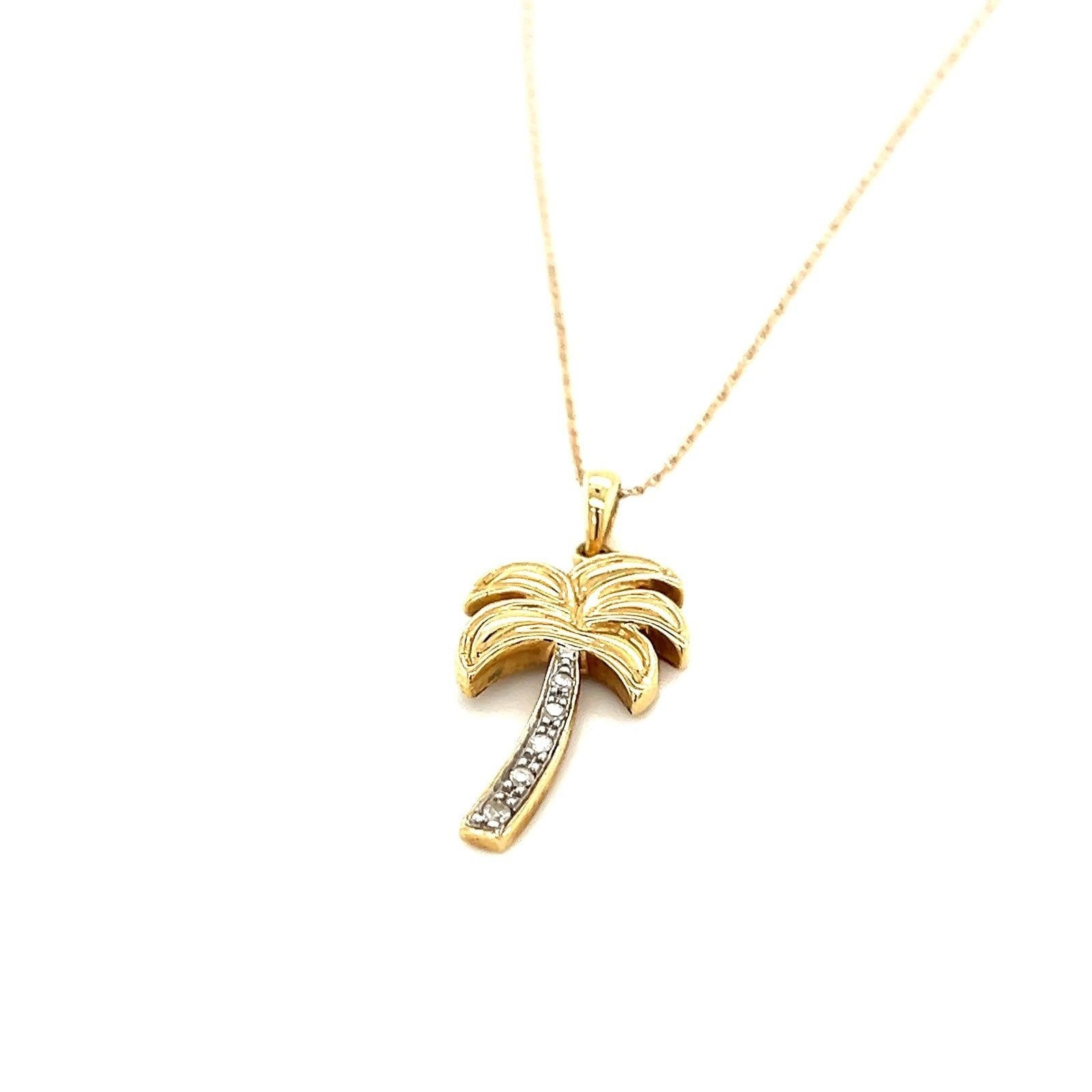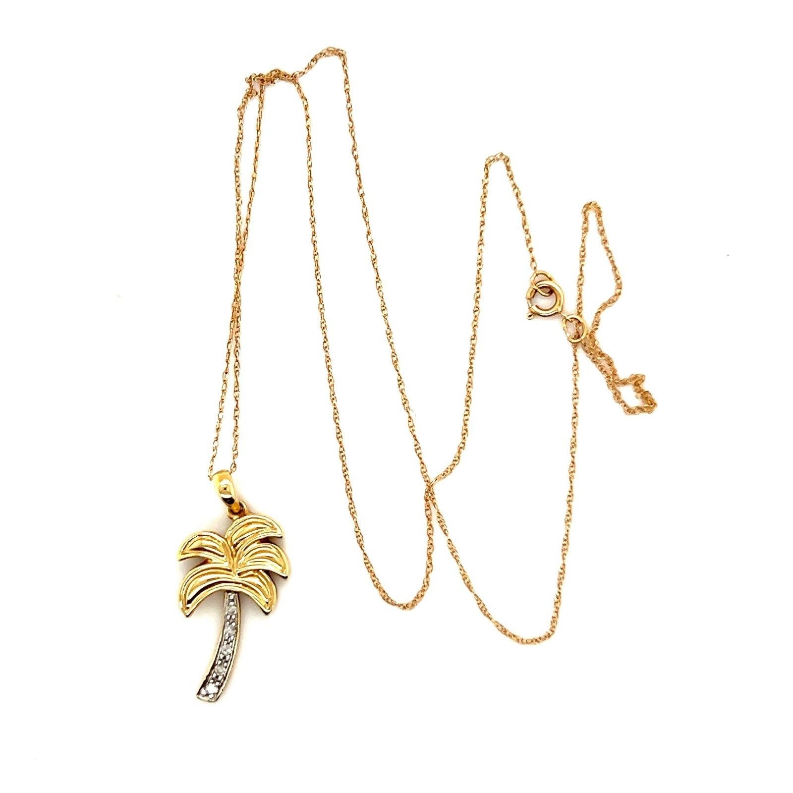 Real 14k Yellow Gold Diamond Palm Pendant Necklace , NOT GOLD PLATED OR GOLD FILLED.