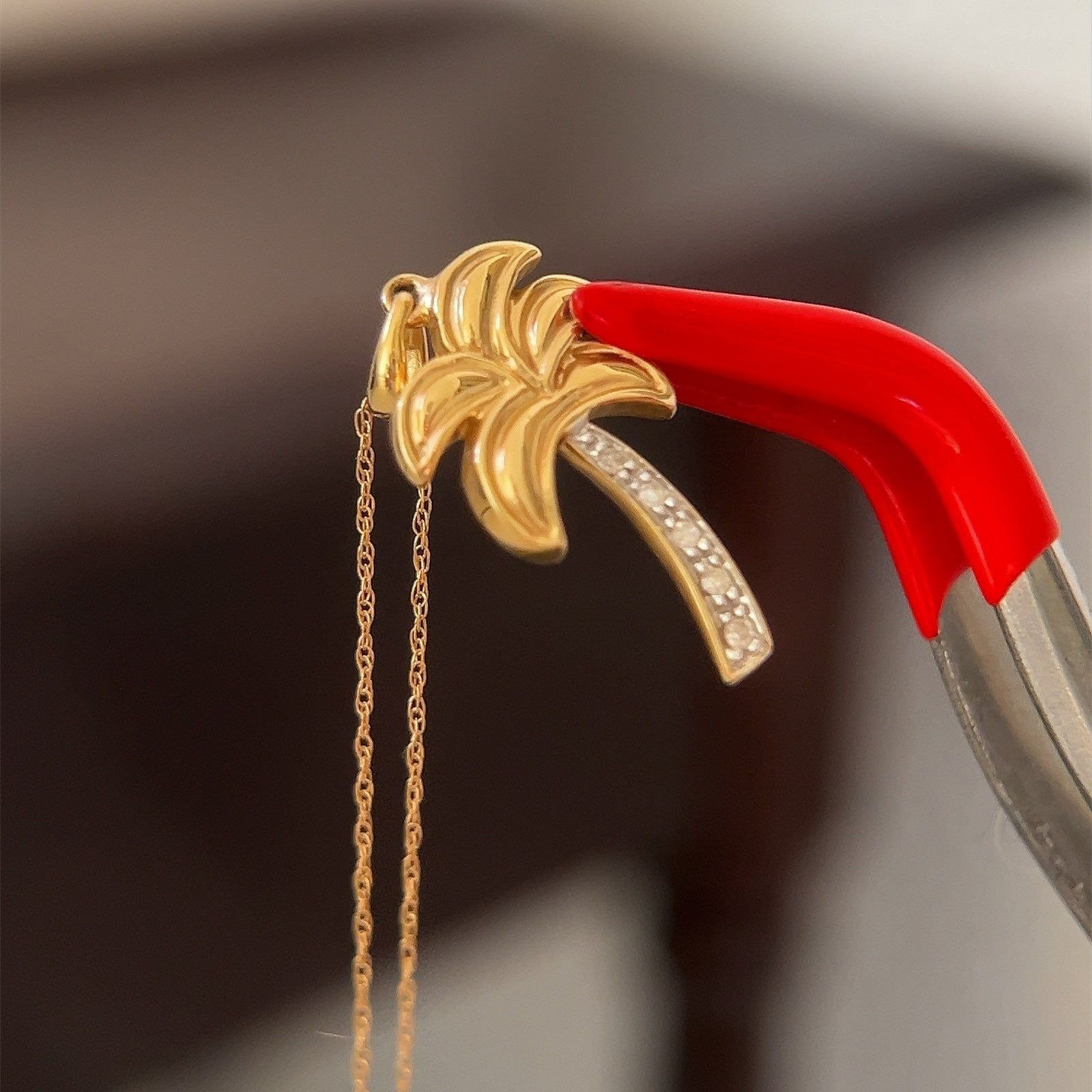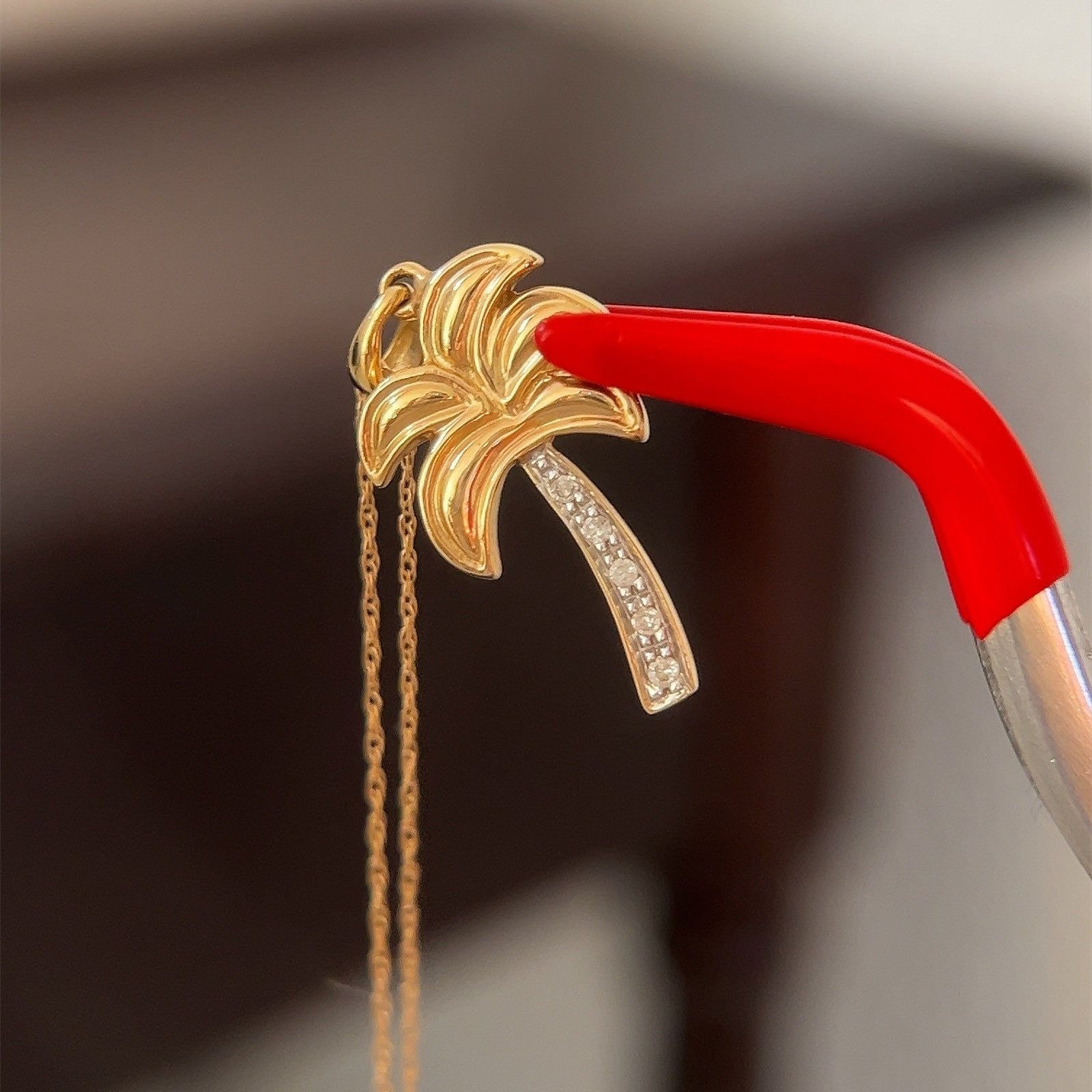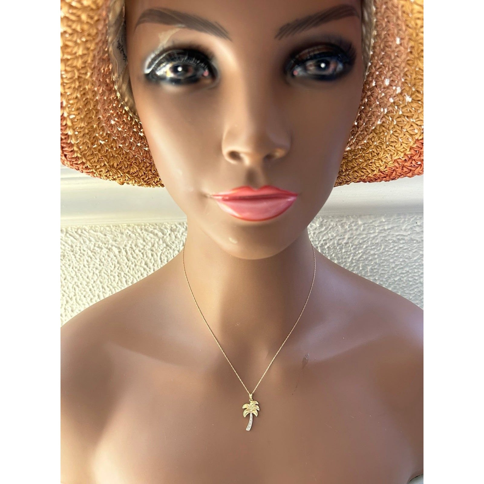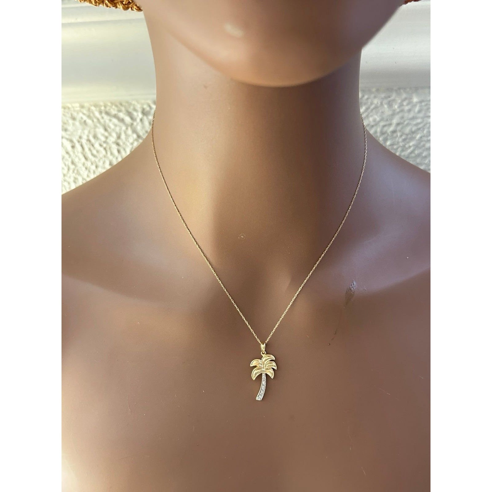 Real 14k Yellow Gold Diamond Palm Pendant Necklace , NOT GOLD PLATED OR GOLD FILLED.