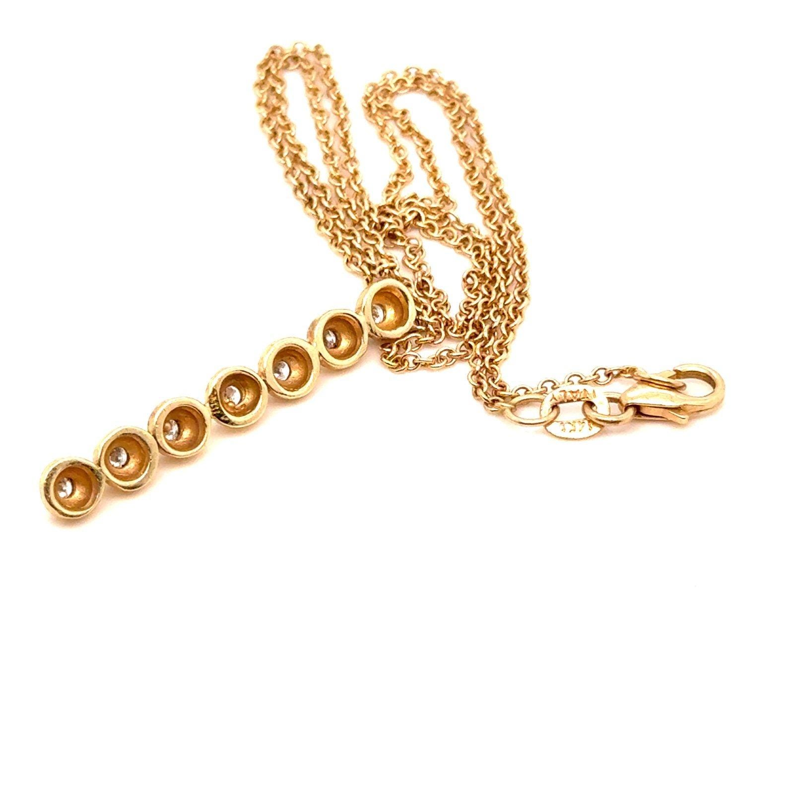 Real 14k Rose Gold 7-Diamonds Drop Pendant Necklace , NOT GOLD PLATED OR GOLD FILLED.