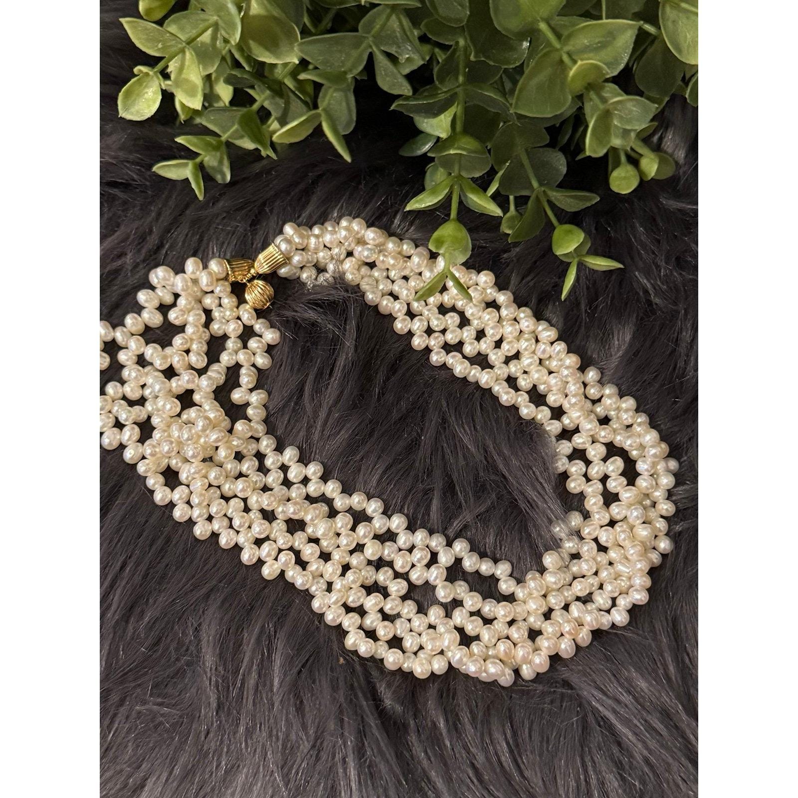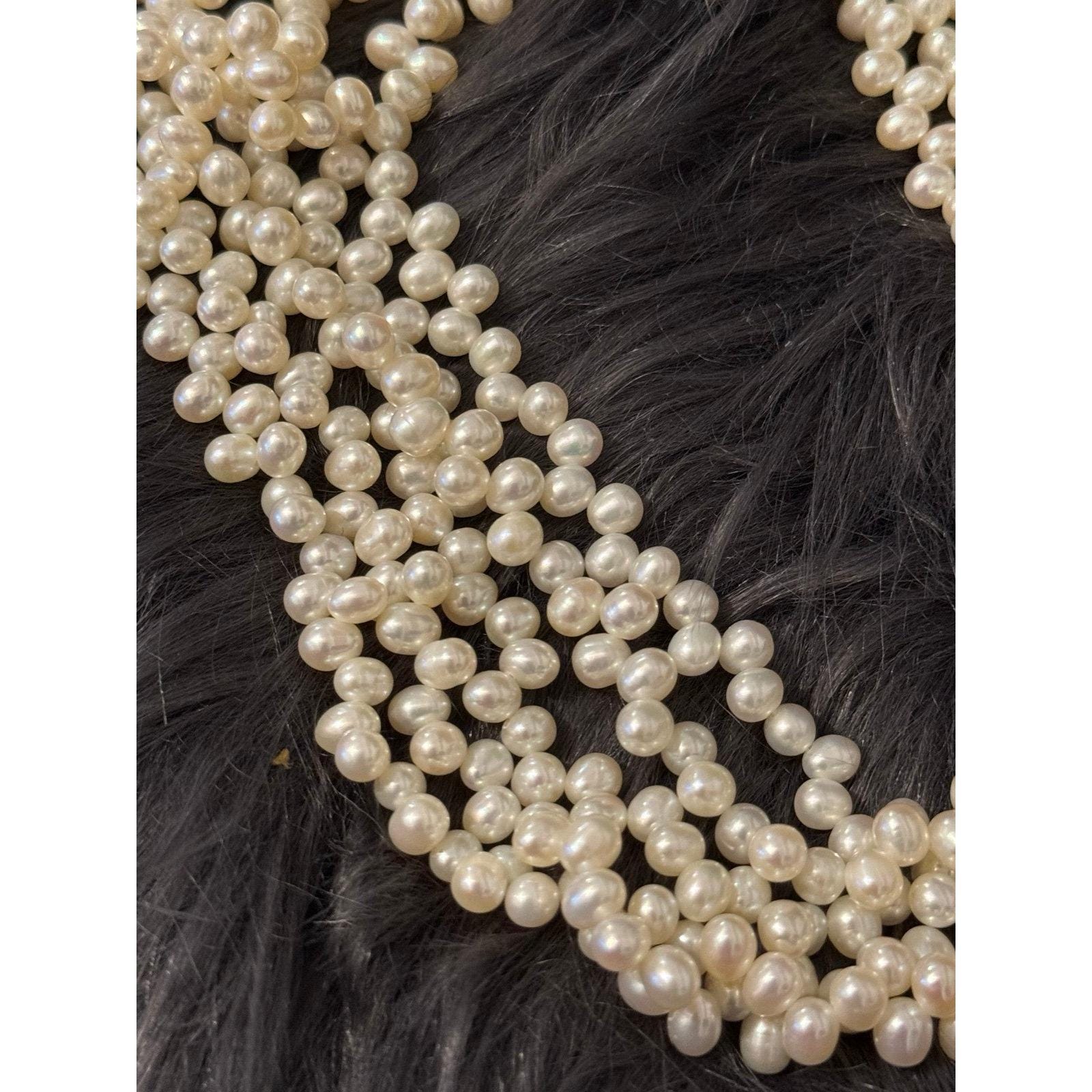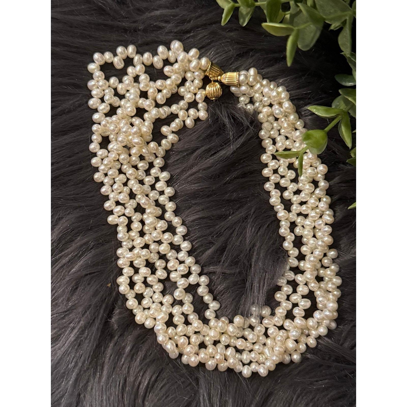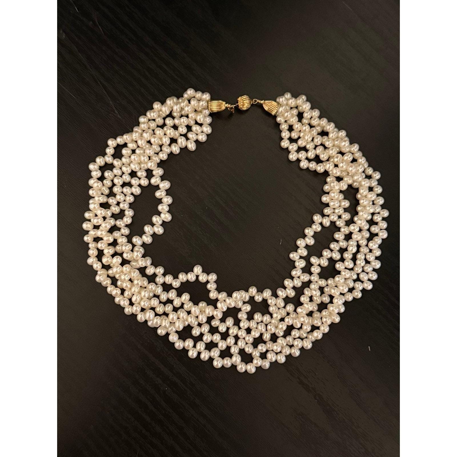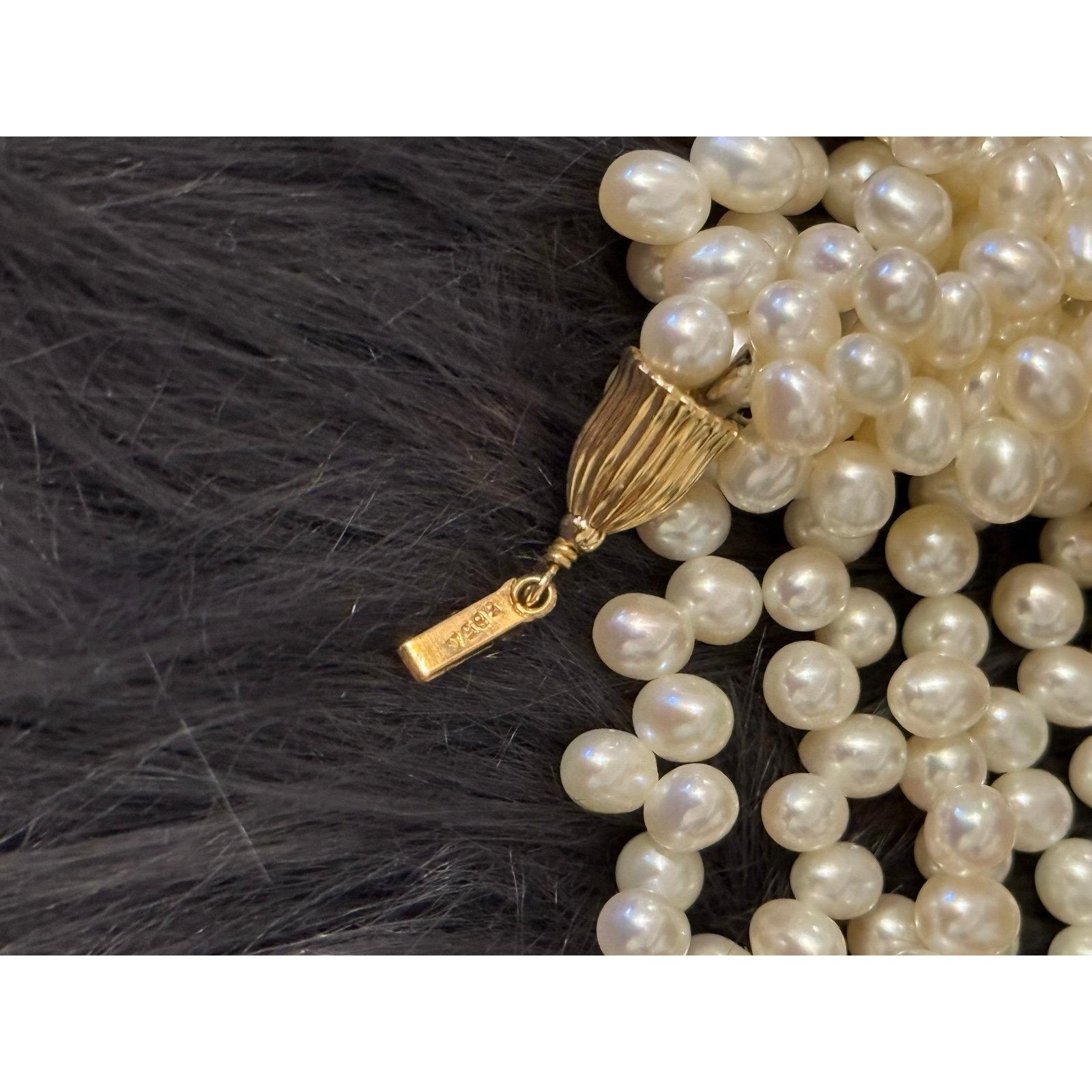 14K Gold Clasp Multi Strand Pearls Necklace