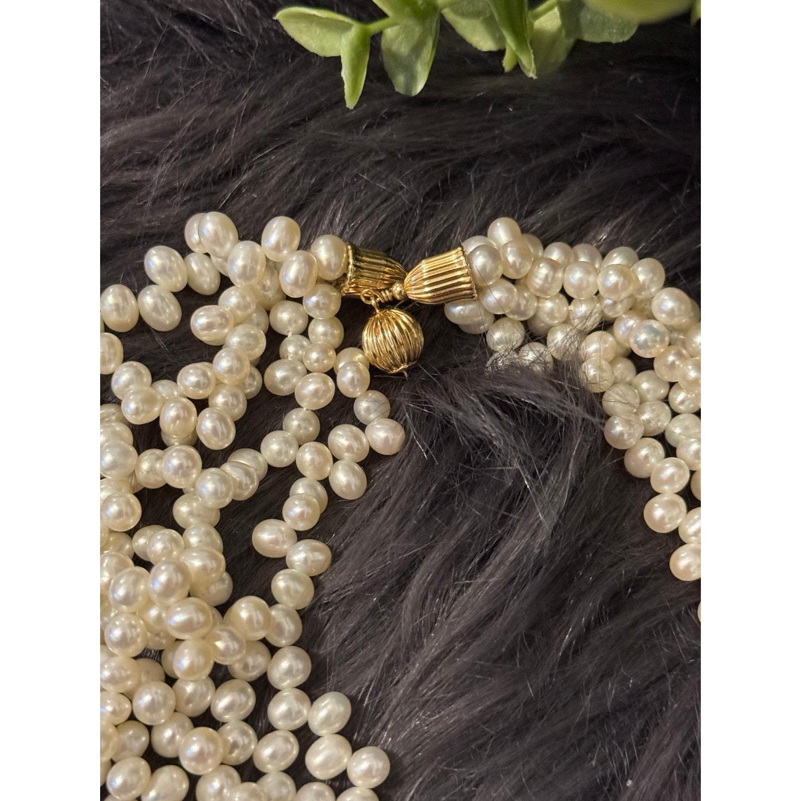 Real 14k Yellow Gold Clasp Multi Strand Pearls Necklace , REAL