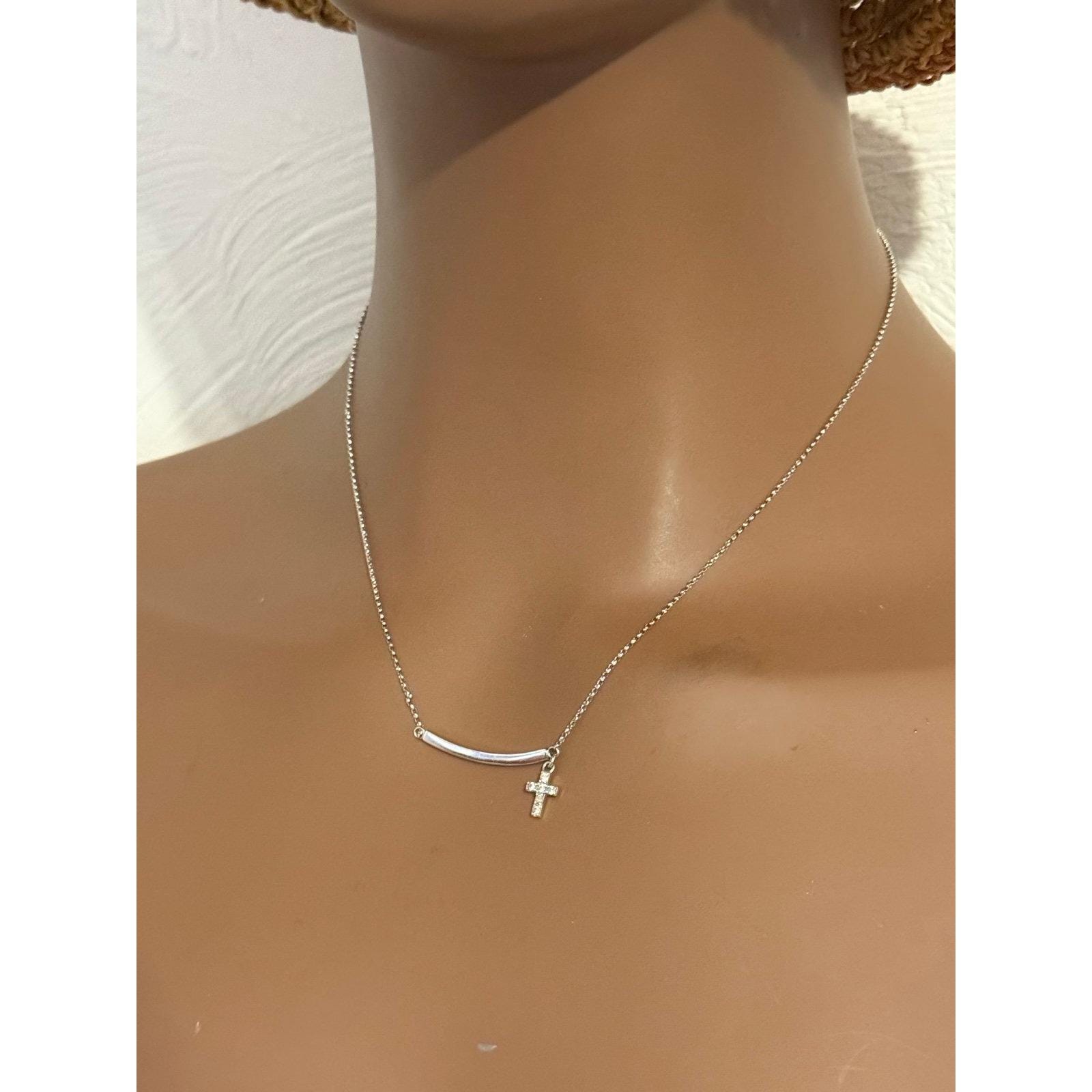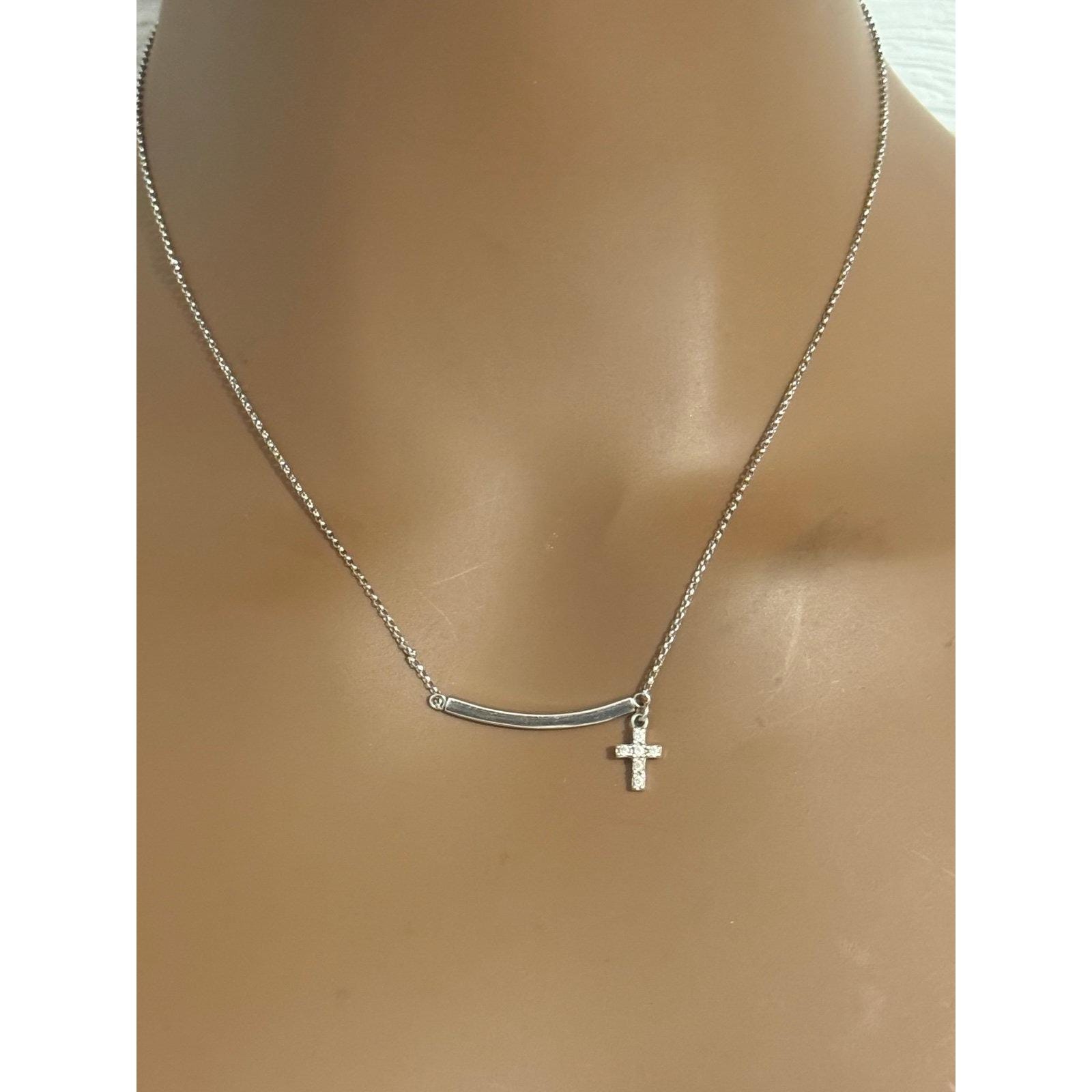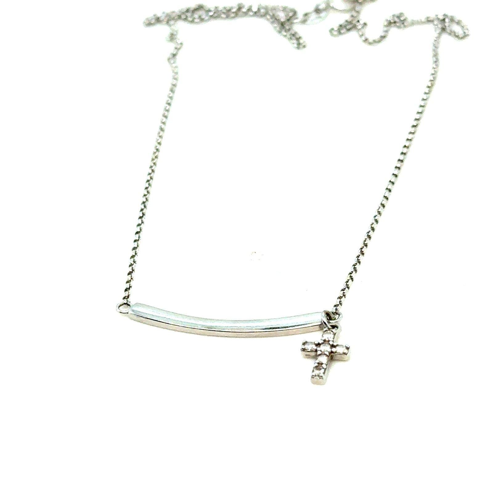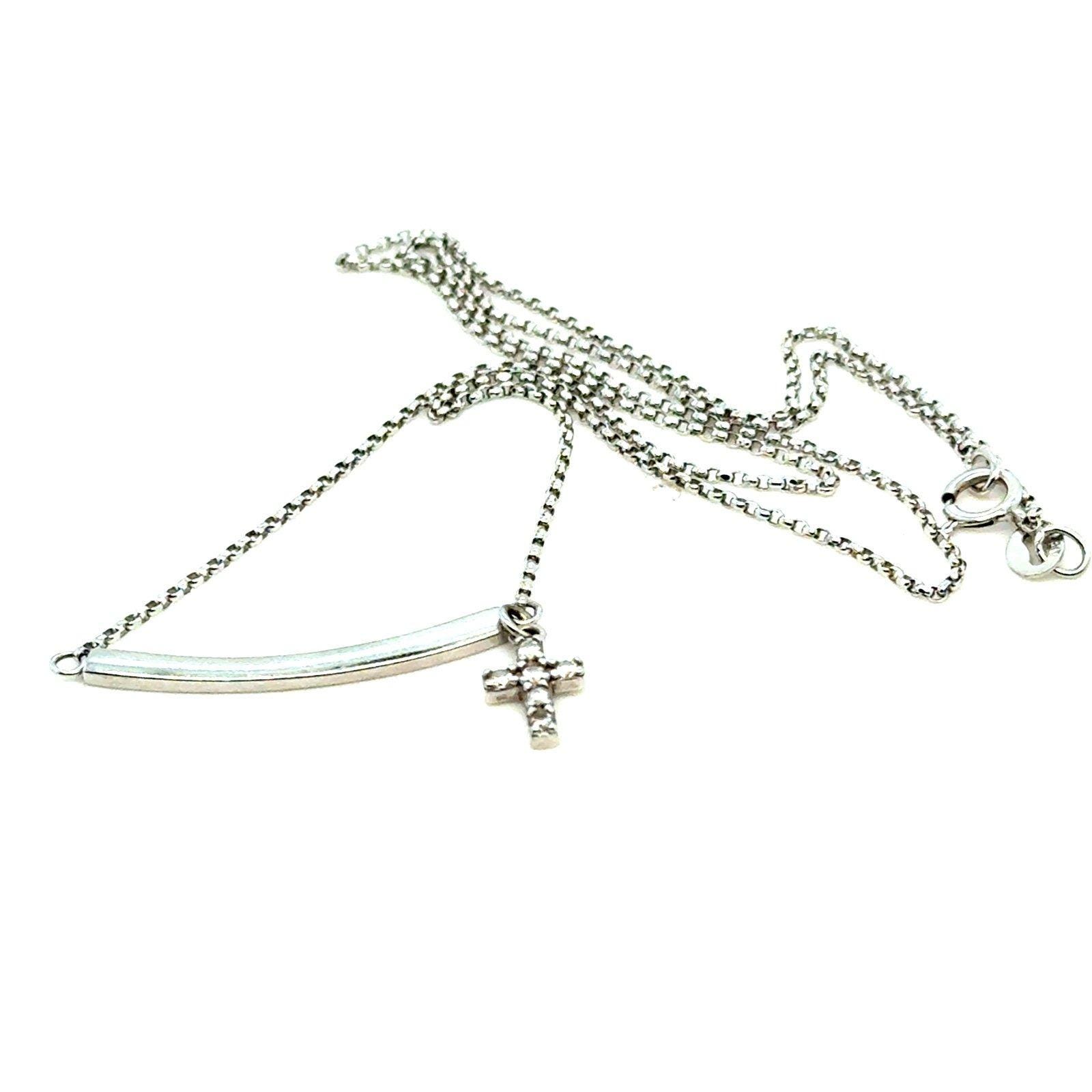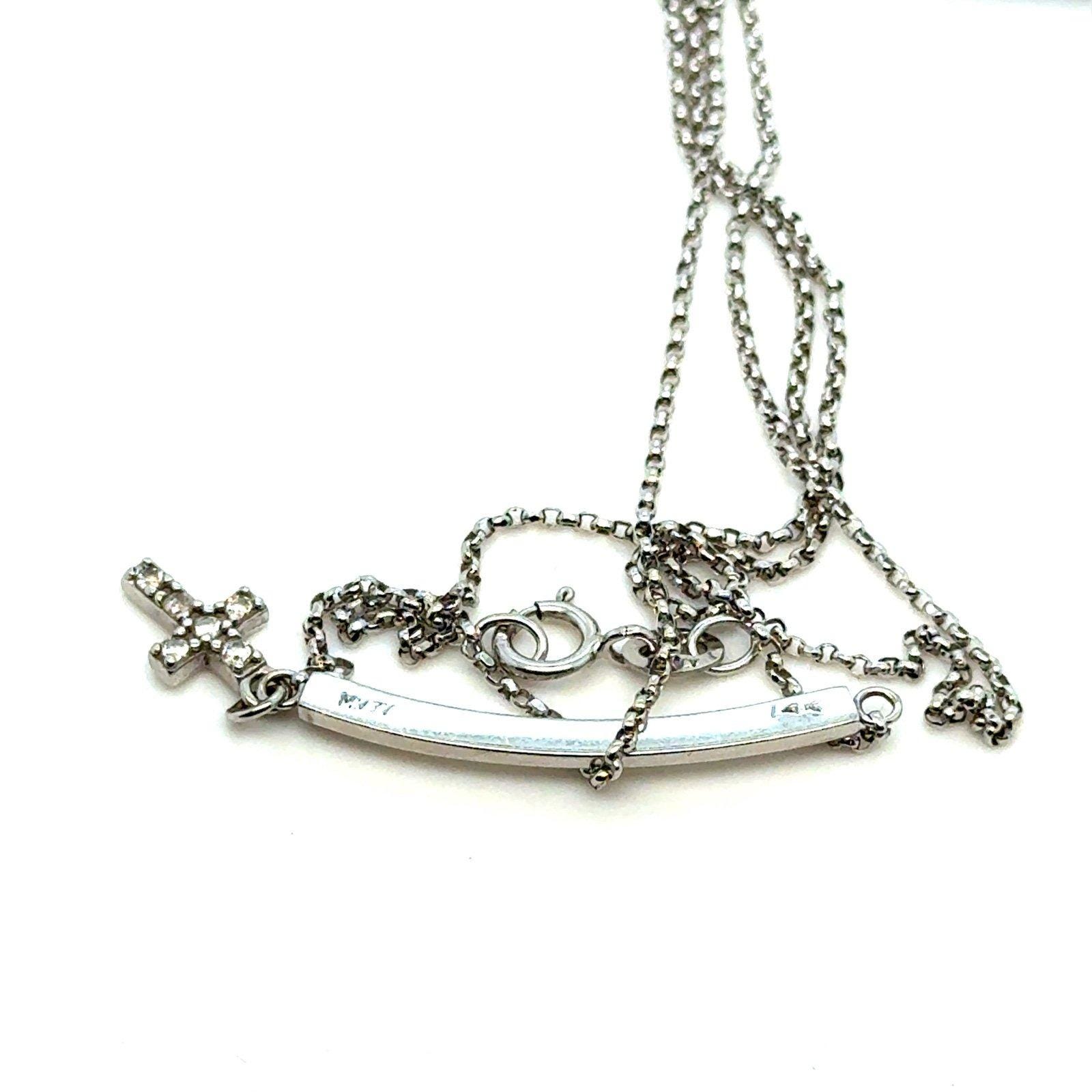 Real 14K White Gold Tiny Diamonds Cross Necklace, REAL GOLD, NOT GOLD PLATED OR GOLD FILLED!!