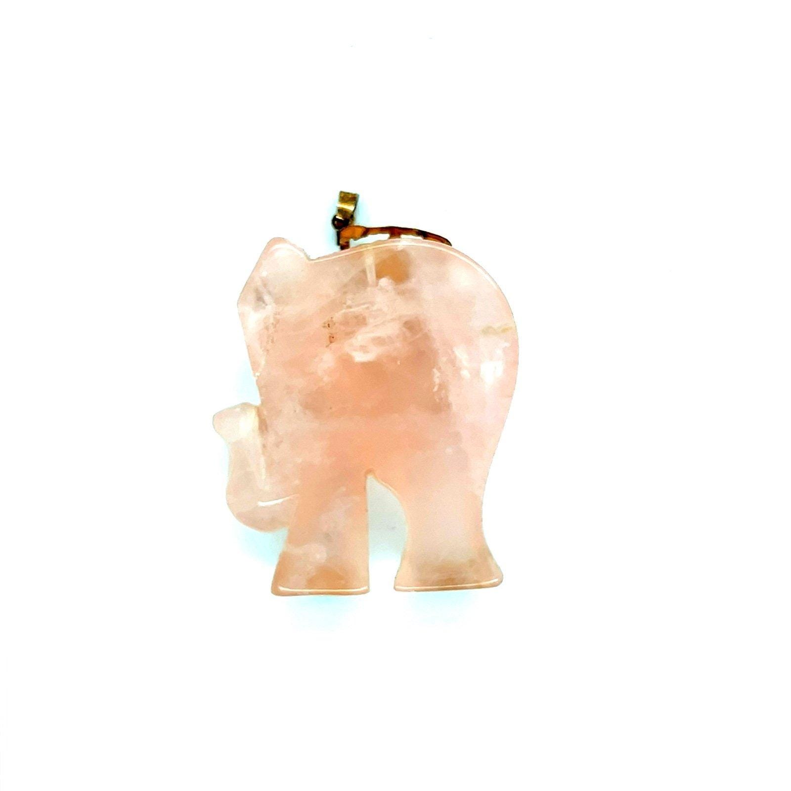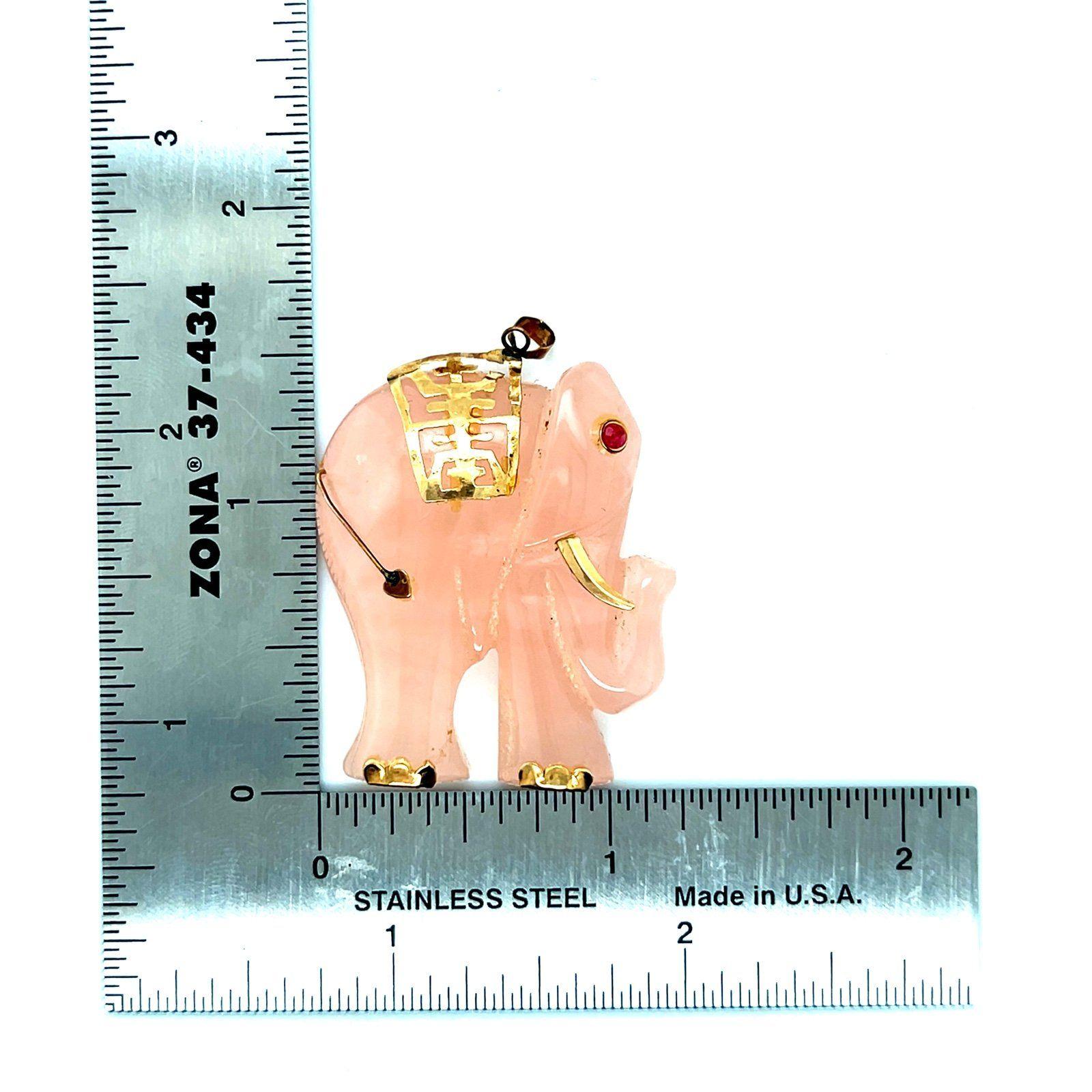Real 14k Yellow Gold Elephant Quartz with Ruby Eye Pendant, NOT GOLD PLATED OR GOLD FILLED.