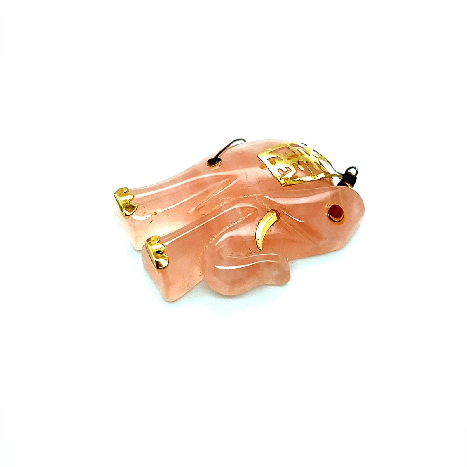 14K Gold Elephant Quartz Ruby Eye Pendant