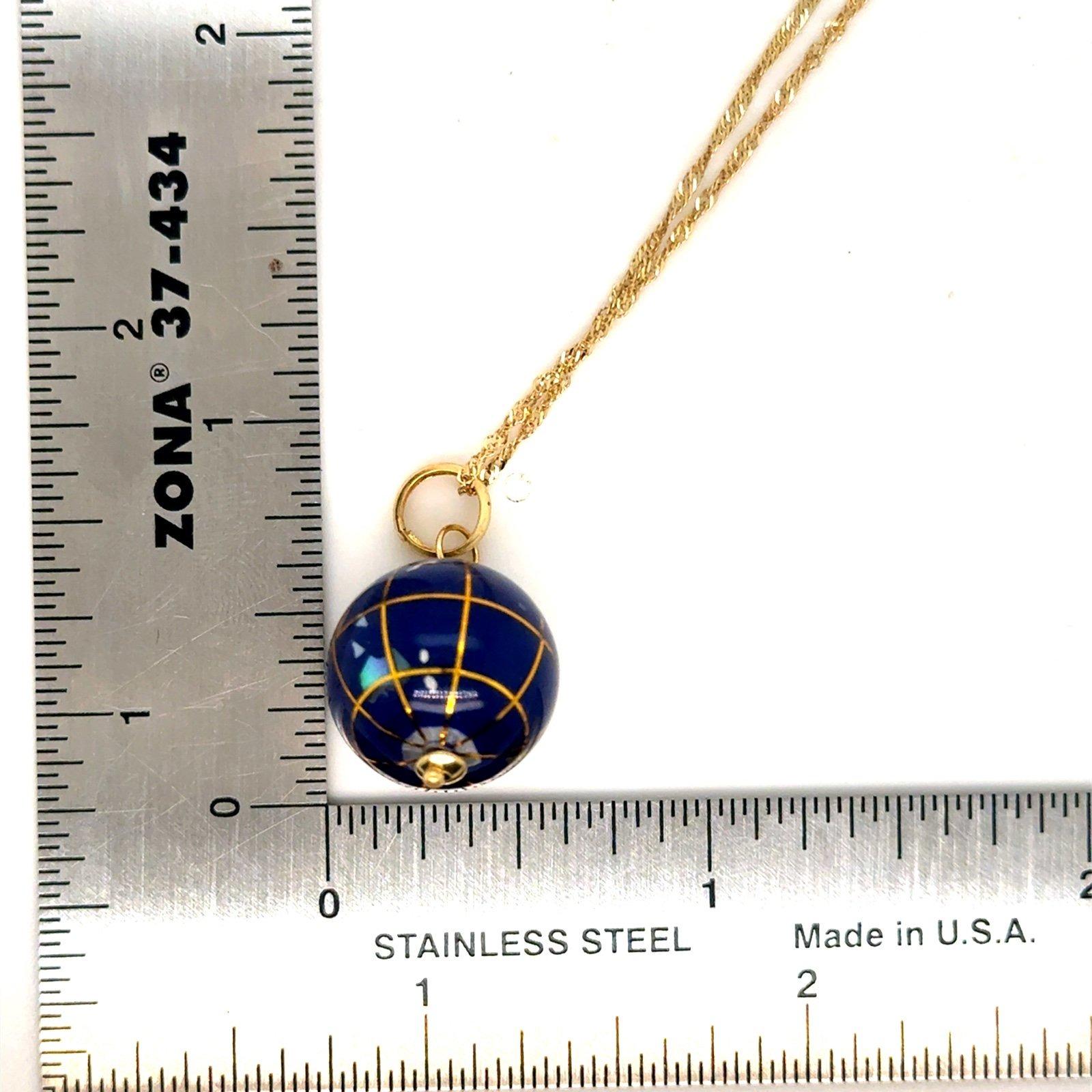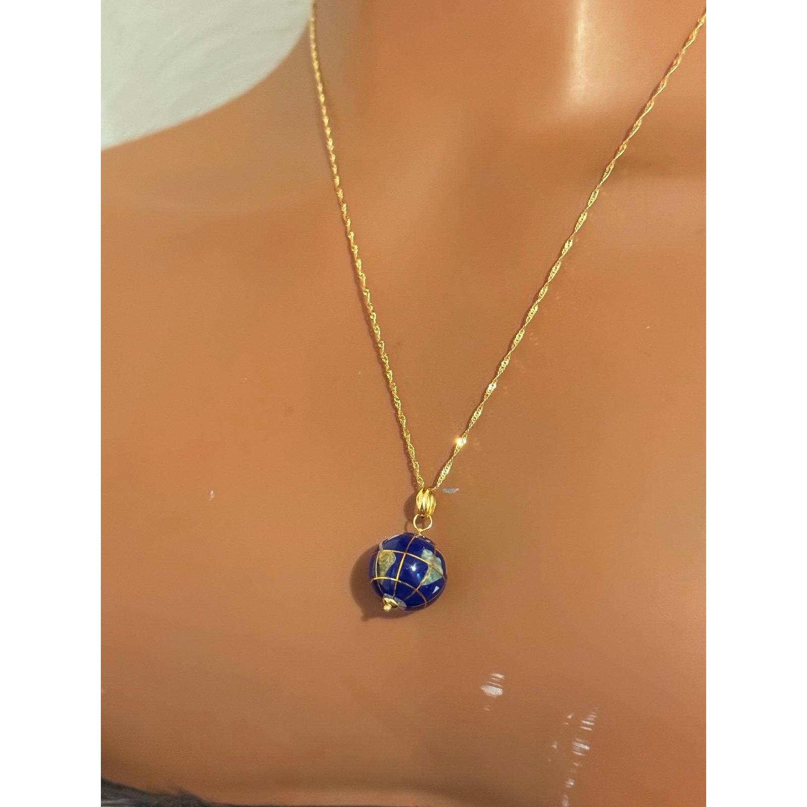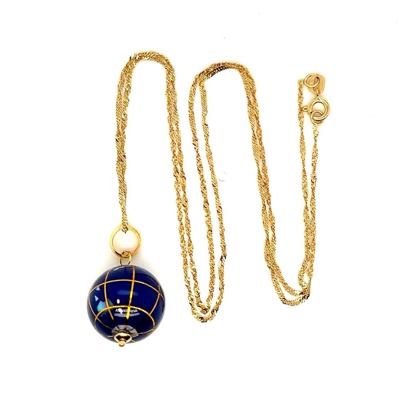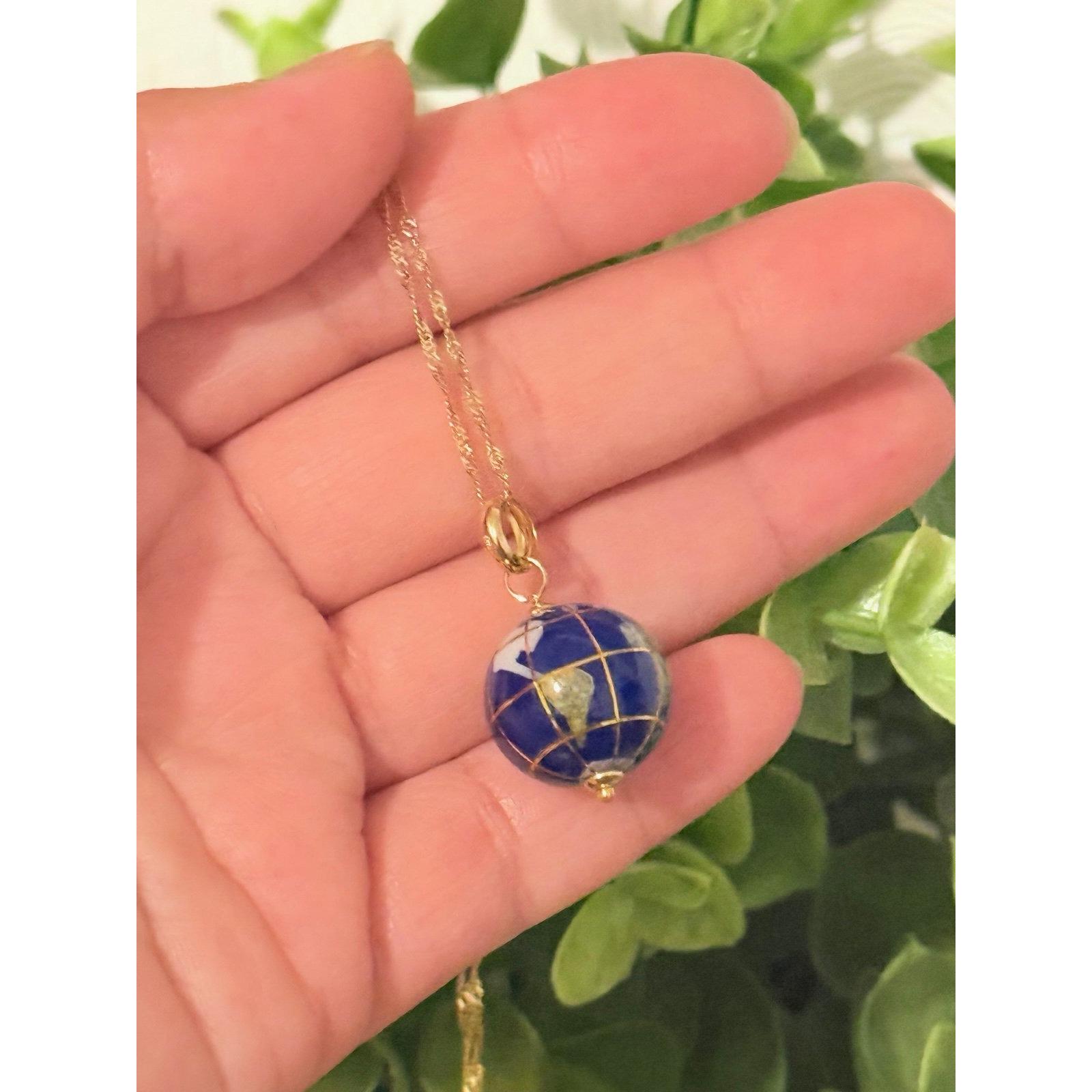 Real 14k Yellow Gold Blue Globe Pendant Necklace, REAL GOLD, NOT GOLD PLATED OR GOLD FILLED.