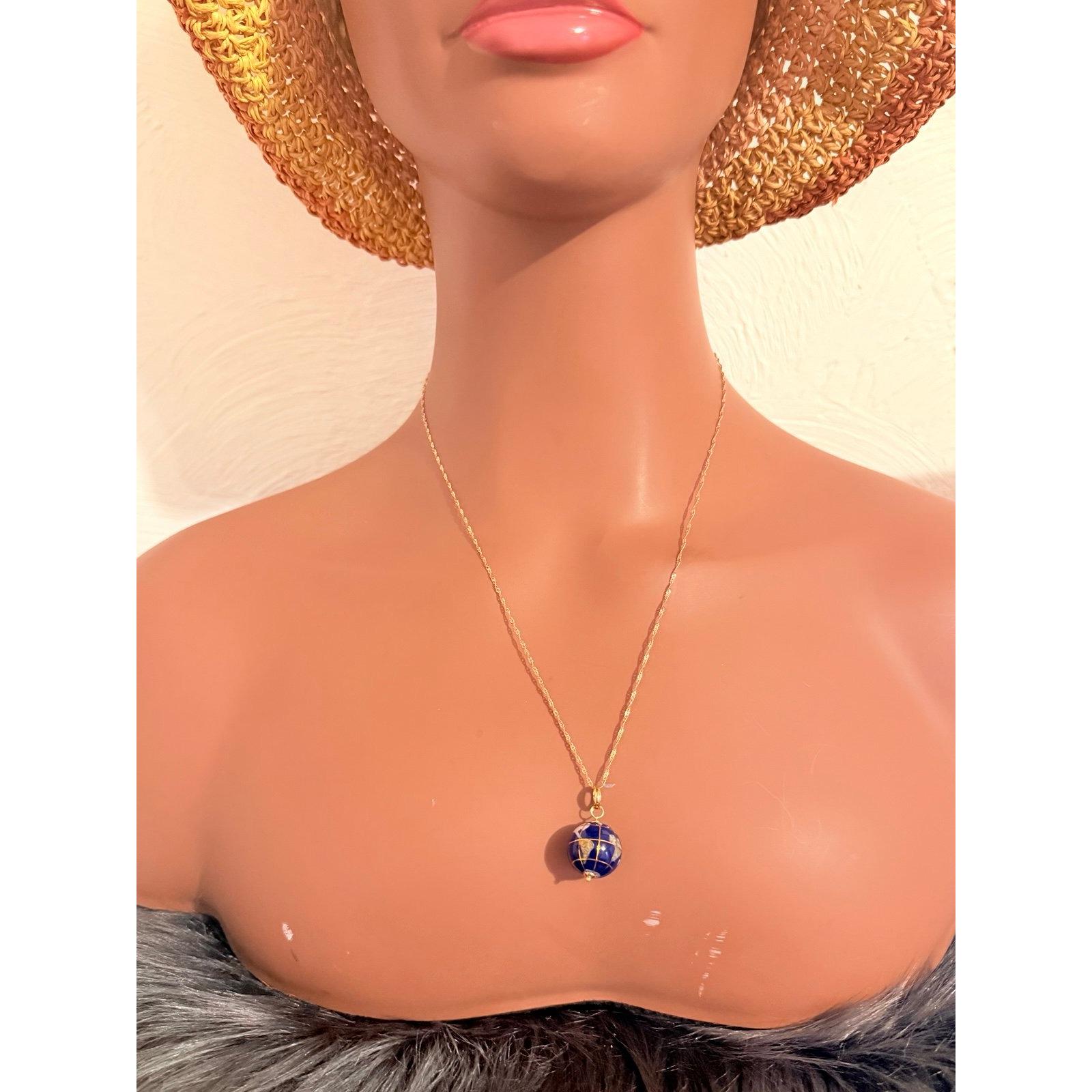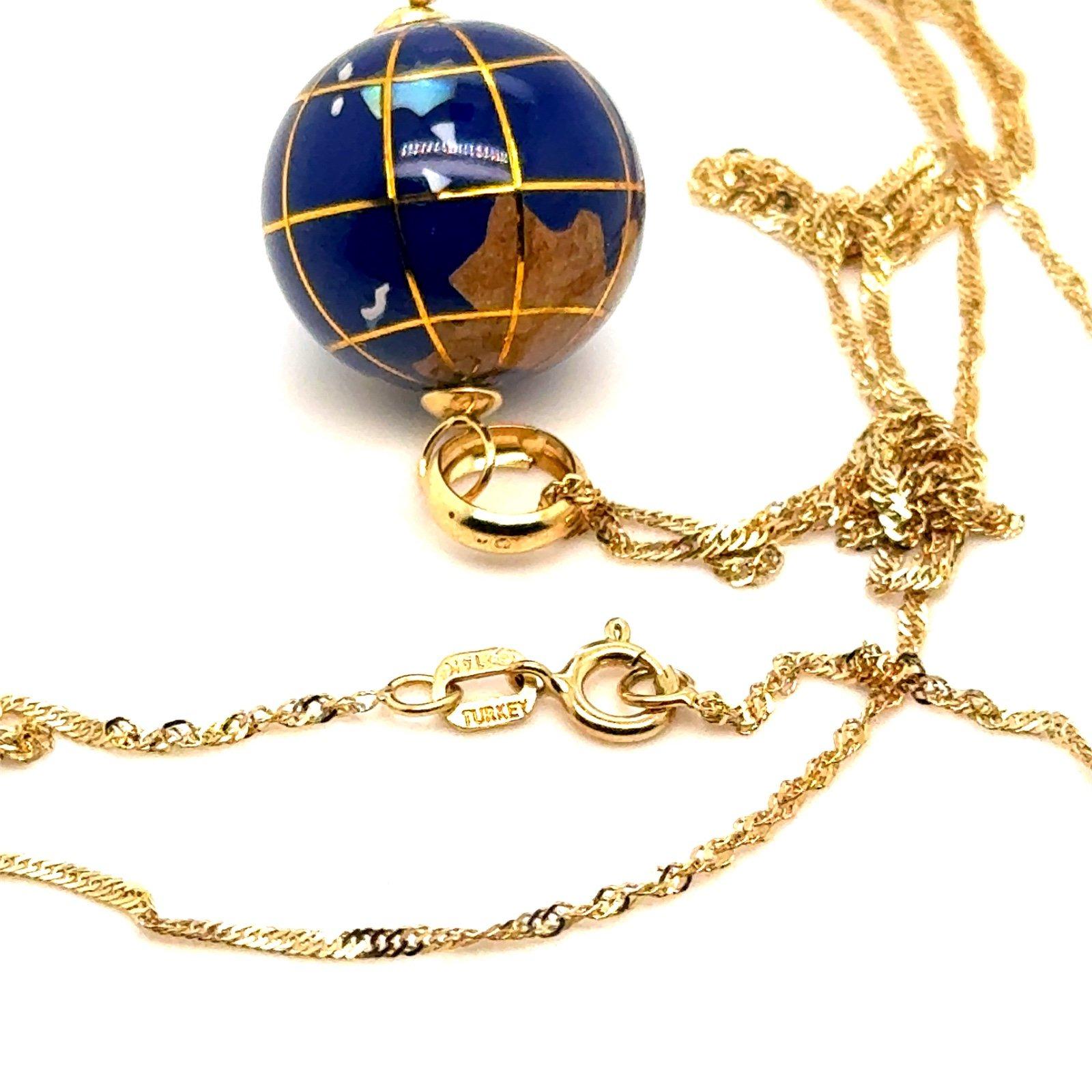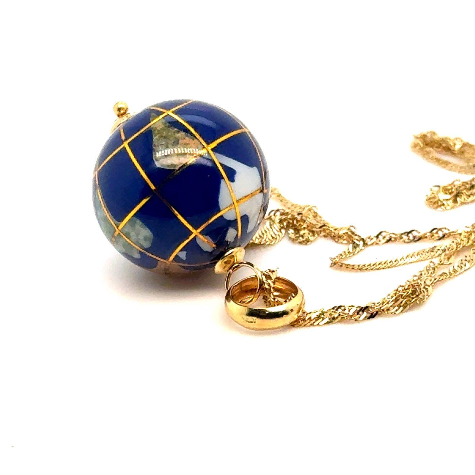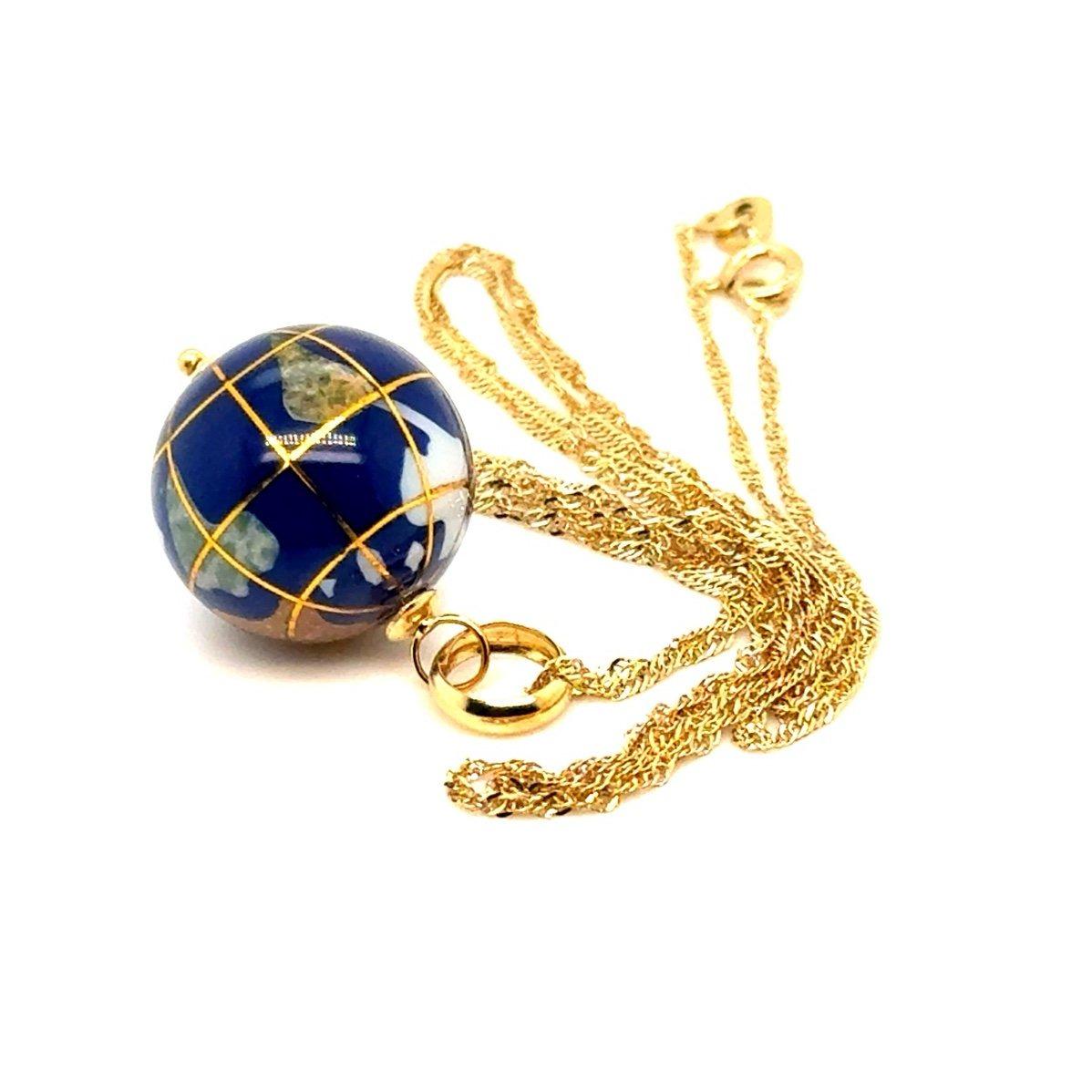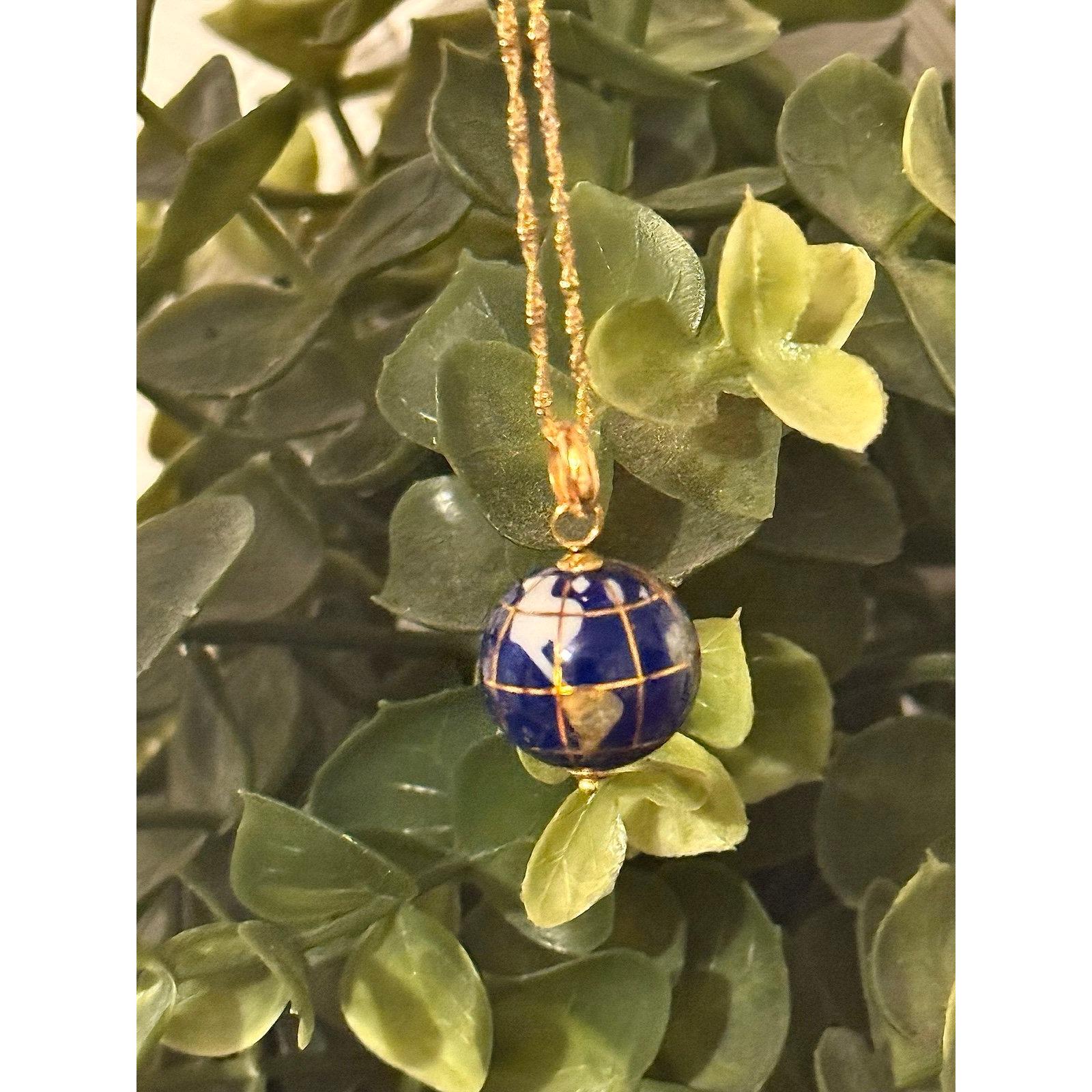 Real 14k Yellow Gold Blue Globe Pendant Necklace, REAL GOLD, NOT GOLD PLATED OR GOLD FILLED.