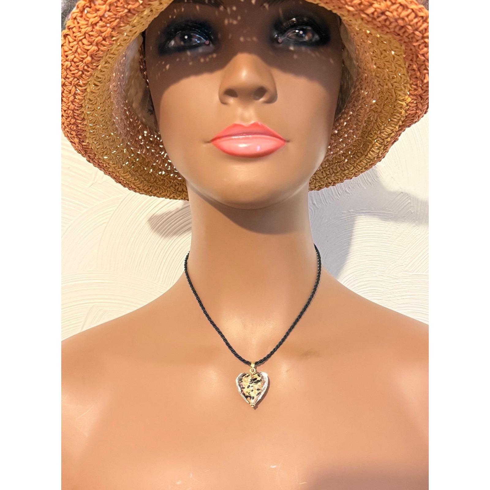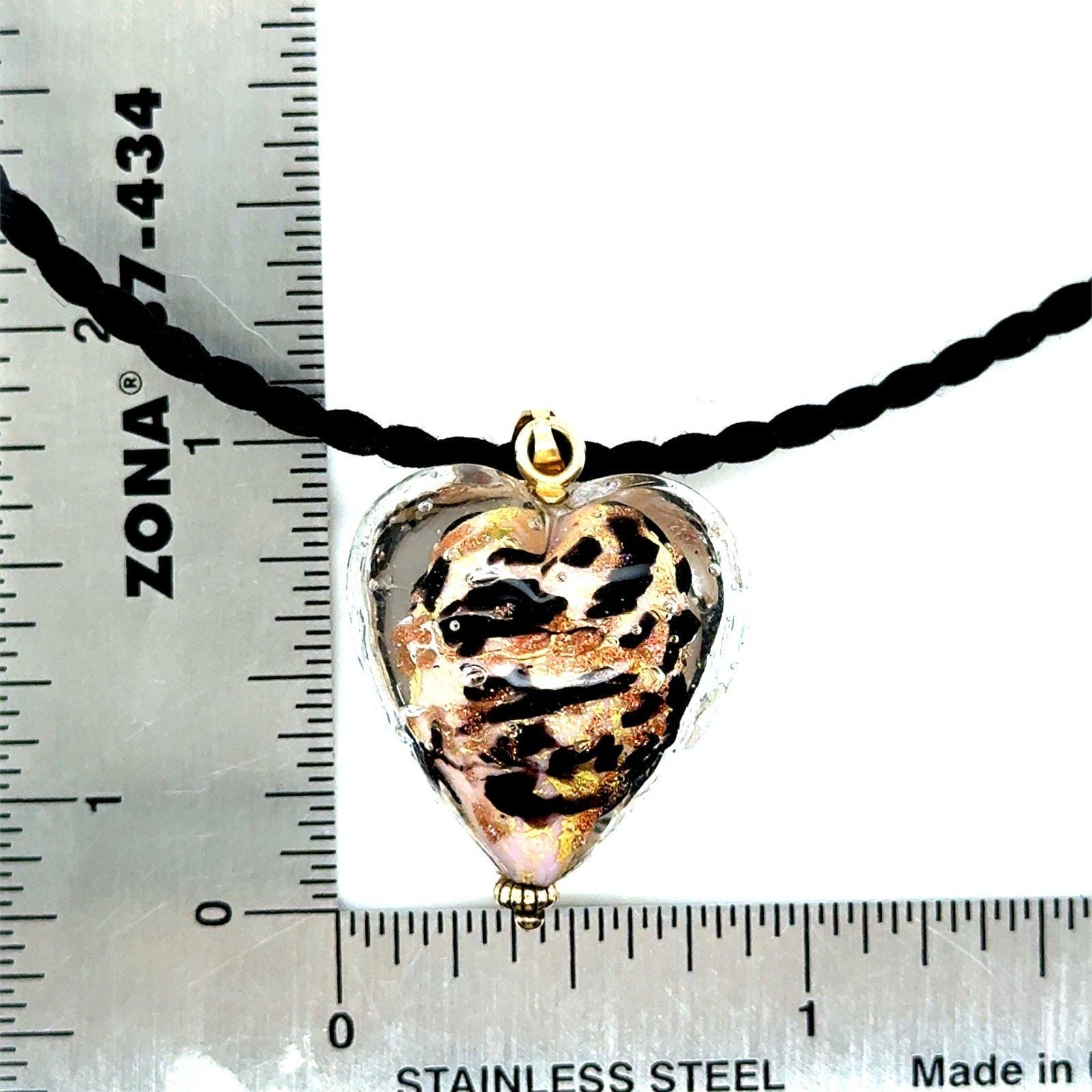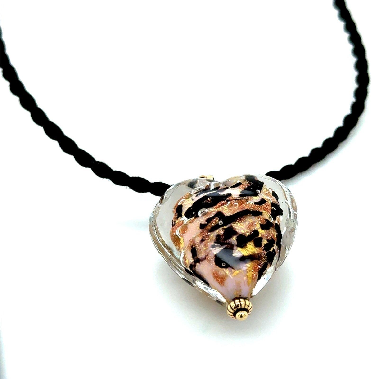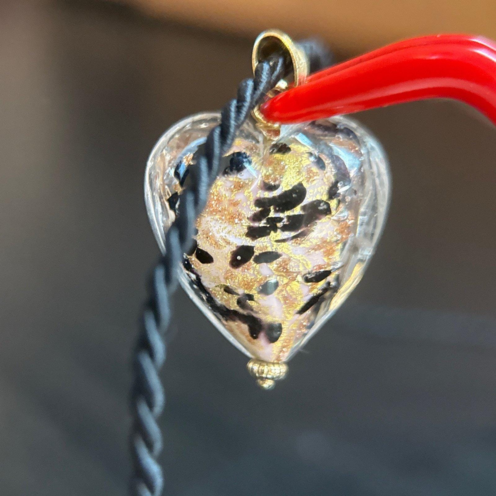 Real 14K Yellow Gold Murano Heart Necklace.
