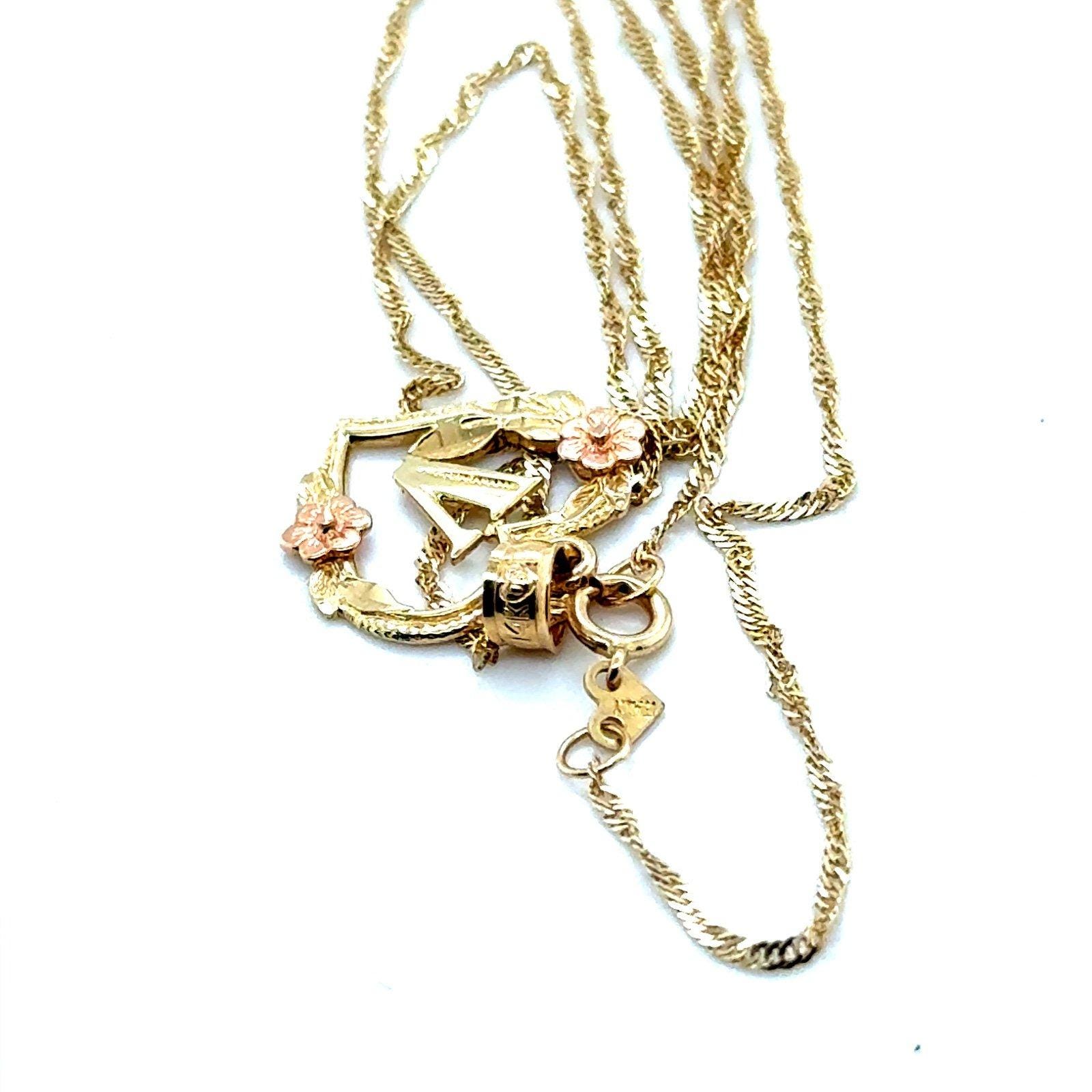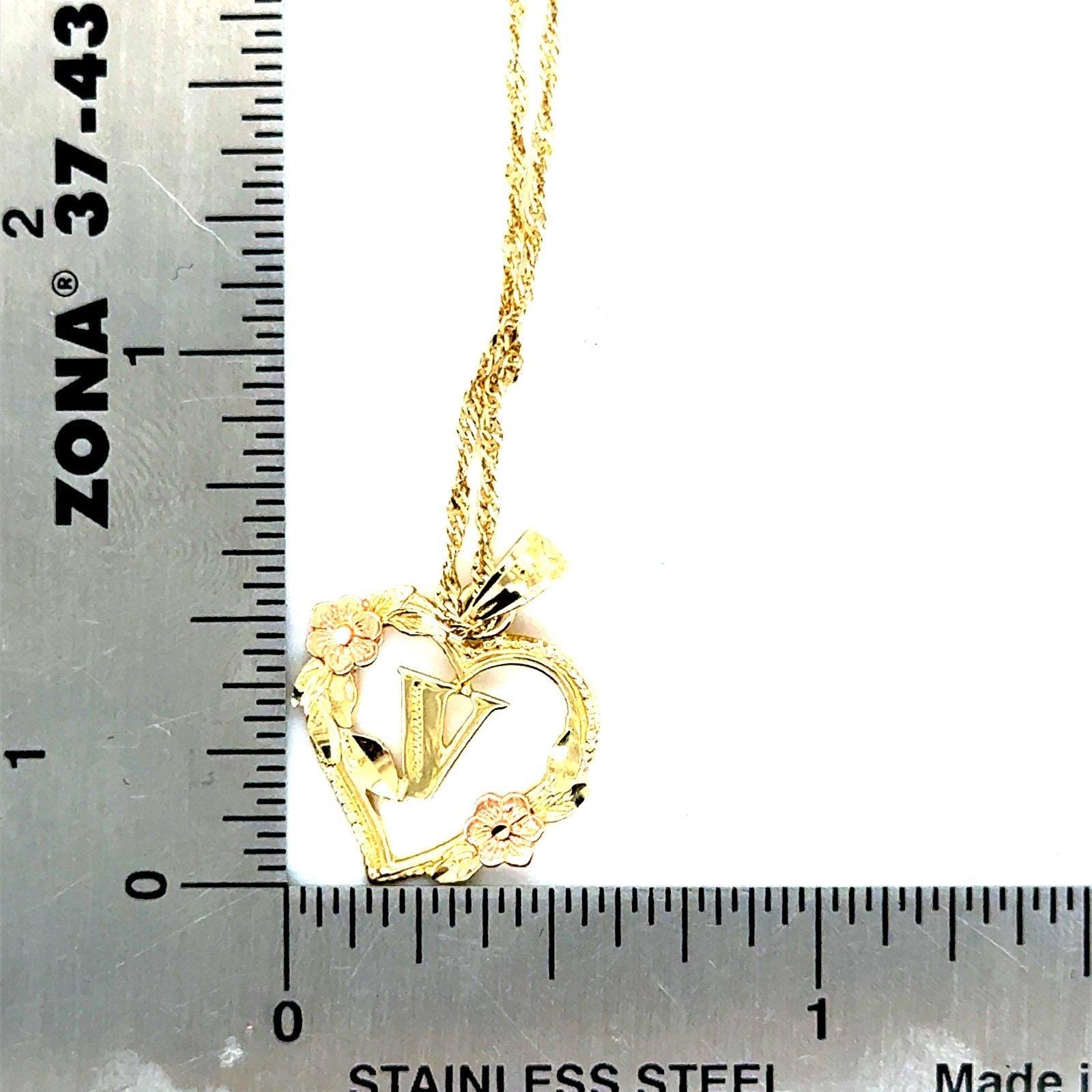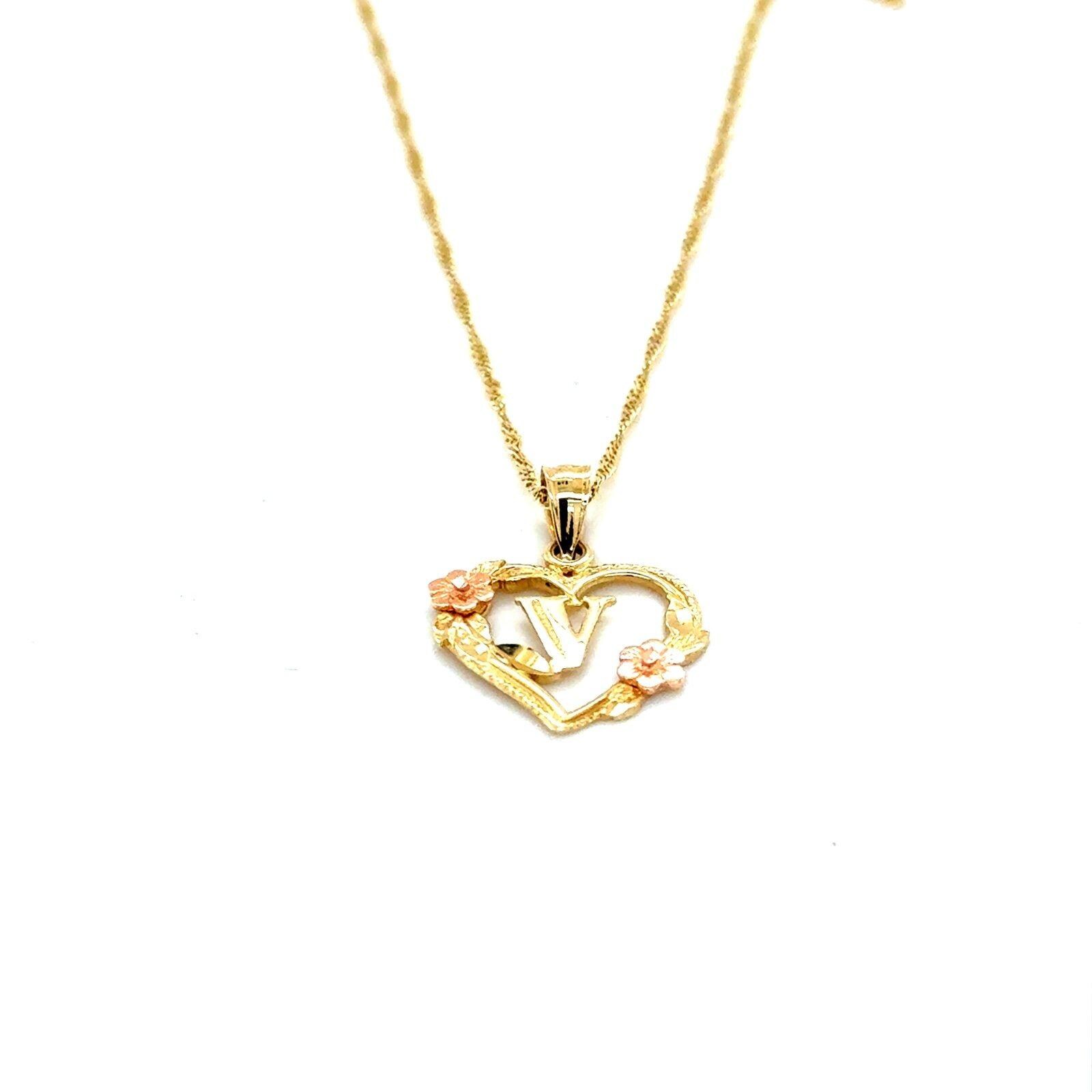 Real 14k Yellow Gold with Rose Gold Rose Flower V Inside Heart Pendant Necklace, NOT GOLD PLATED OR GOLD FILLED.