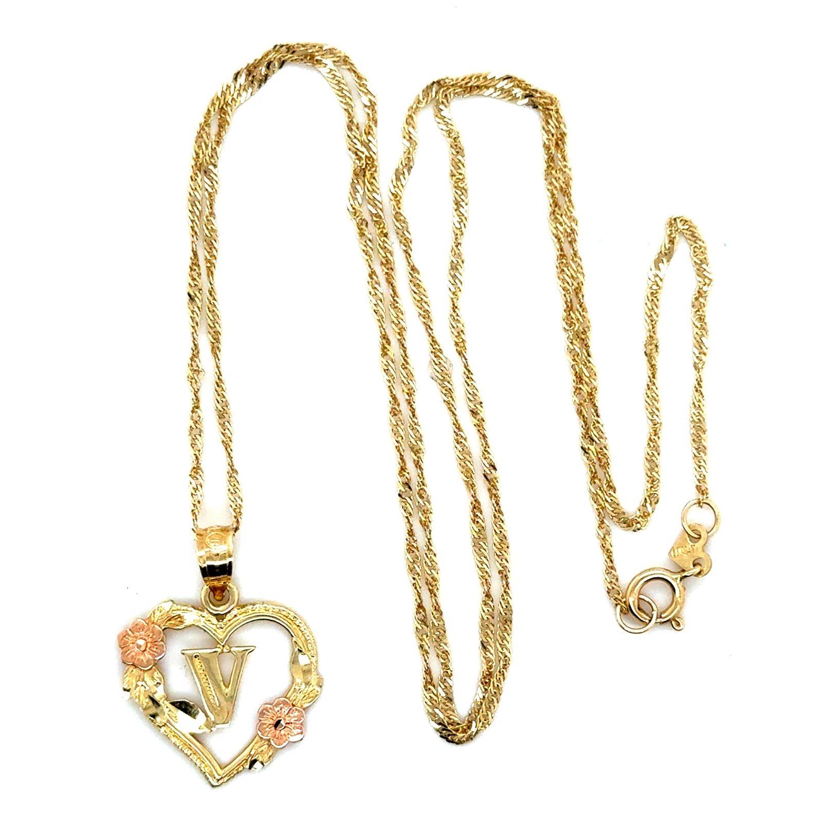 14K Gold V Inside Heart Pendant Necklace