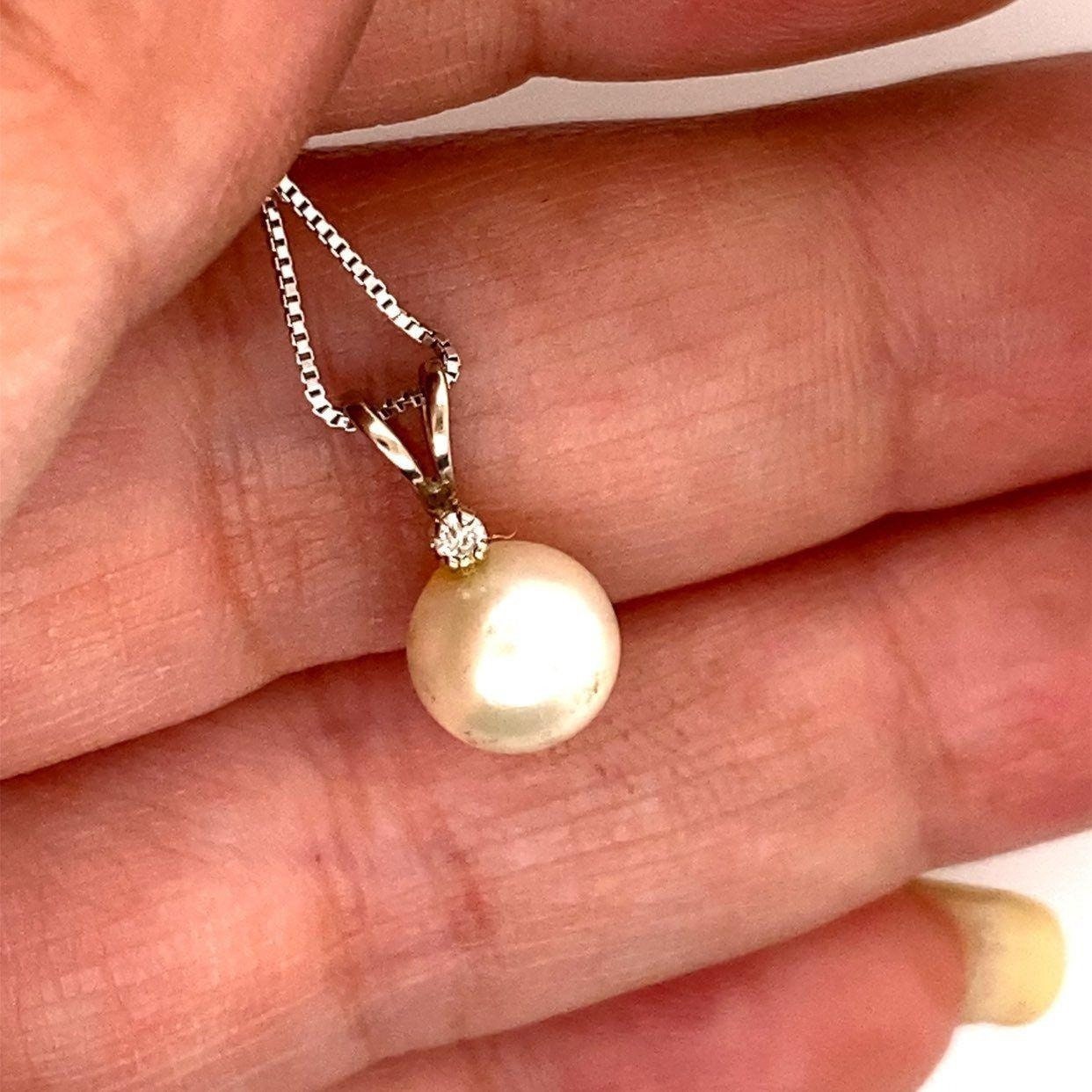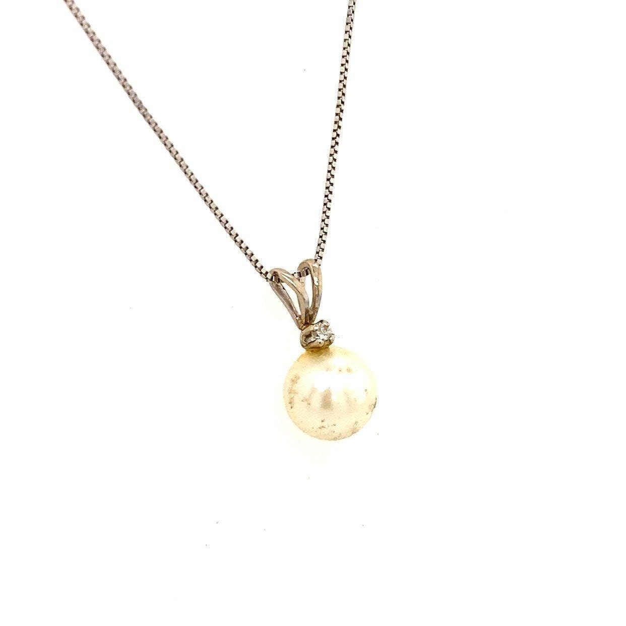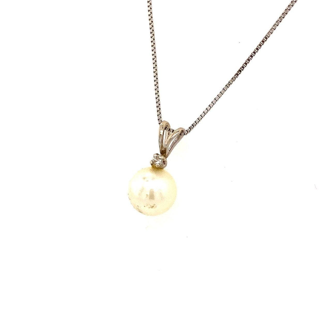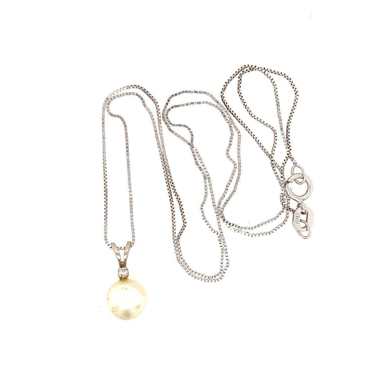Real 14k White Gold Pearl and Diamond Necklace, REAL 14K White Gold, NOT GOLD PLATED OR