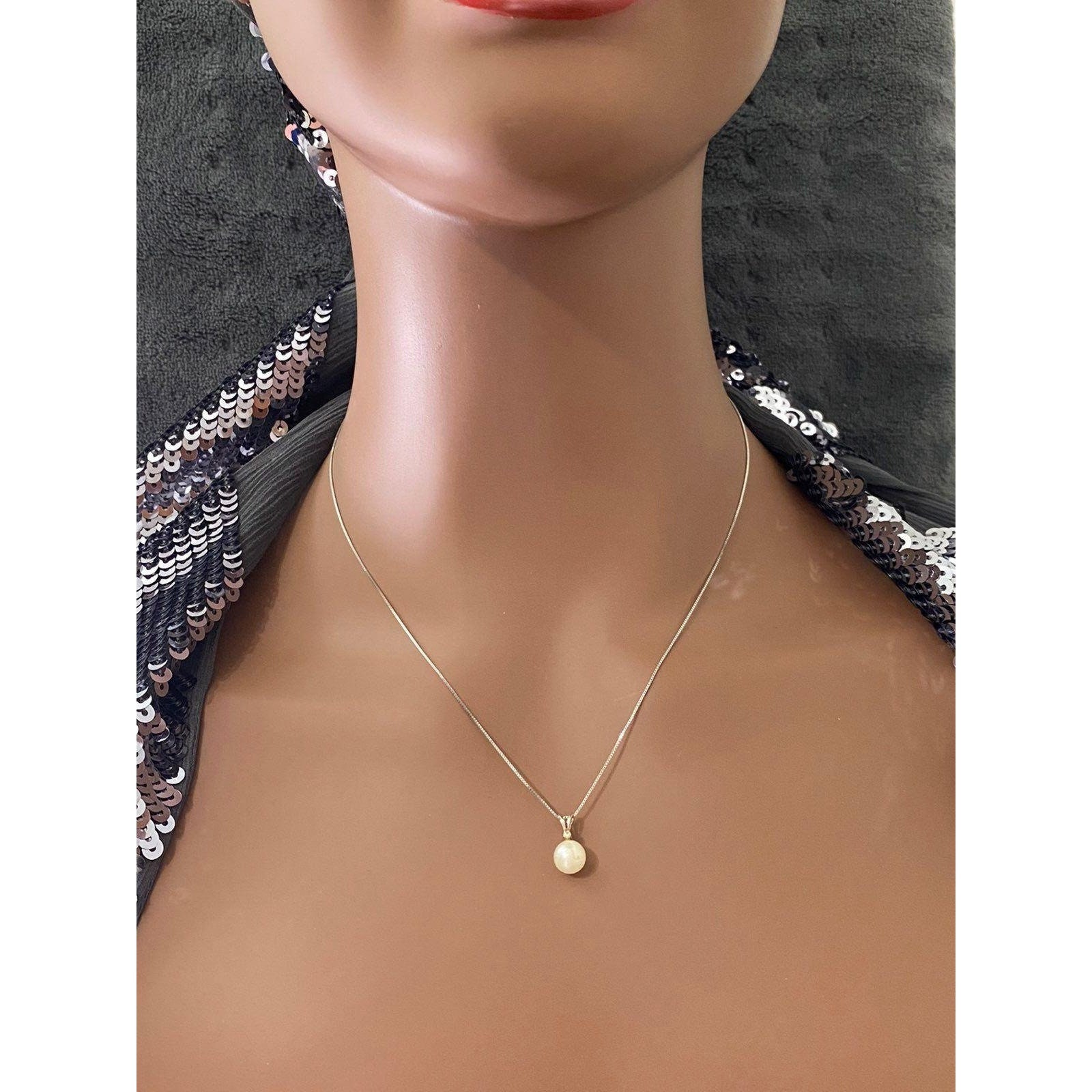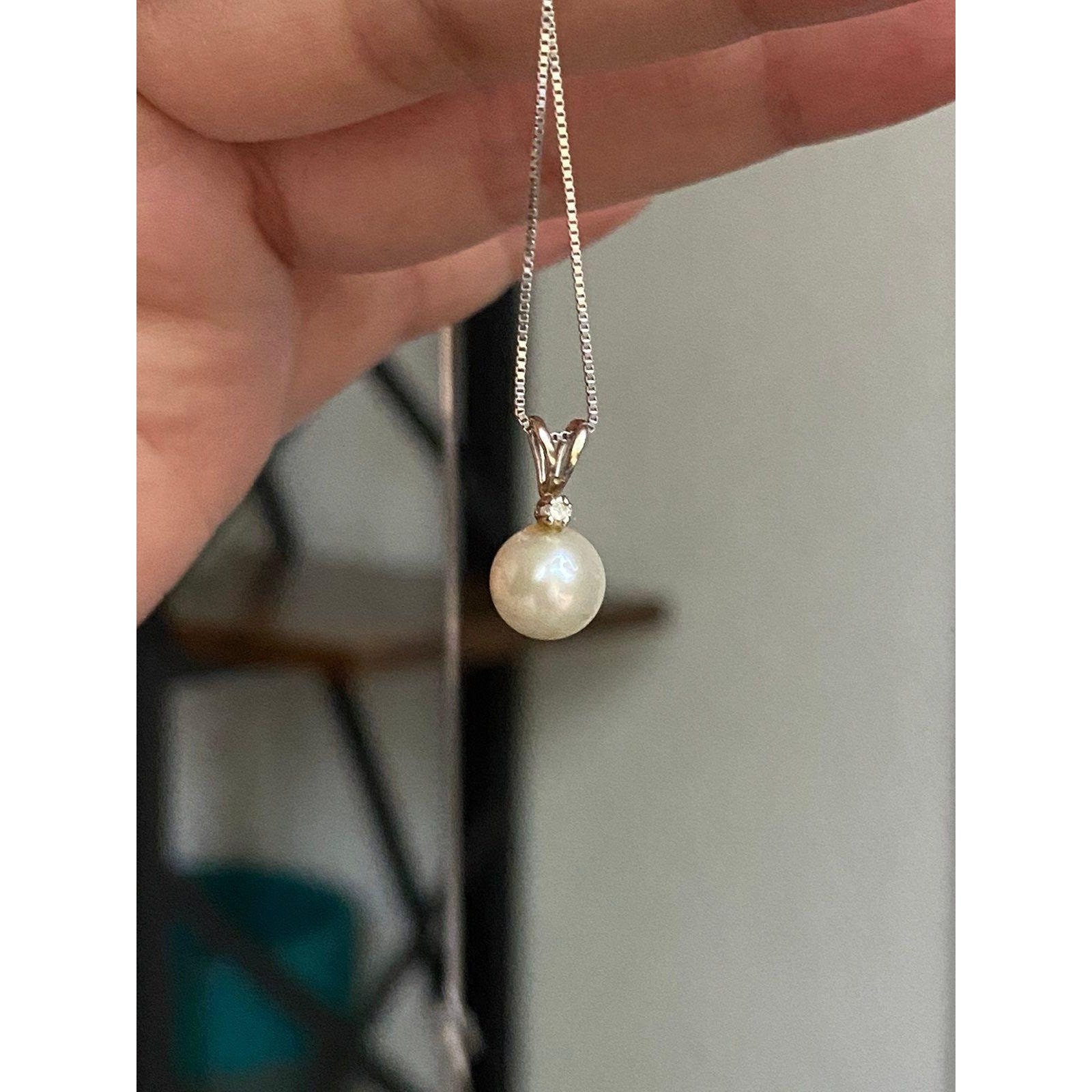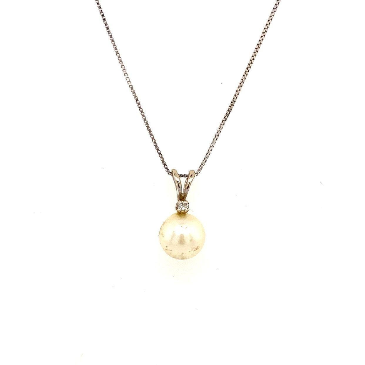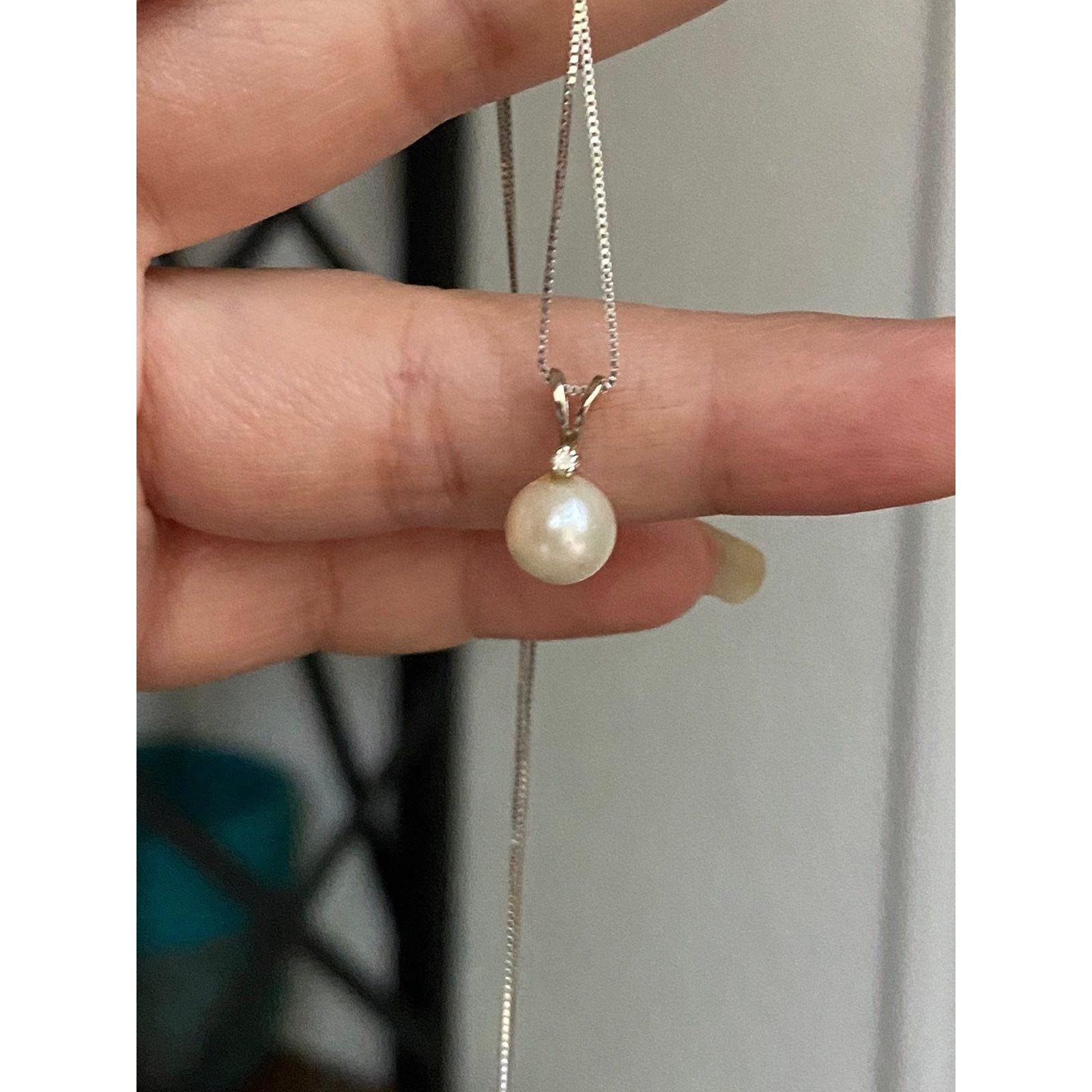Real 14k White Gold Pearl and Diamond Necklace, REAL 14K White Gold, NOT GOLD PLATED OR