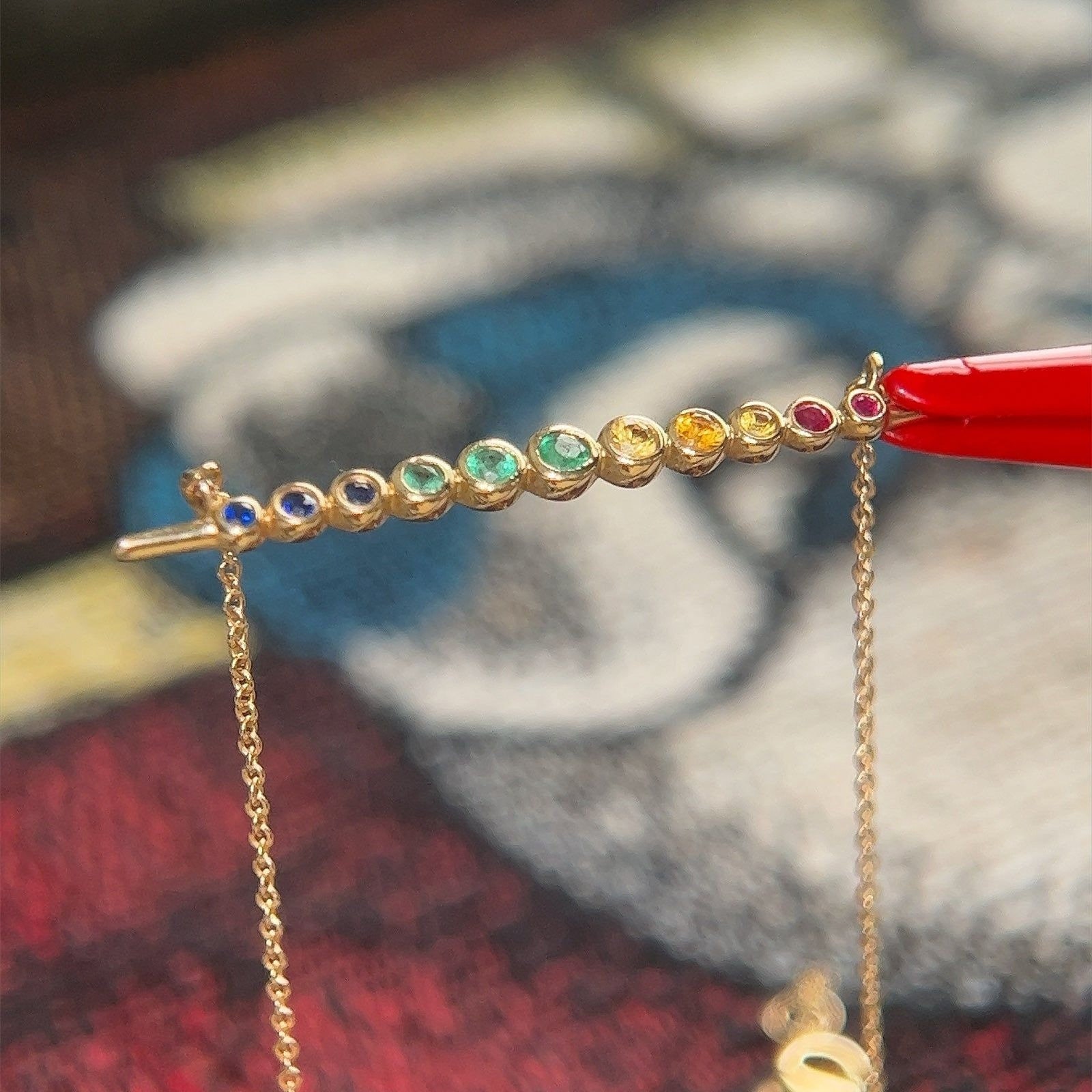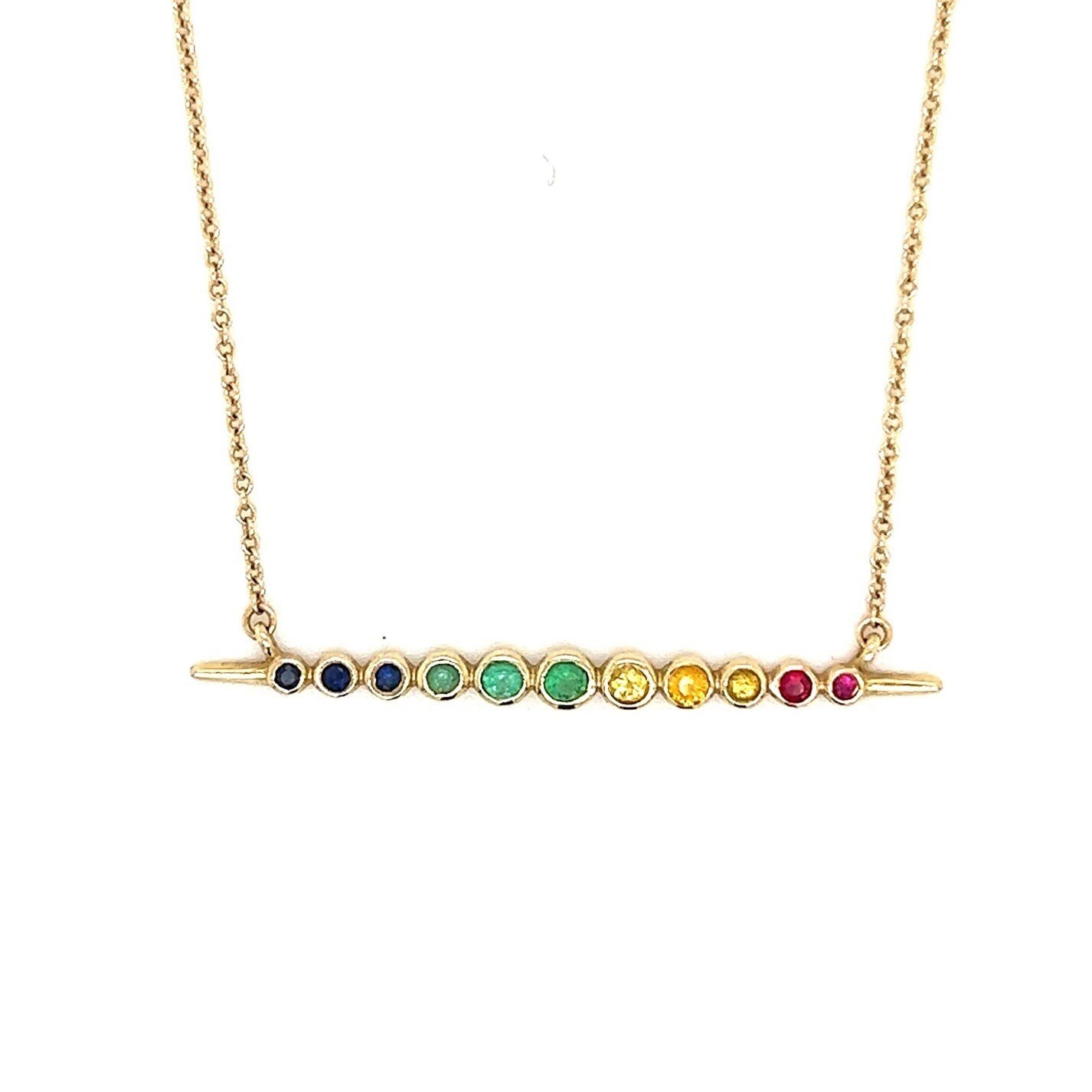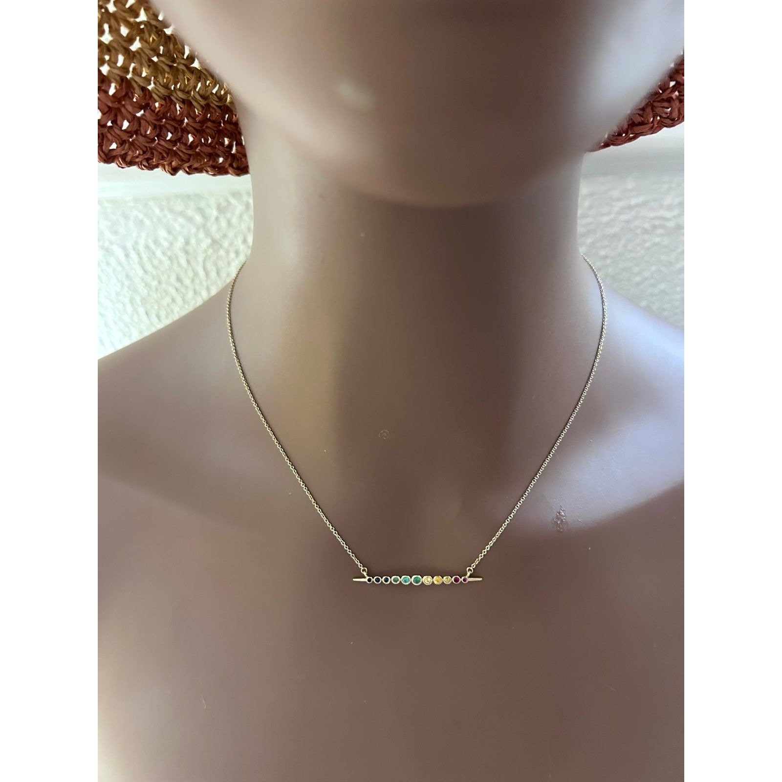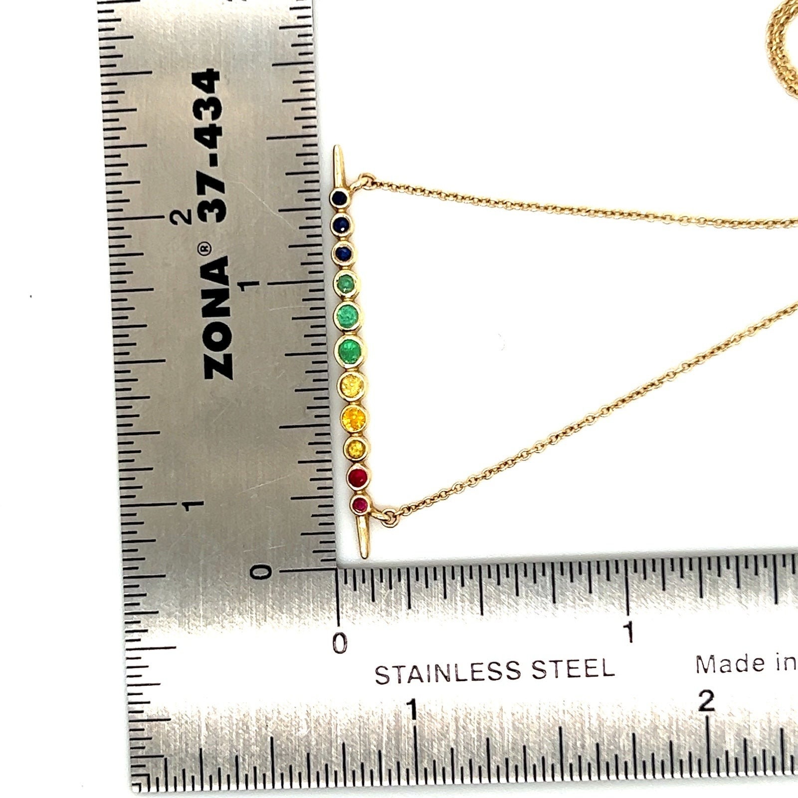 Real 14k Yellow Gold Multi-Gemstones Necklace, NOT GOLD PLATED OR GOLD FILLED.