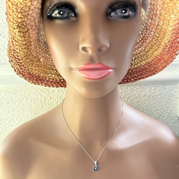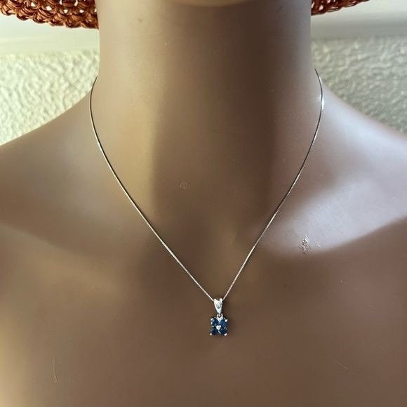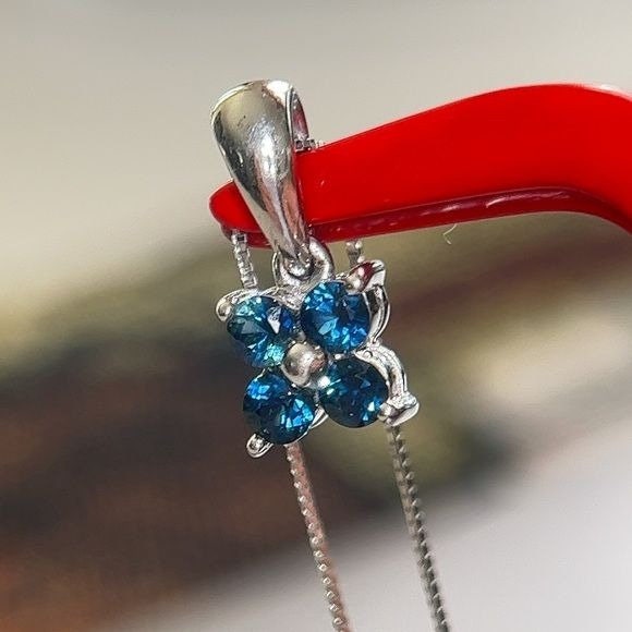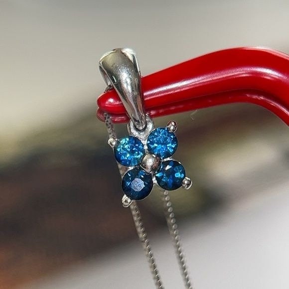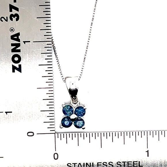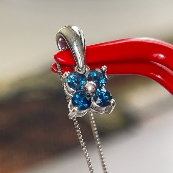 Real 14k White Gold 4-Blue Diamonds Flower Pendant Necklace , REAL GOLD, NOT GOLD PLATED OR GOLD FILLED.