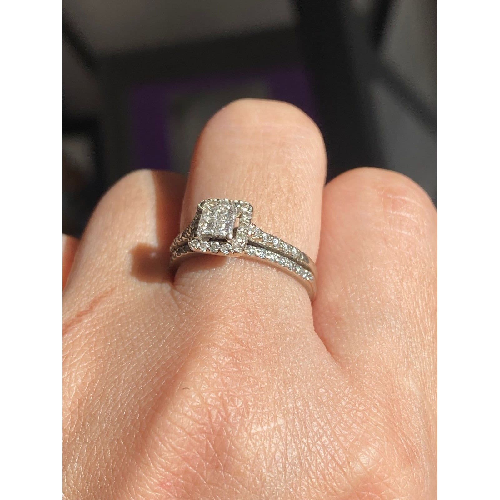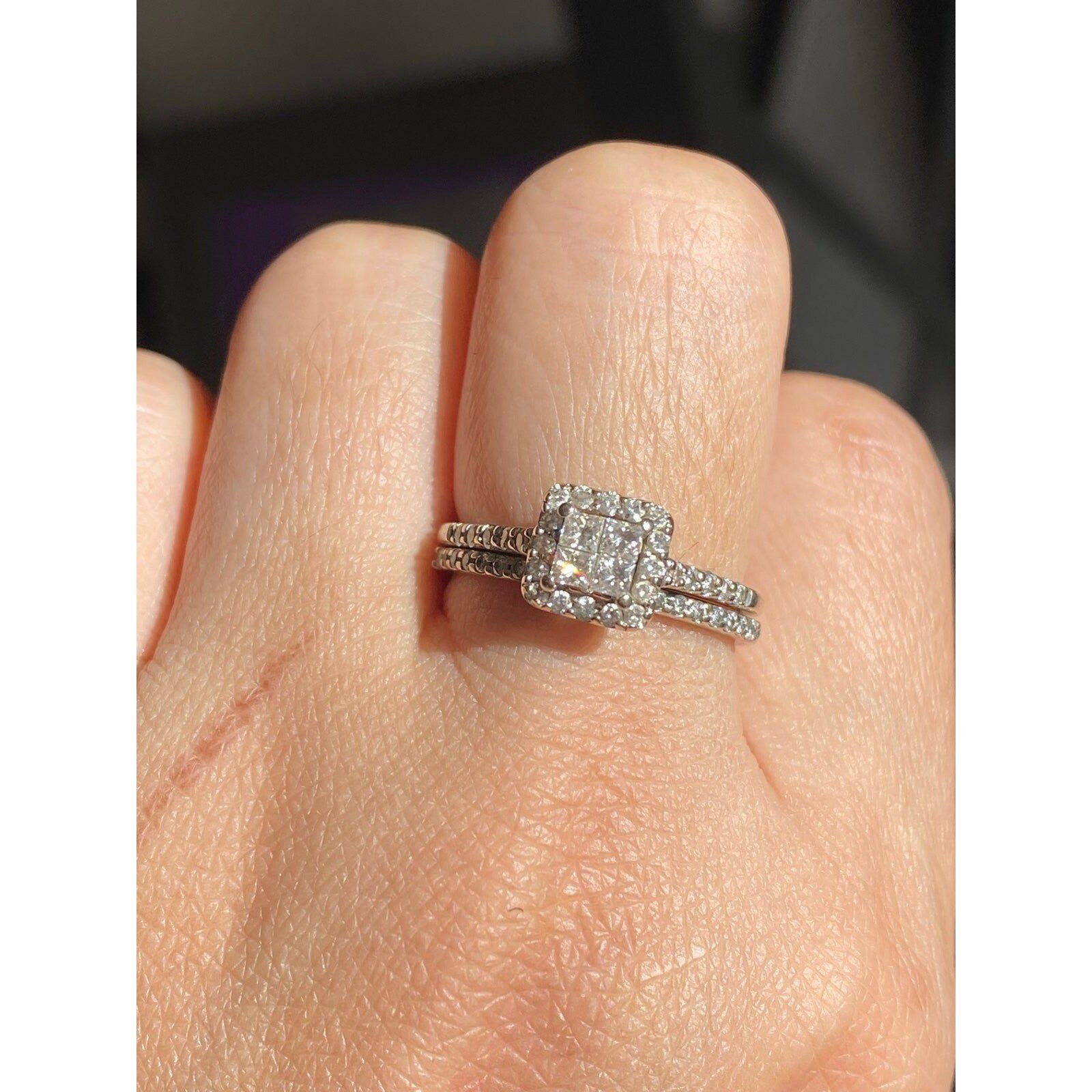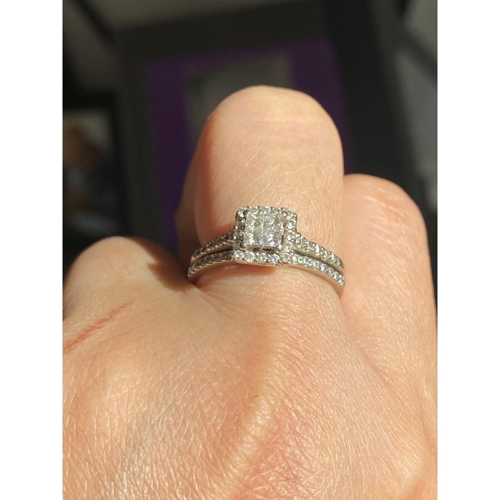 Real 14k White Gold Diamond Engagement Ring and Band Set, NOT GOLD PLATED OR GOLD FILLED.
