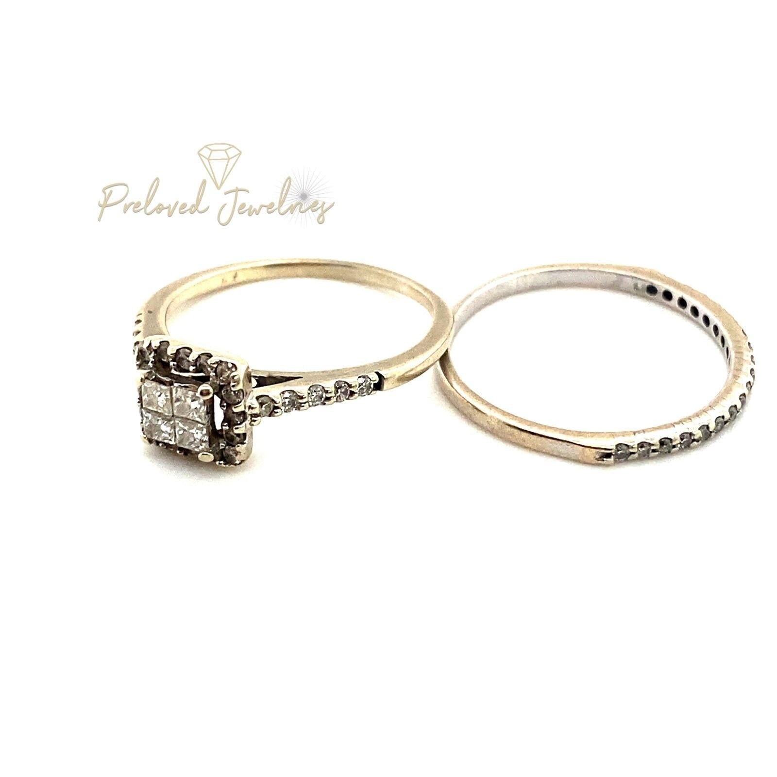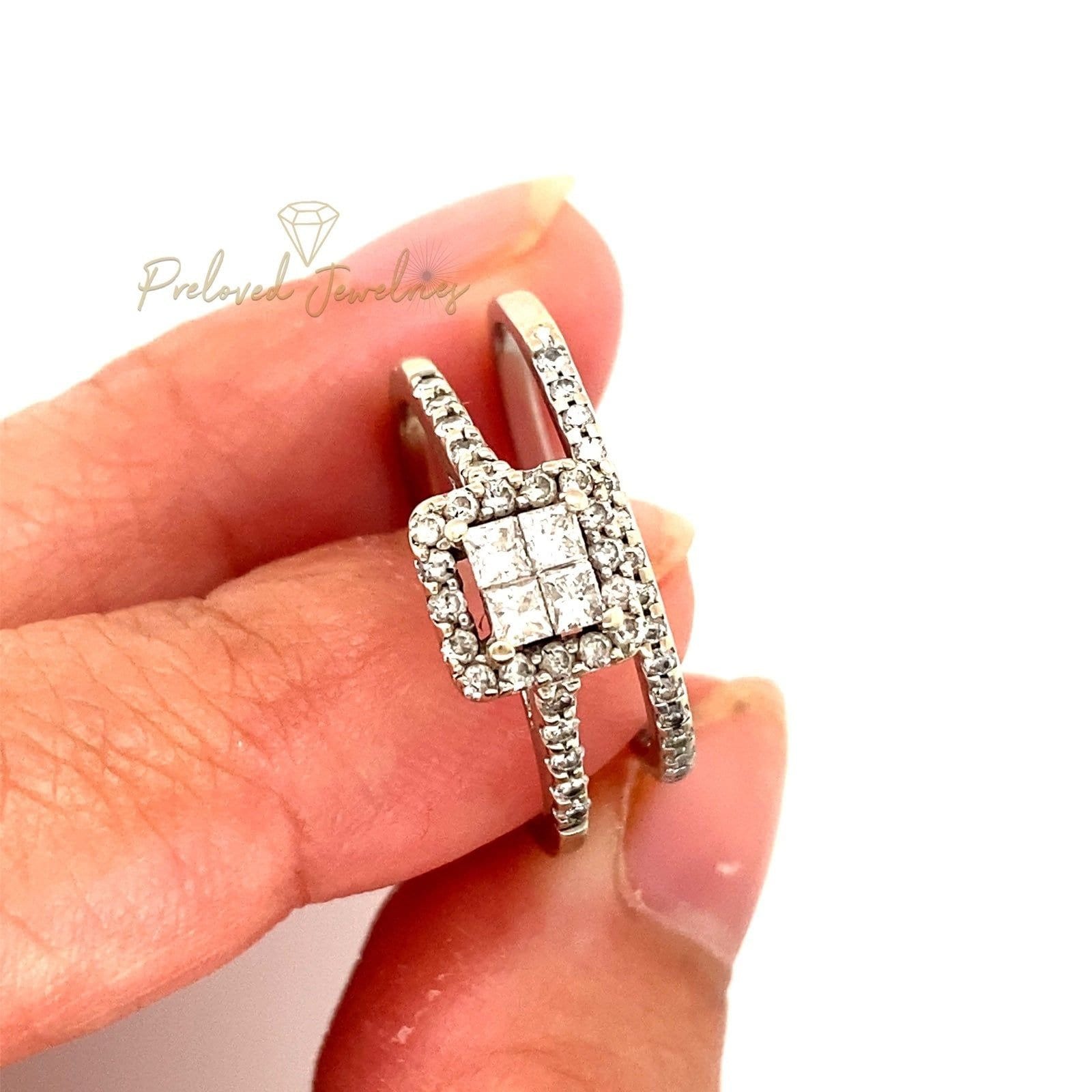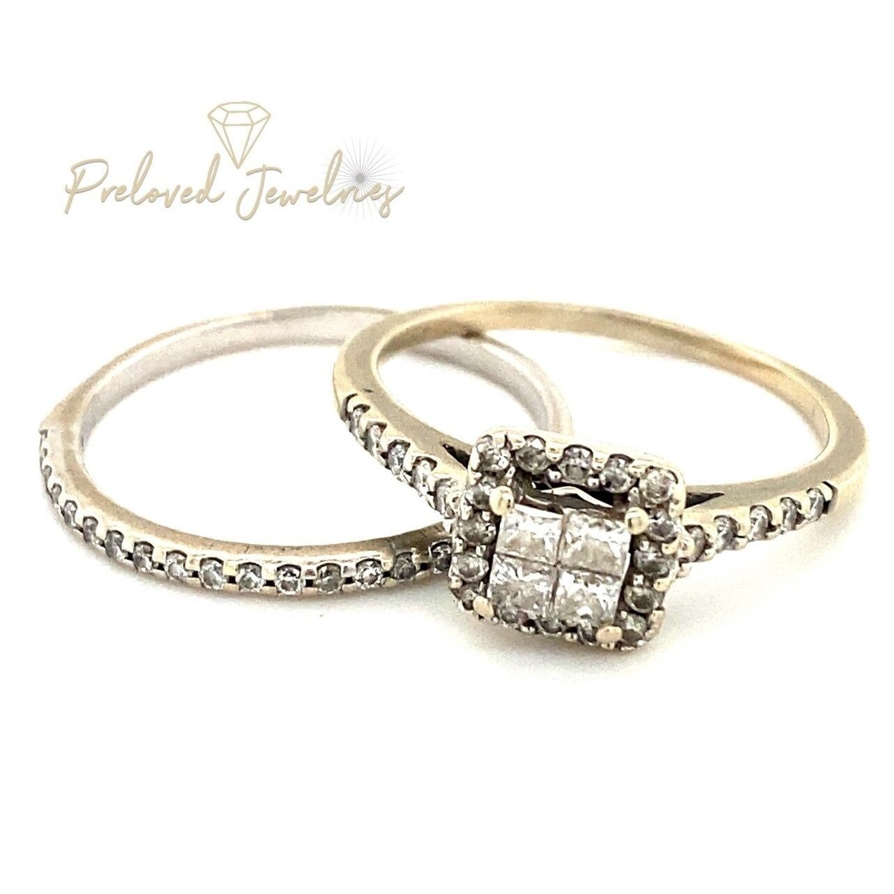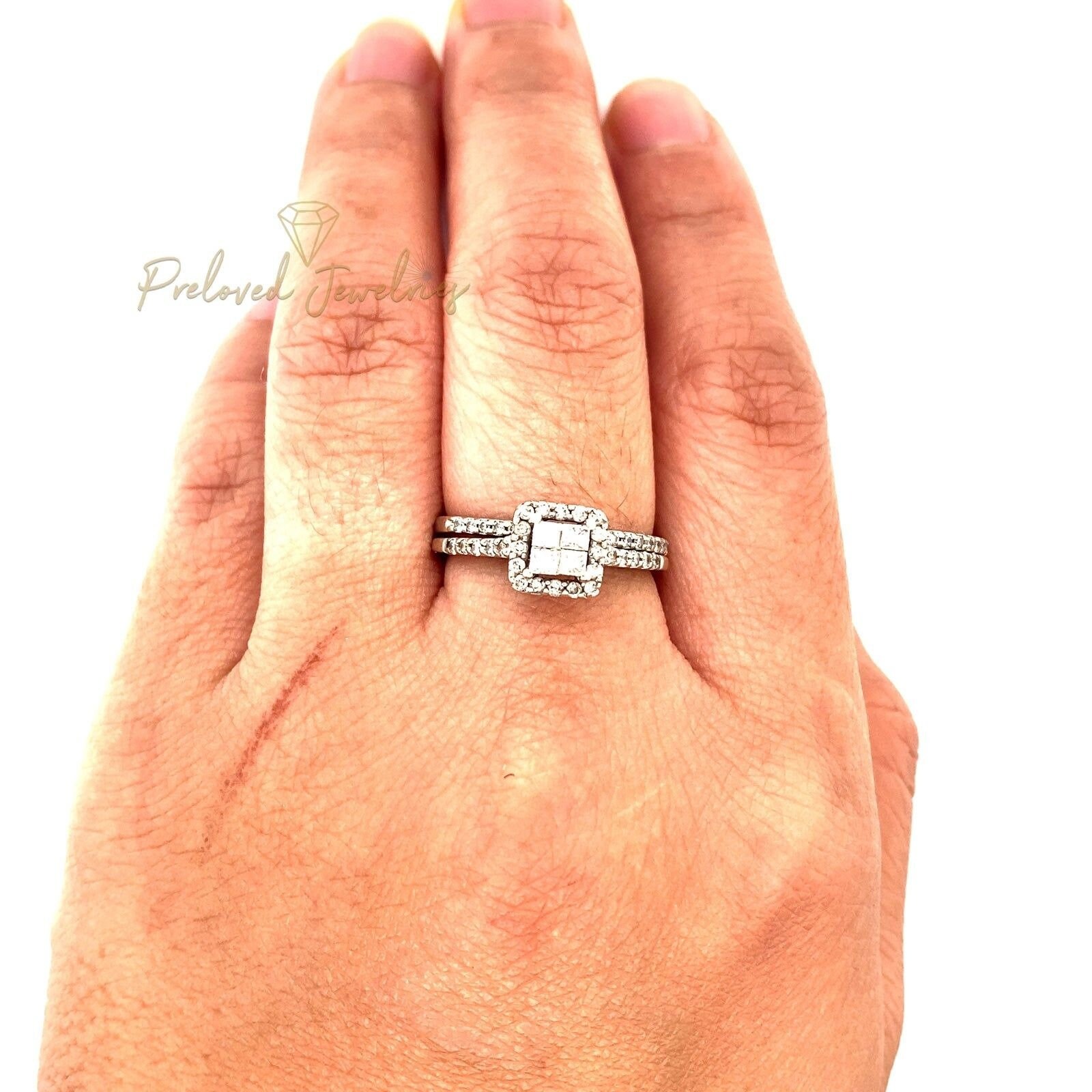 Real 14k White Gold Diamond Engagement Ring and Band Set, NOT GOLD PLATED OR GOLD FILLED.