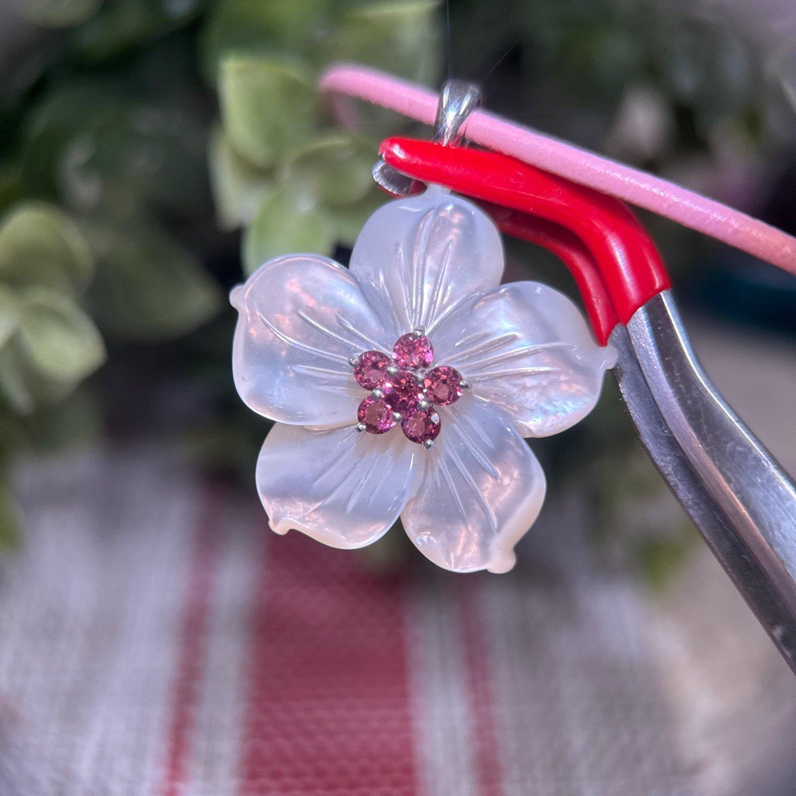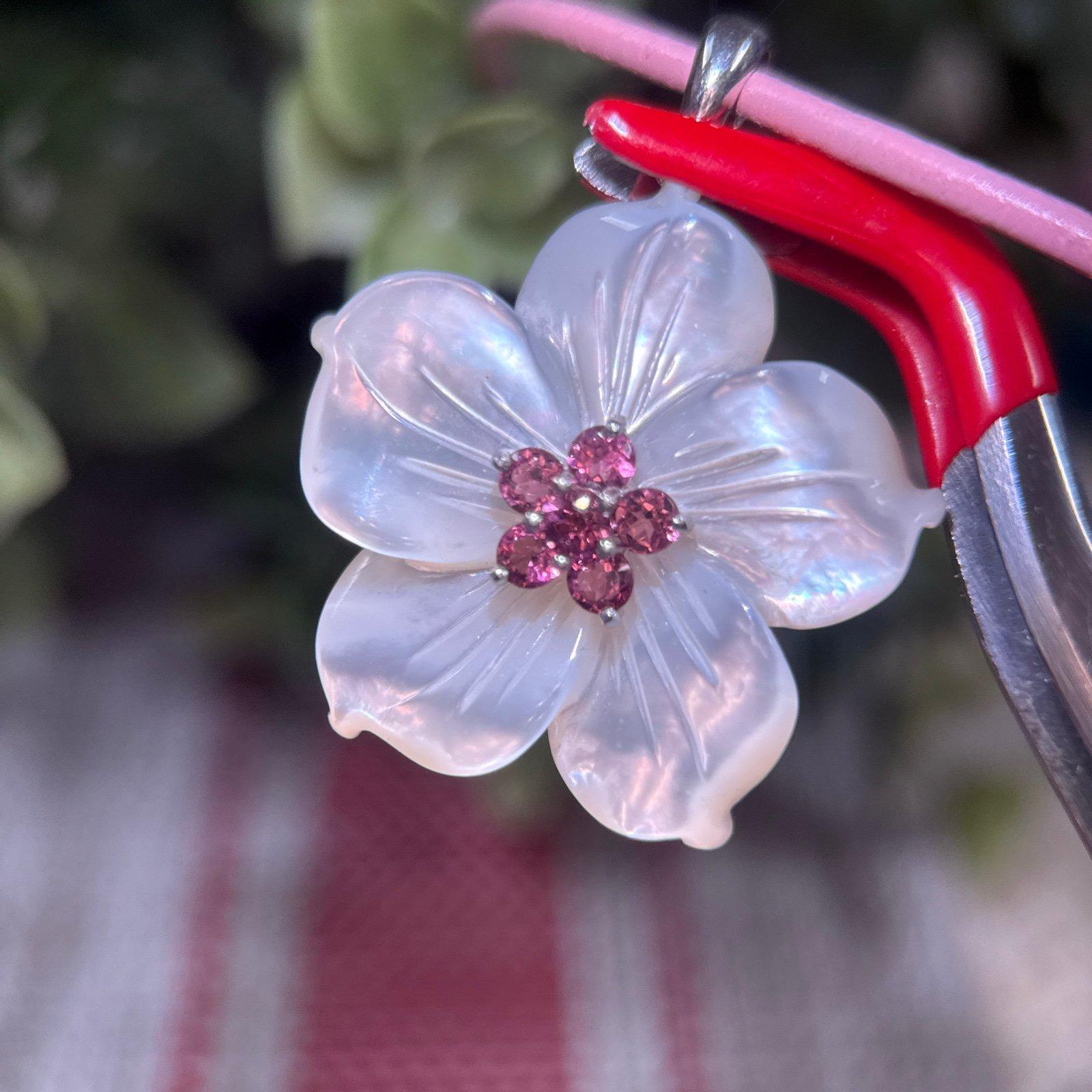 Be the first to review “14K White Gold Pink Cord Mother of Pearl/Rubies Necklace”