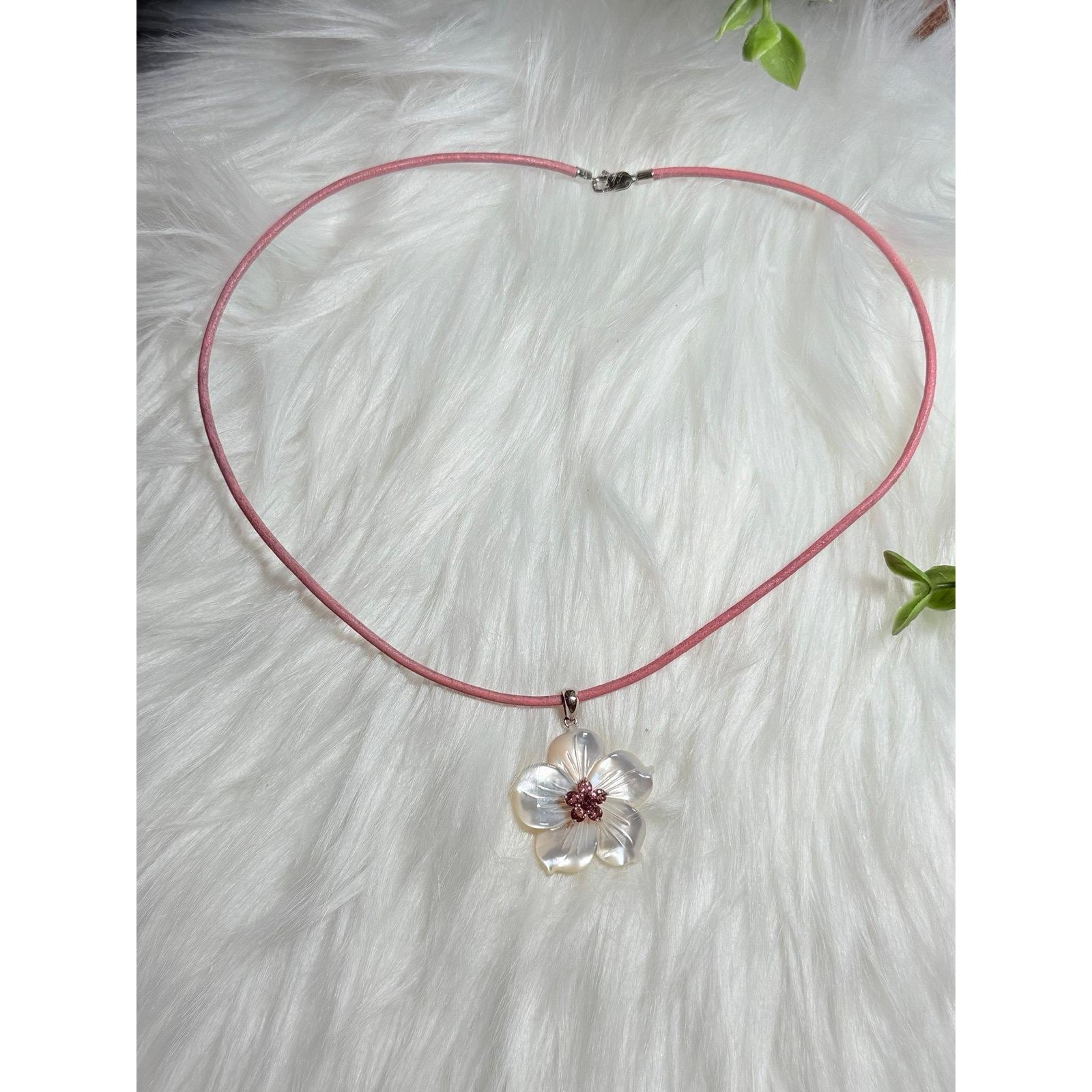 Real 14k White Gold Pink Cord Mother of Pearl/Rubies Necklace , REAL GOLD, NOT GOLD PLATED OR GOLD FILLED.