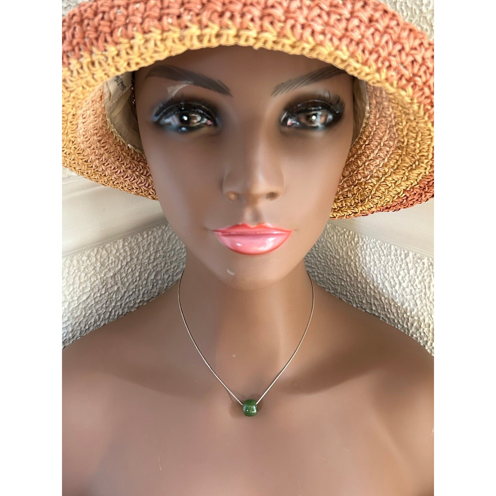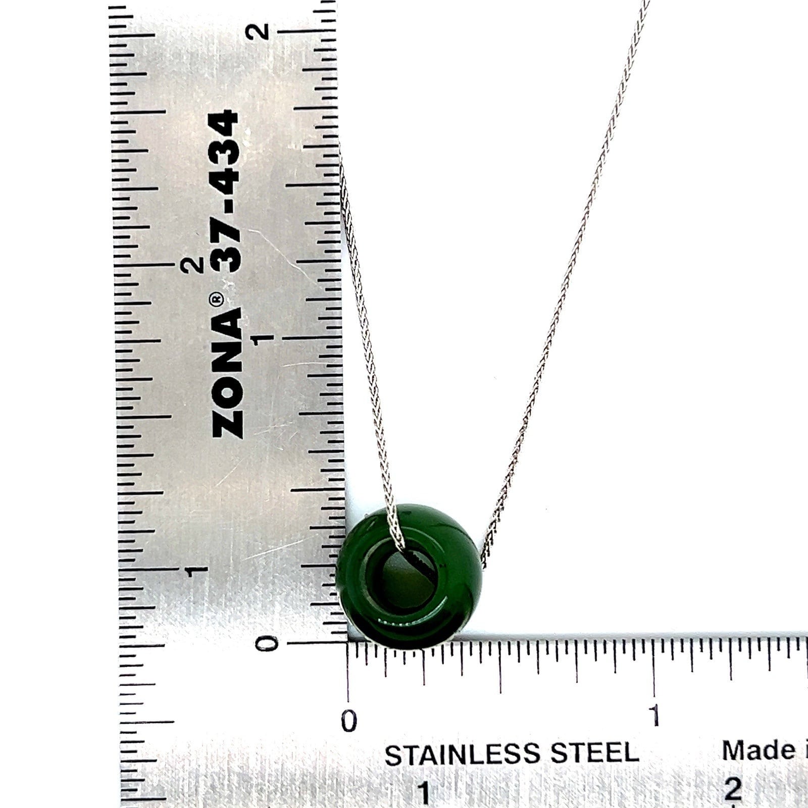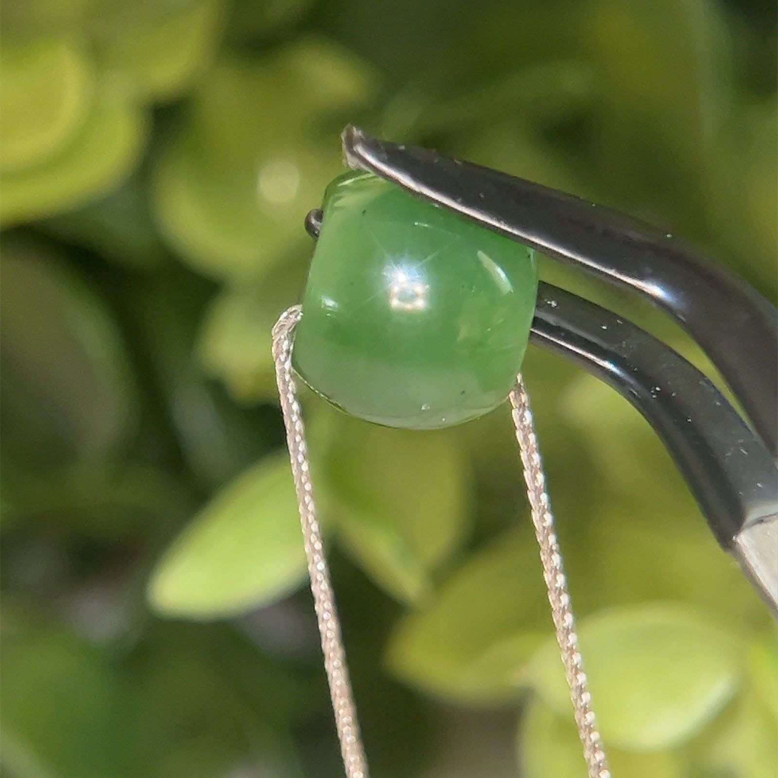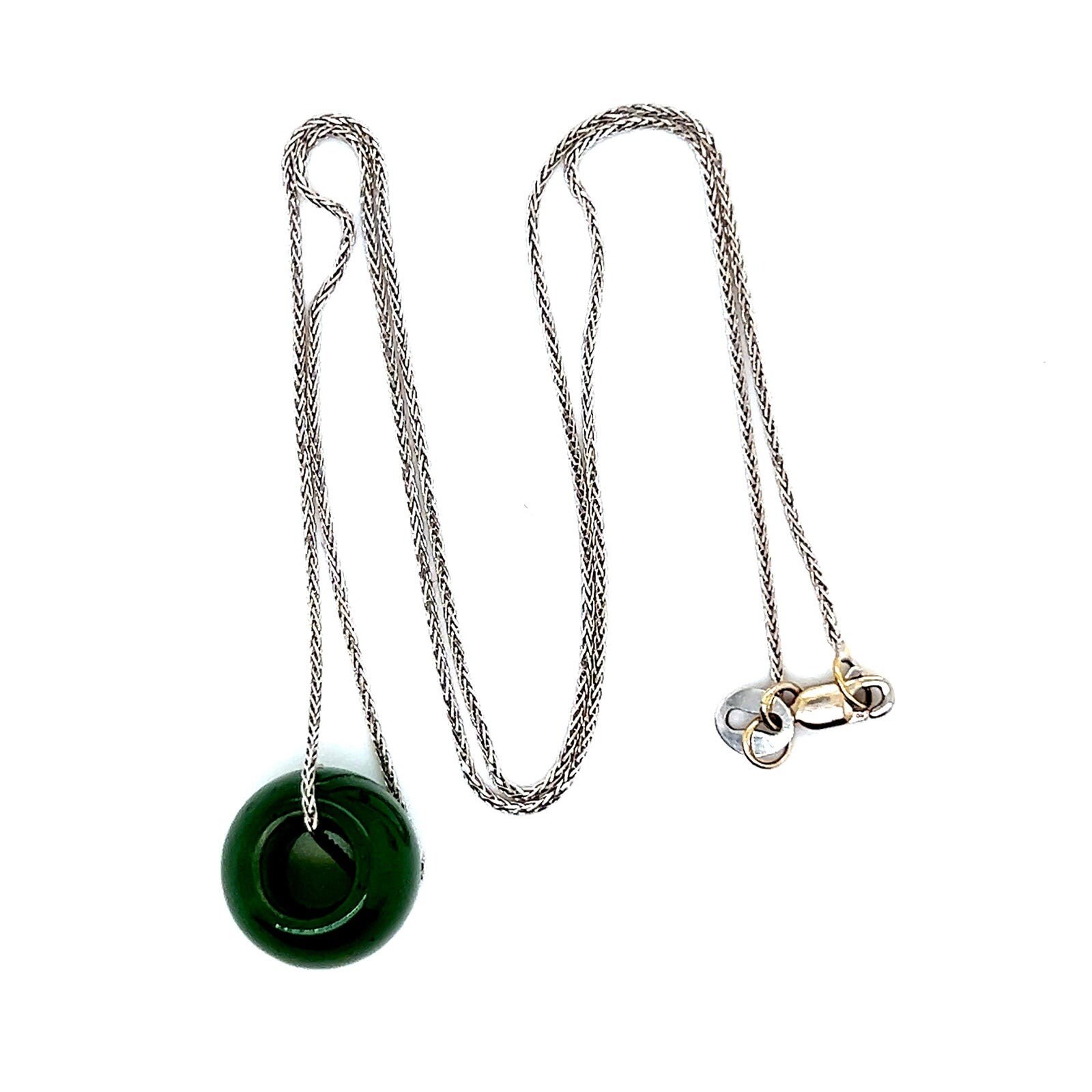 Real 18k White Gold Chain with Jade Barrel Pendant, NOT GOLD PLATED OR GOLD FILLED.