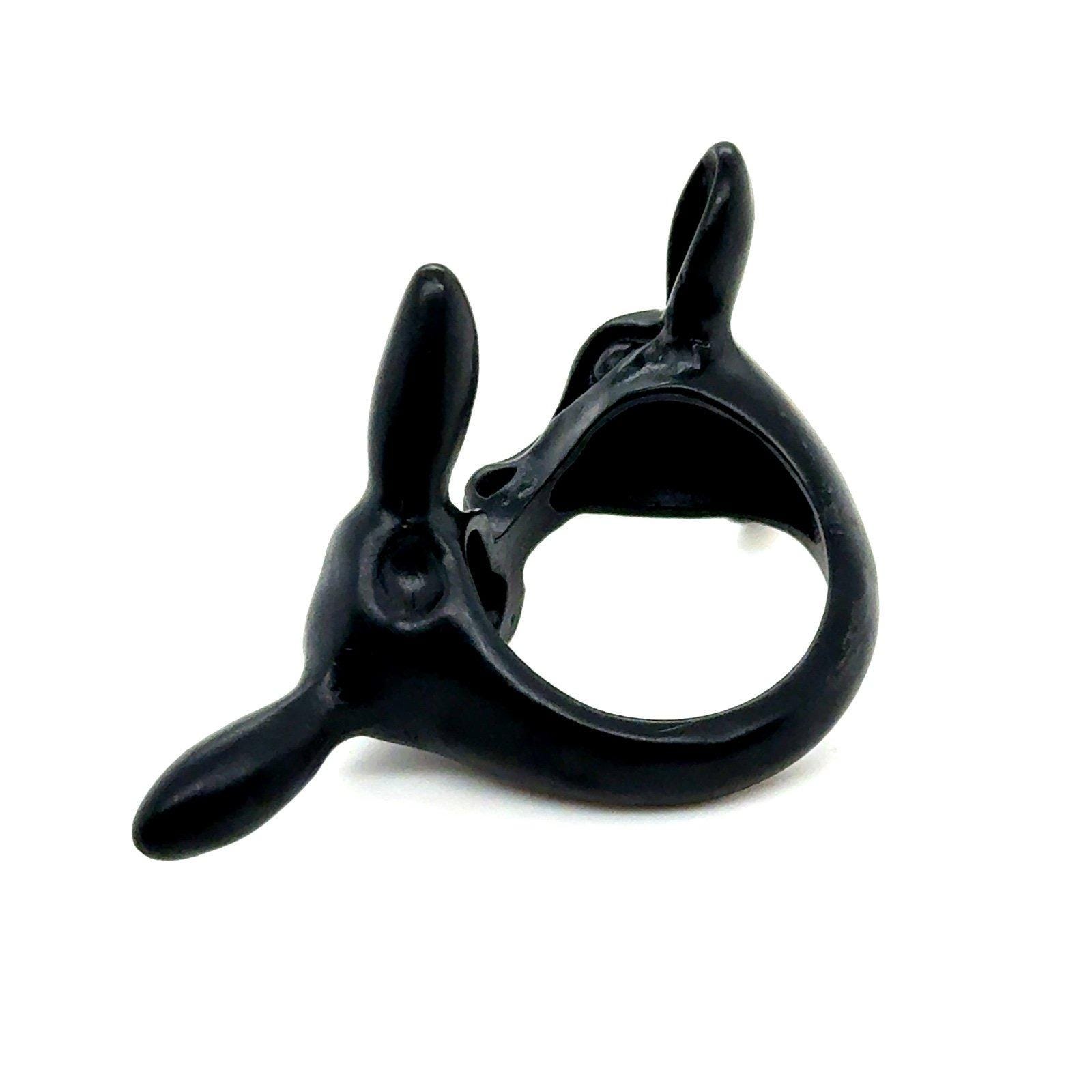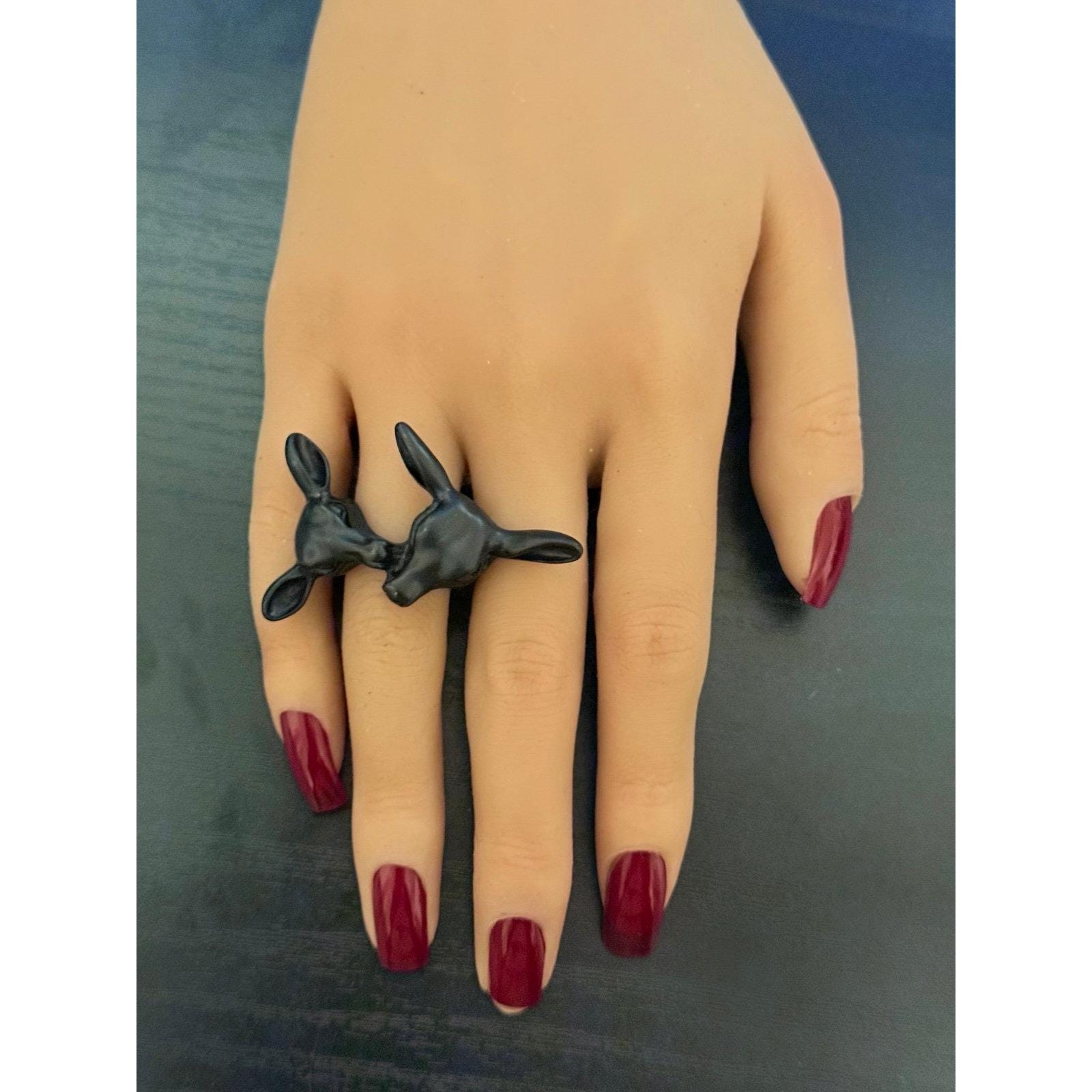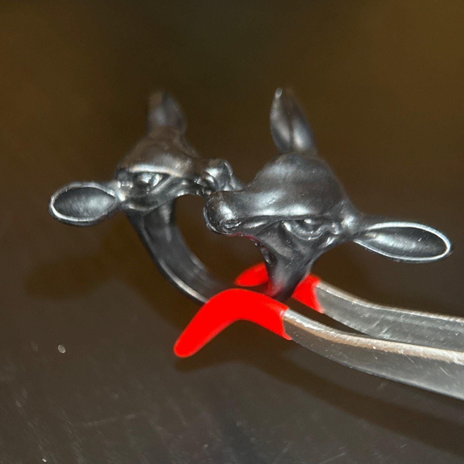 Unique and cool 2 kissing dear black Ring Ring is a size 9 Excellent condition