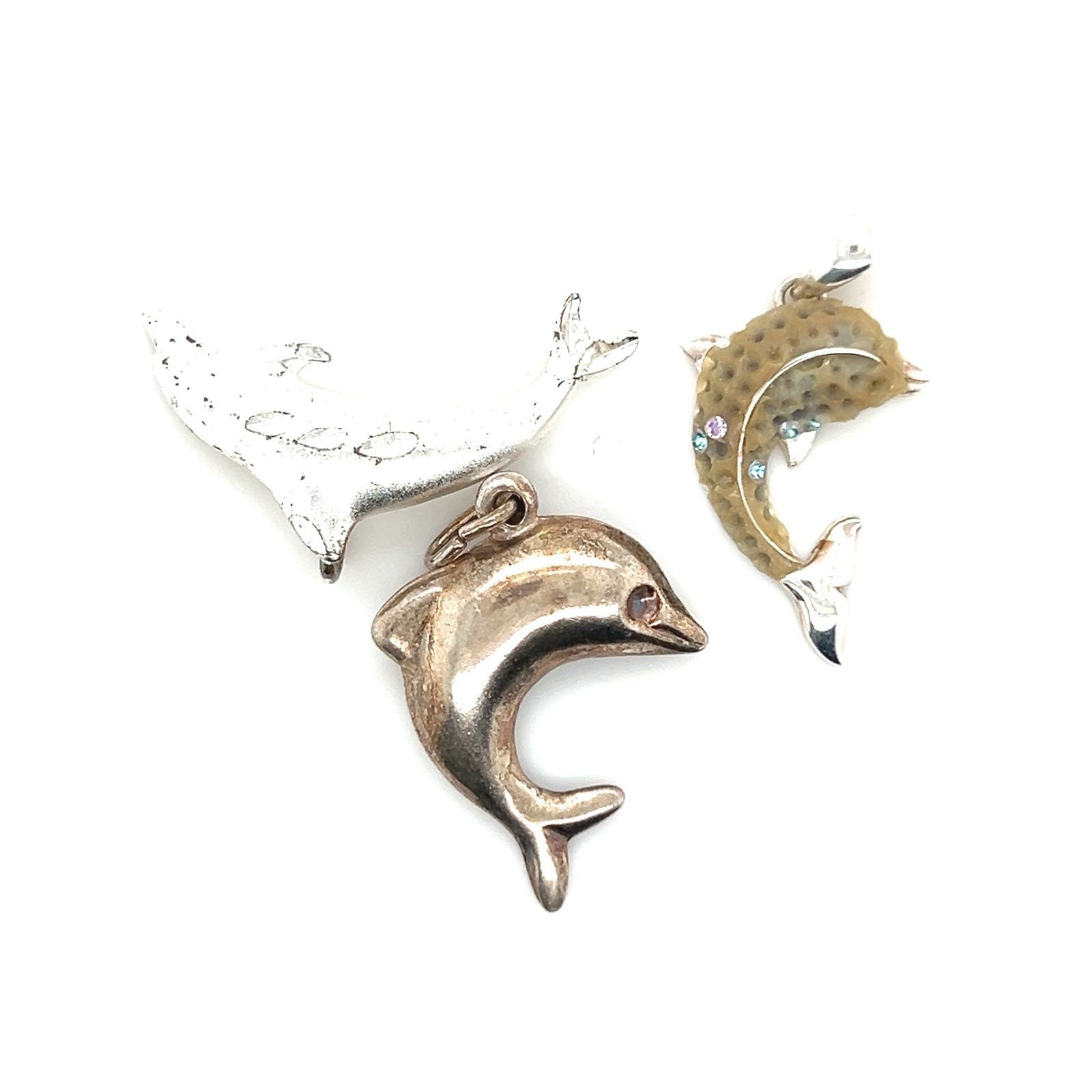 Sterling Silver 925 Dolphin Pendant Needs cleaning Last photo for sizes Sold as is