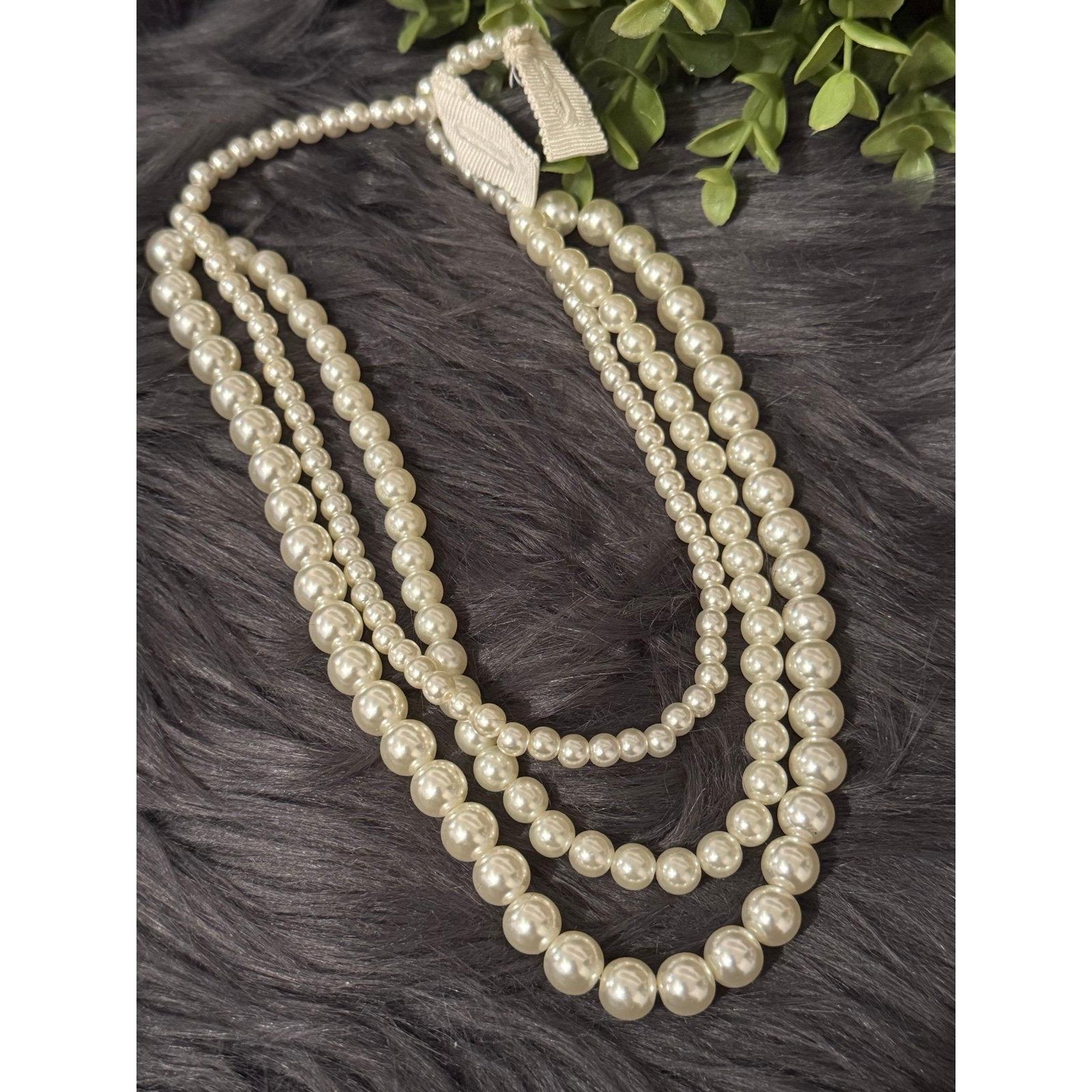 *3-Strand Pearls Necklace *Costume jewelry * Beautiful piece *19” L *Faux Pearls *Preowned