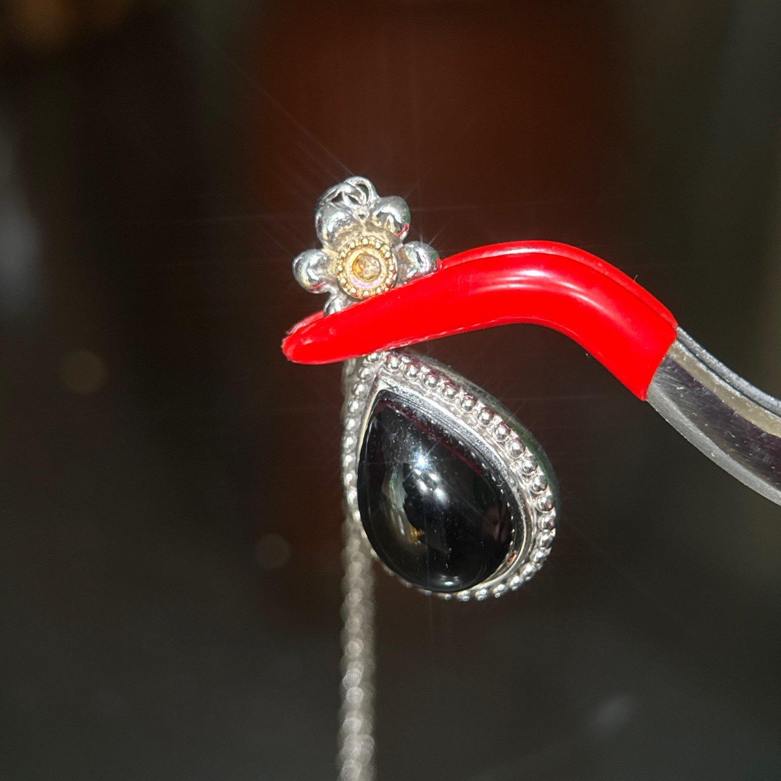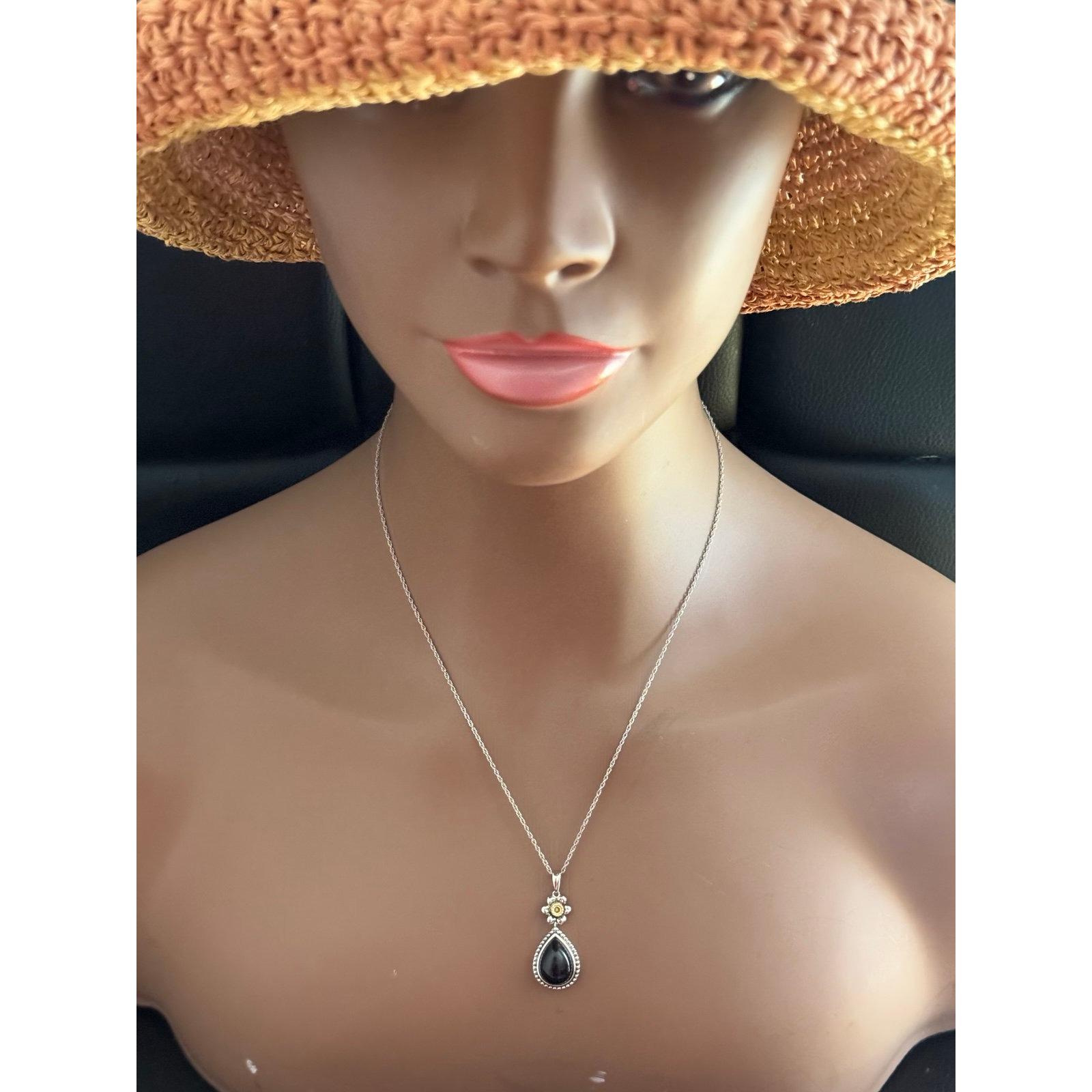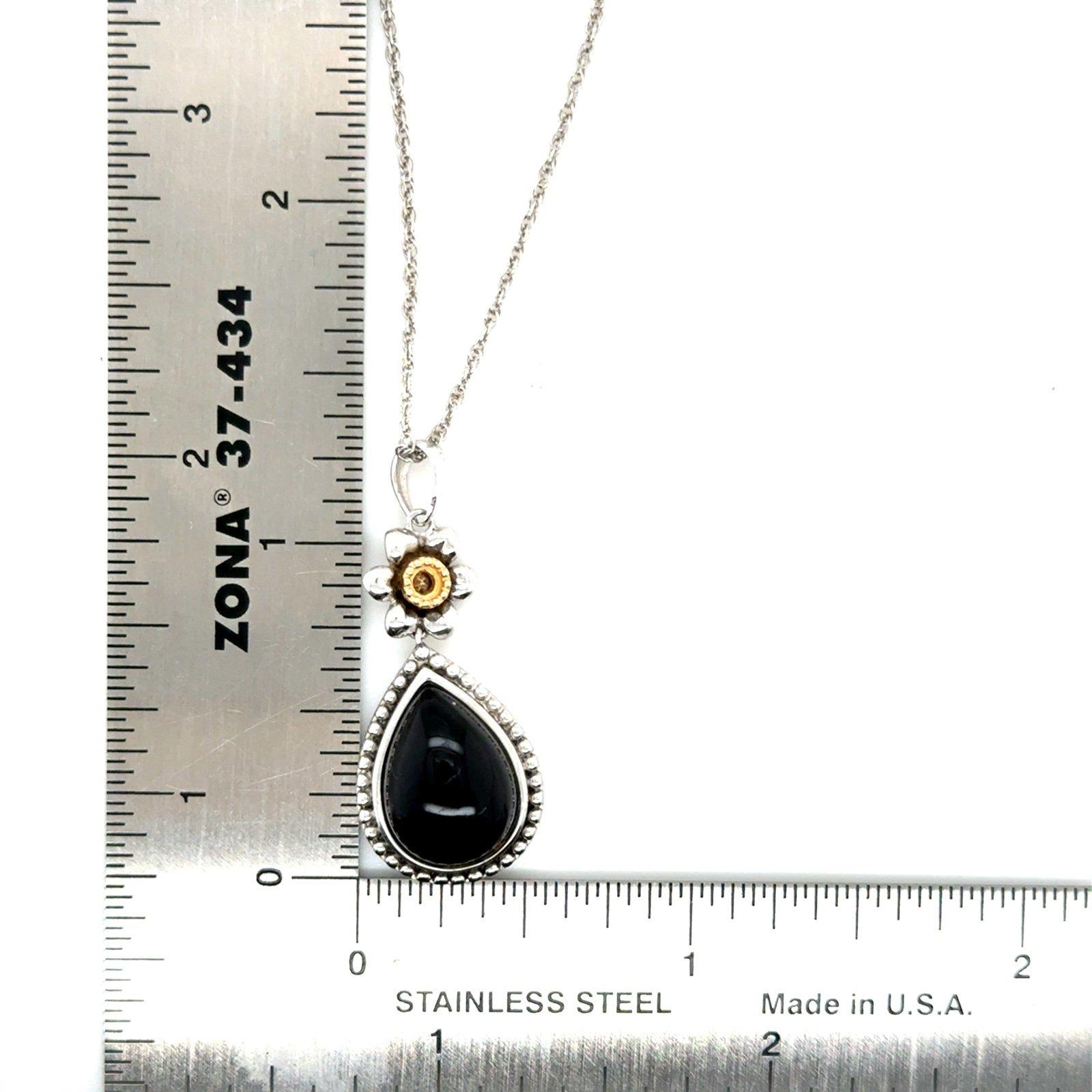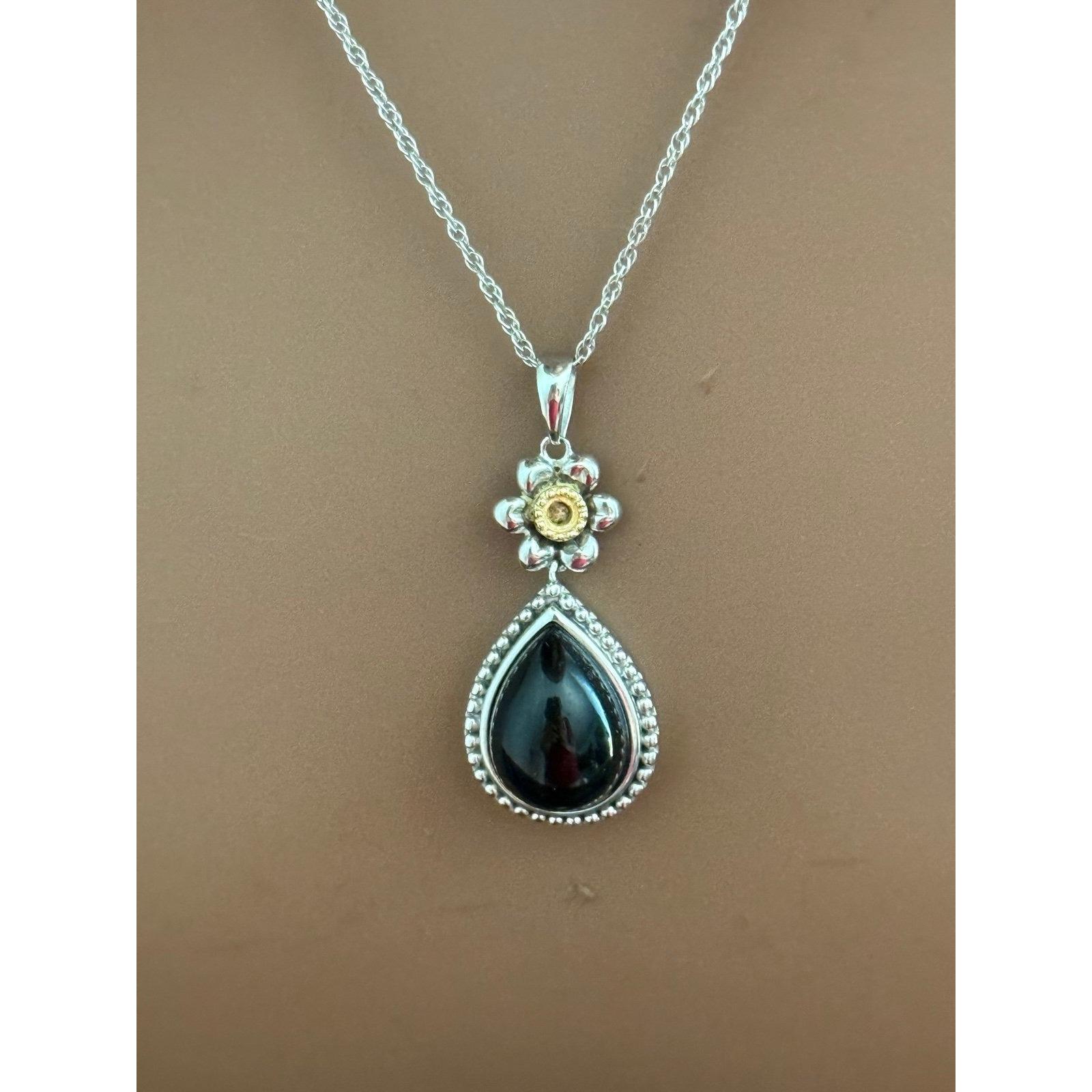Sterling Silver 925 and 14k Gold Onyx Necklace.