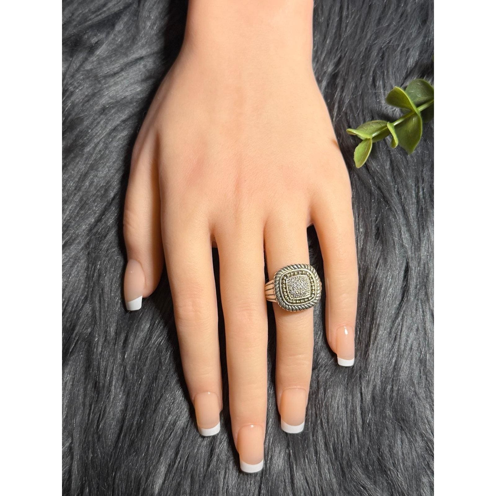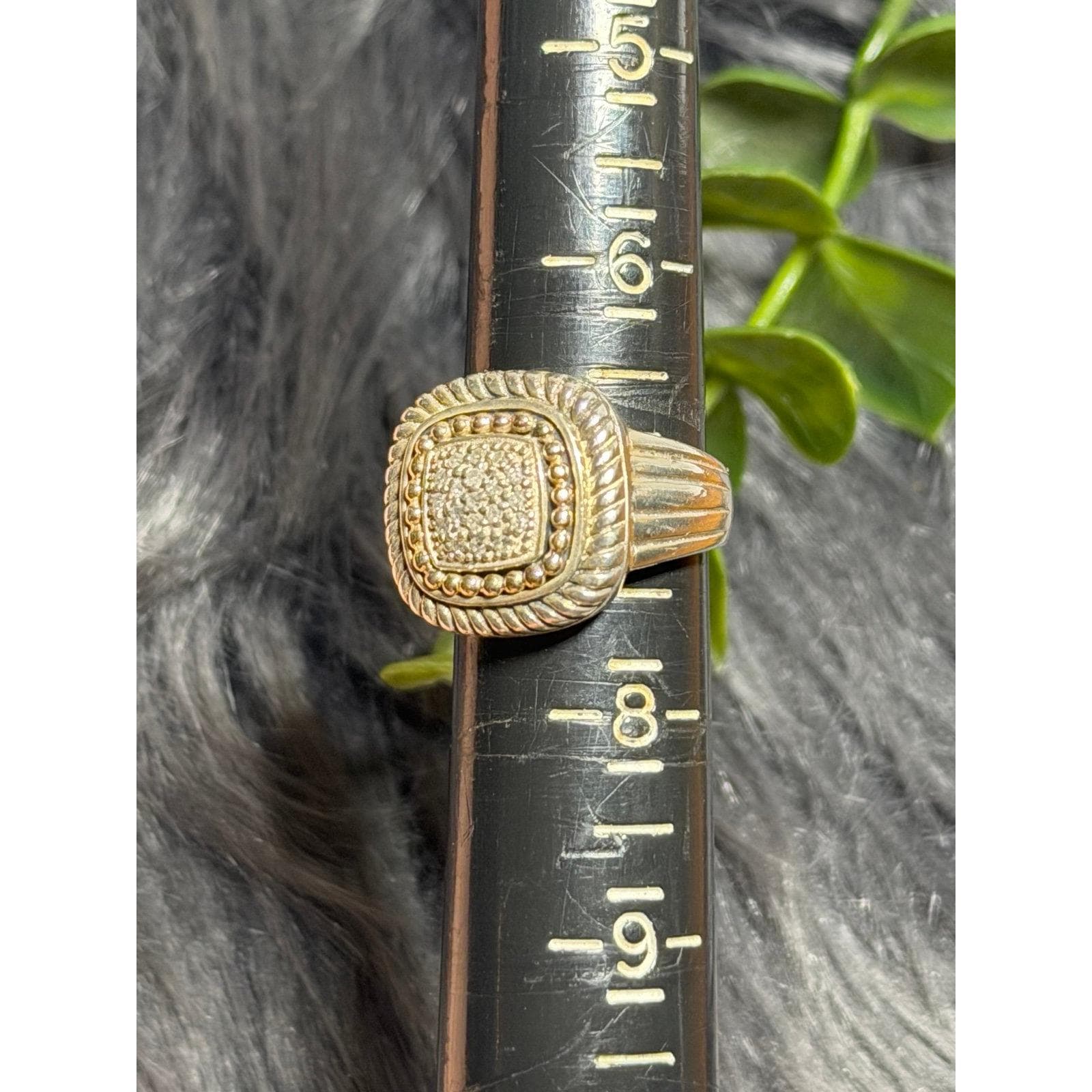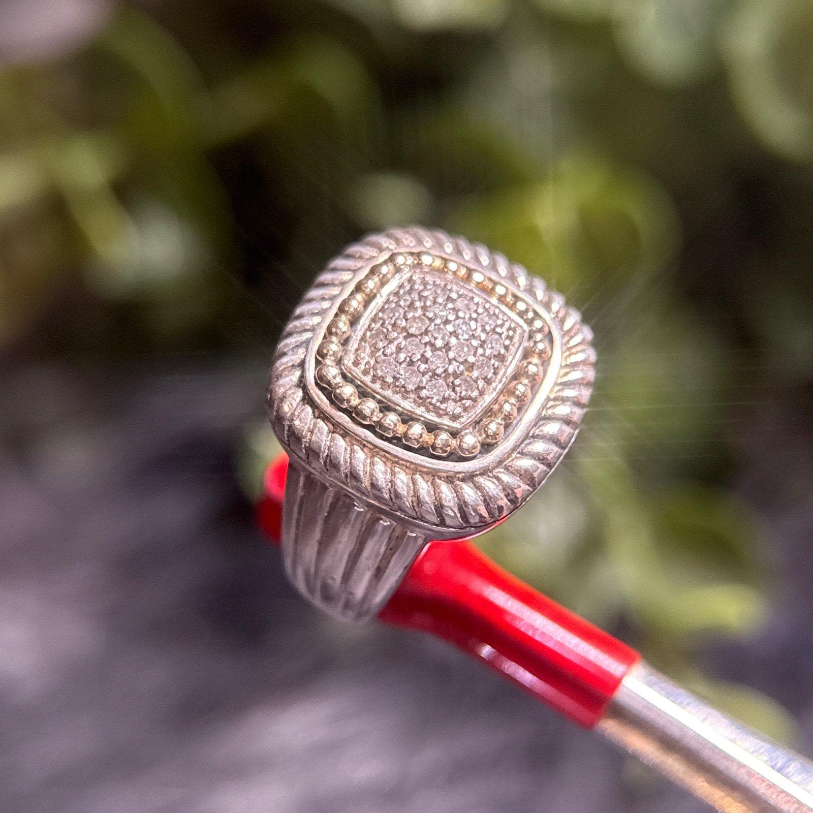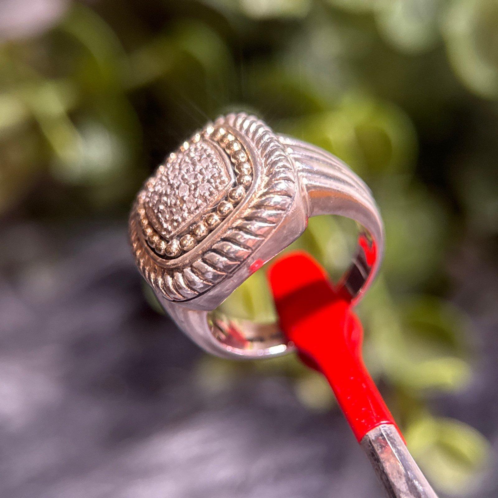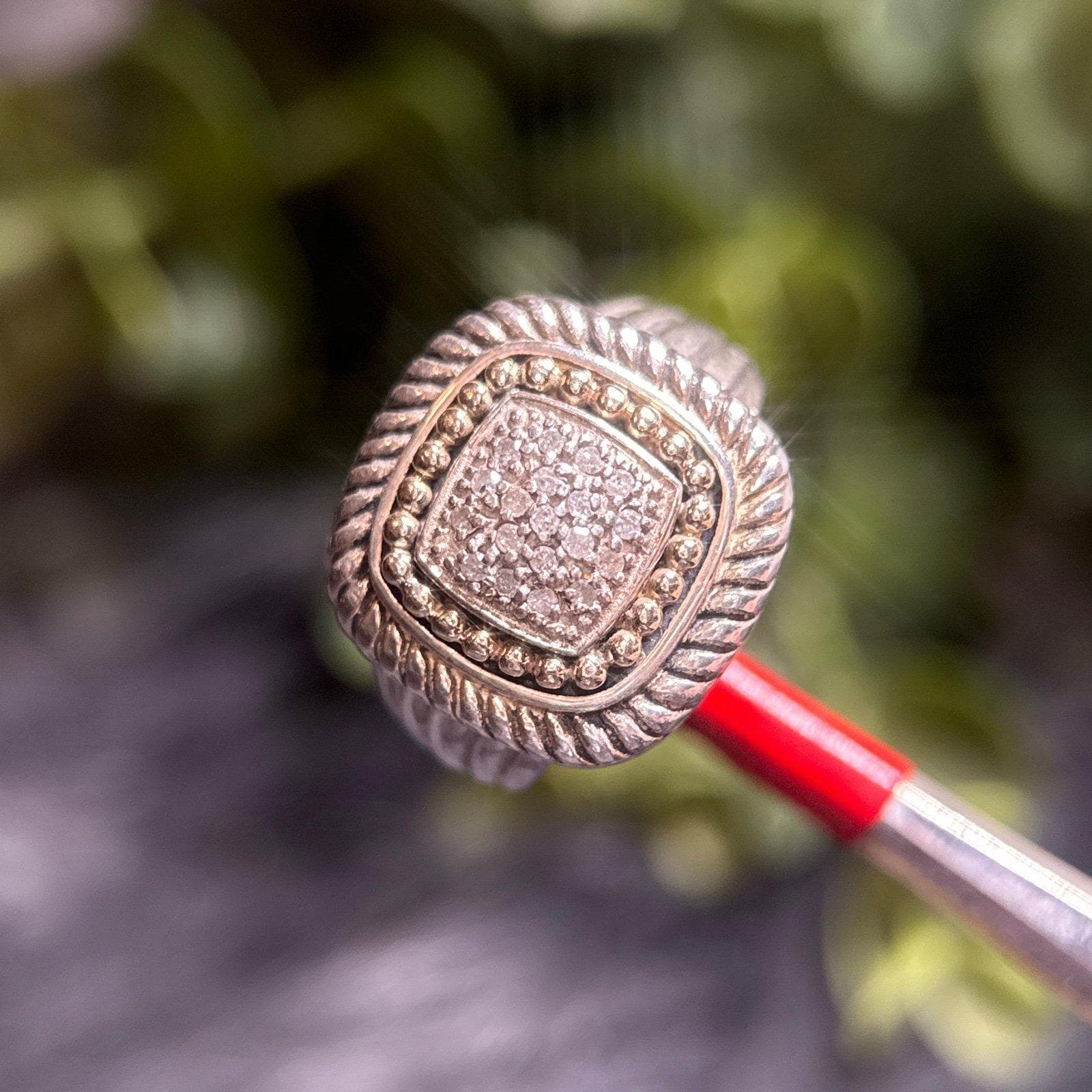 Sterling Silver 925 and 14K Gold Pave Diamonds Ring. Diamonds are real.