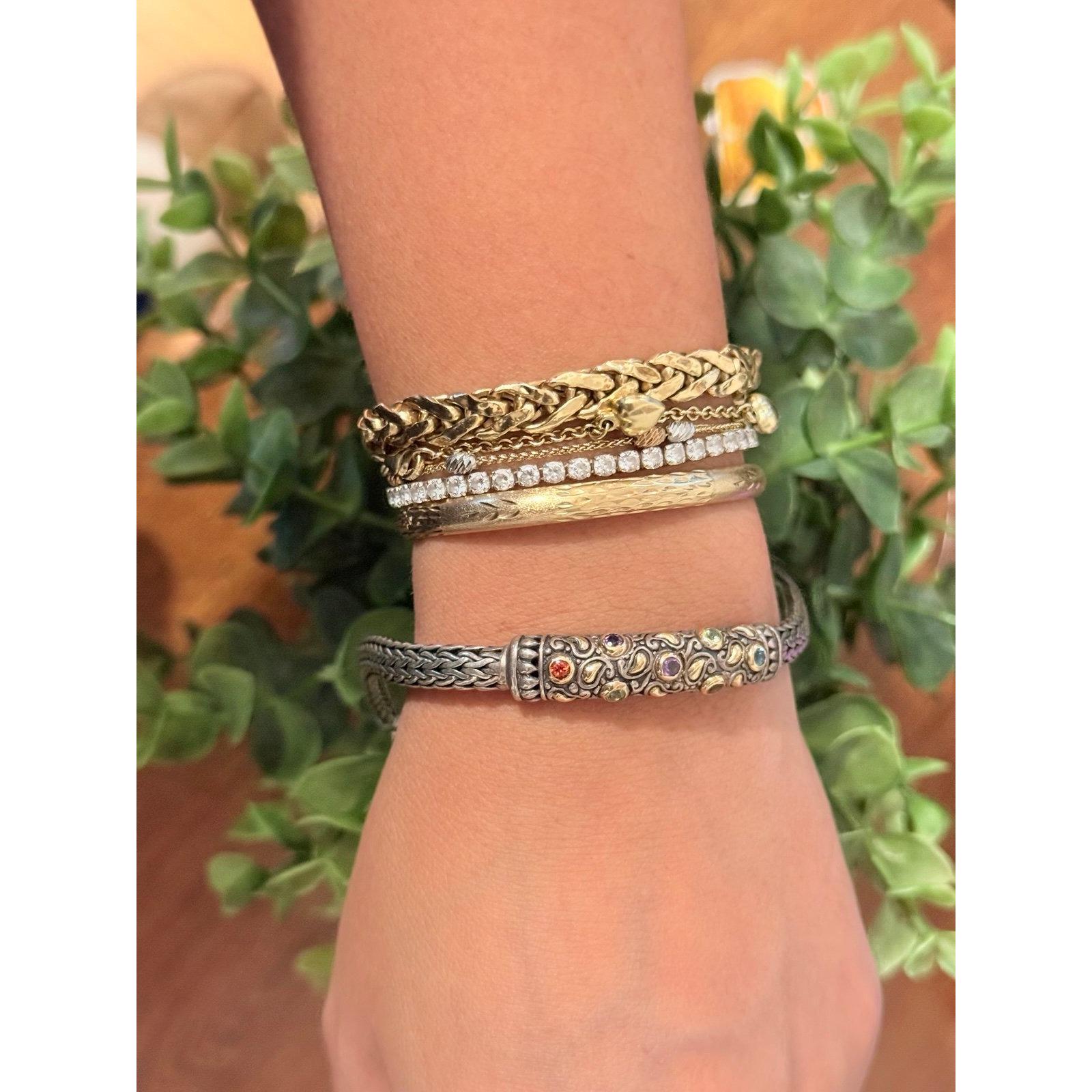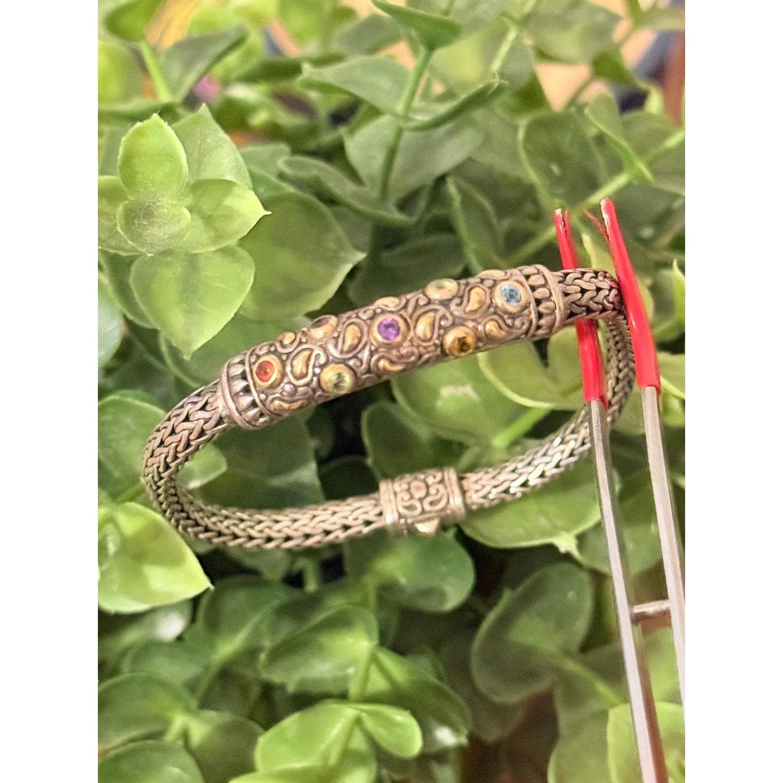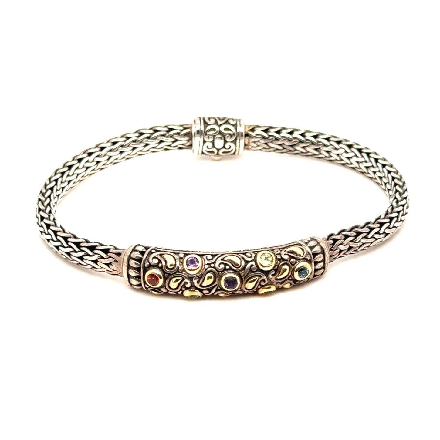 Sterling Silver 925 and 18K Gold Accent Multi Stones Wheat Bracelet.