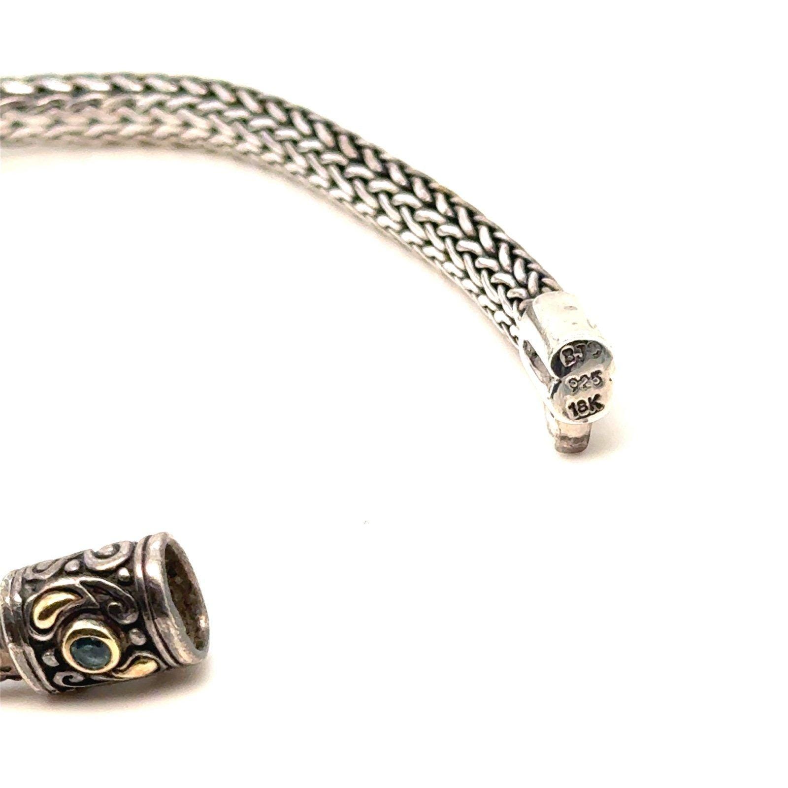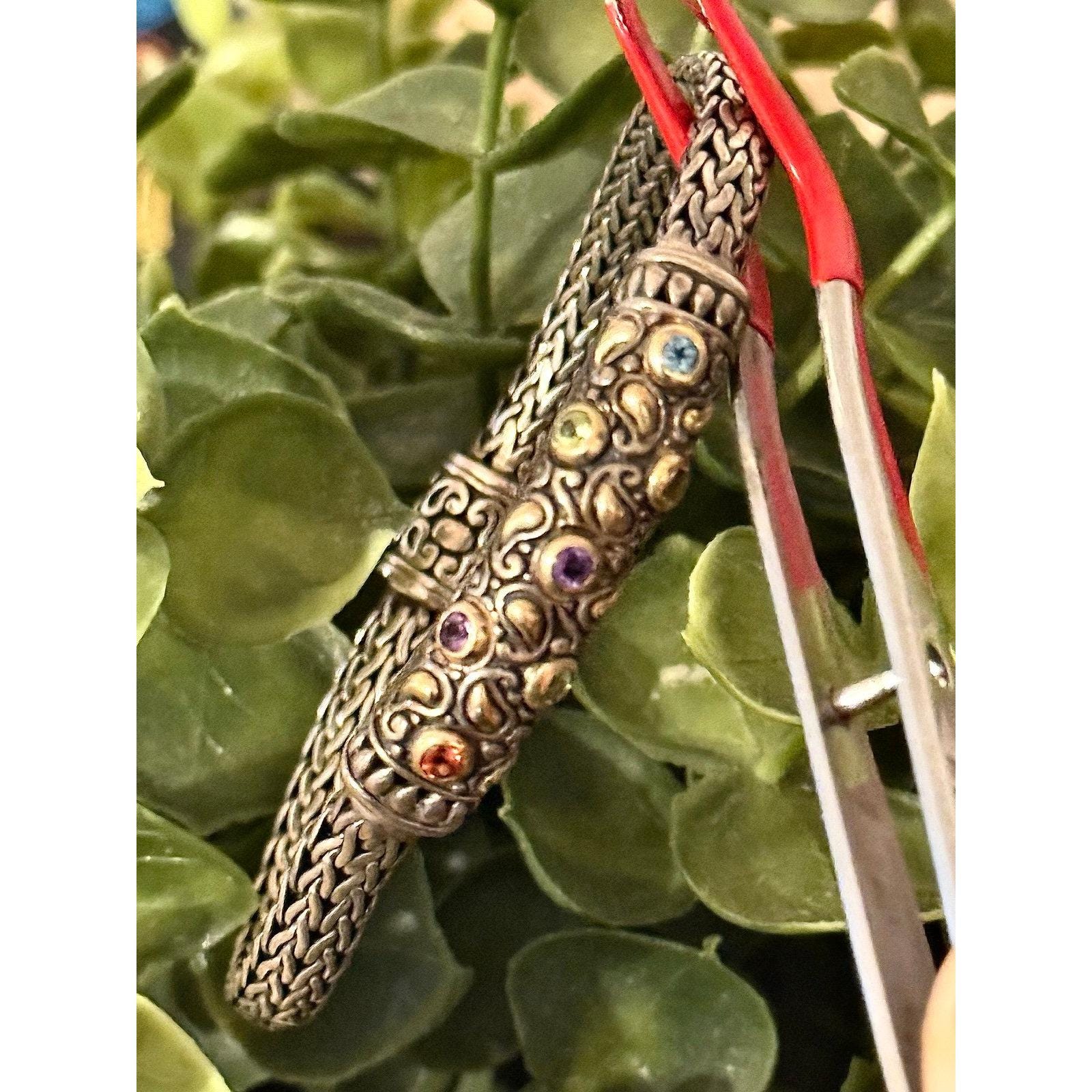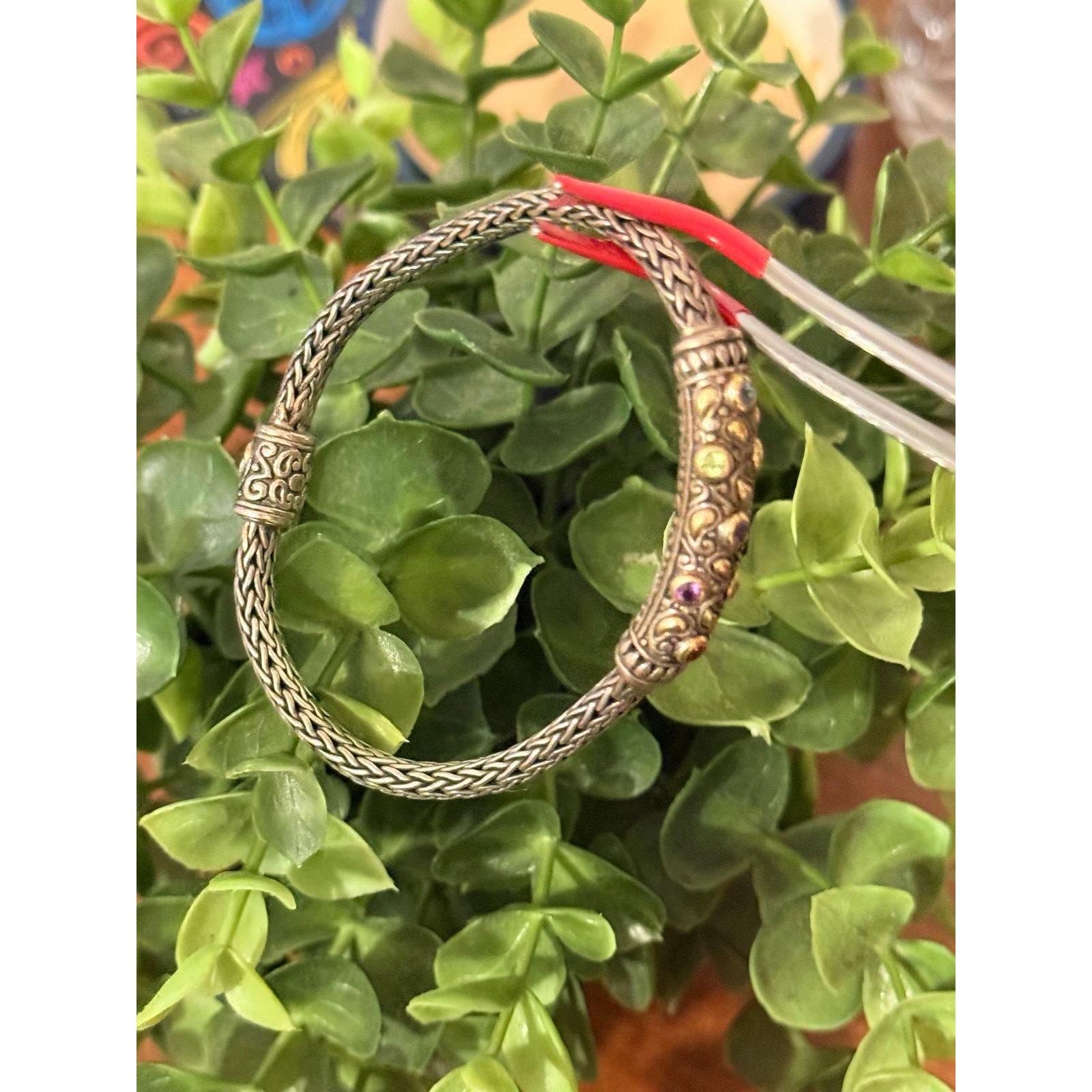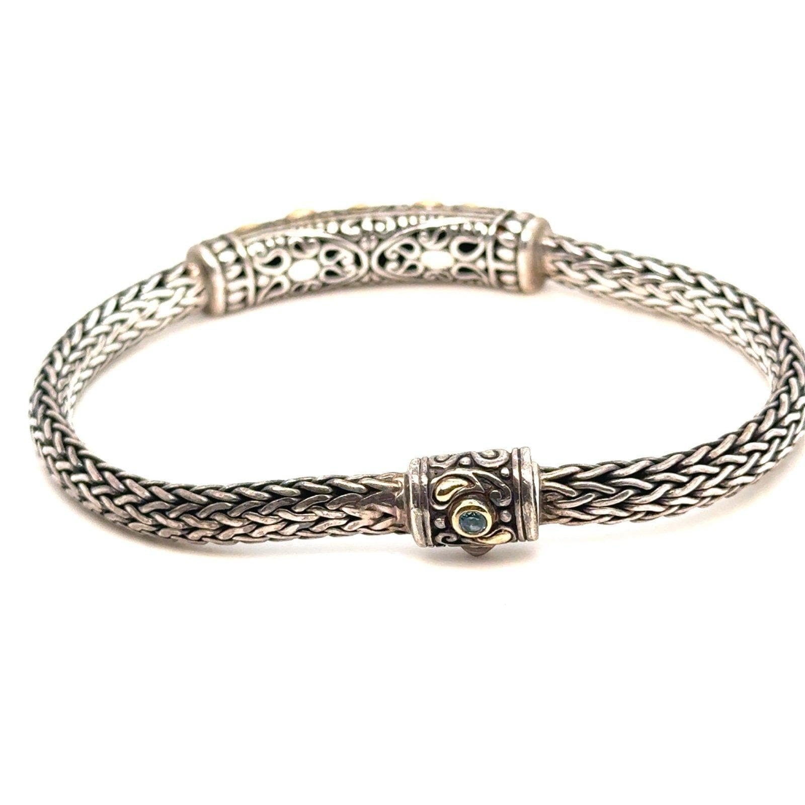 Sterling Silver 925 and 18K Gold Accent Multi Stones Wheat Bracelet.