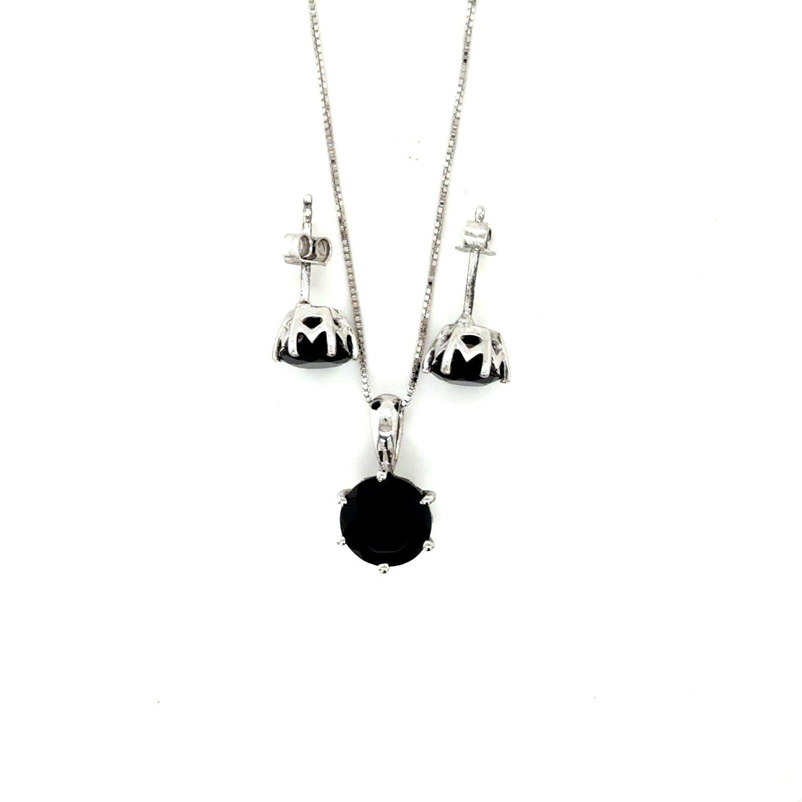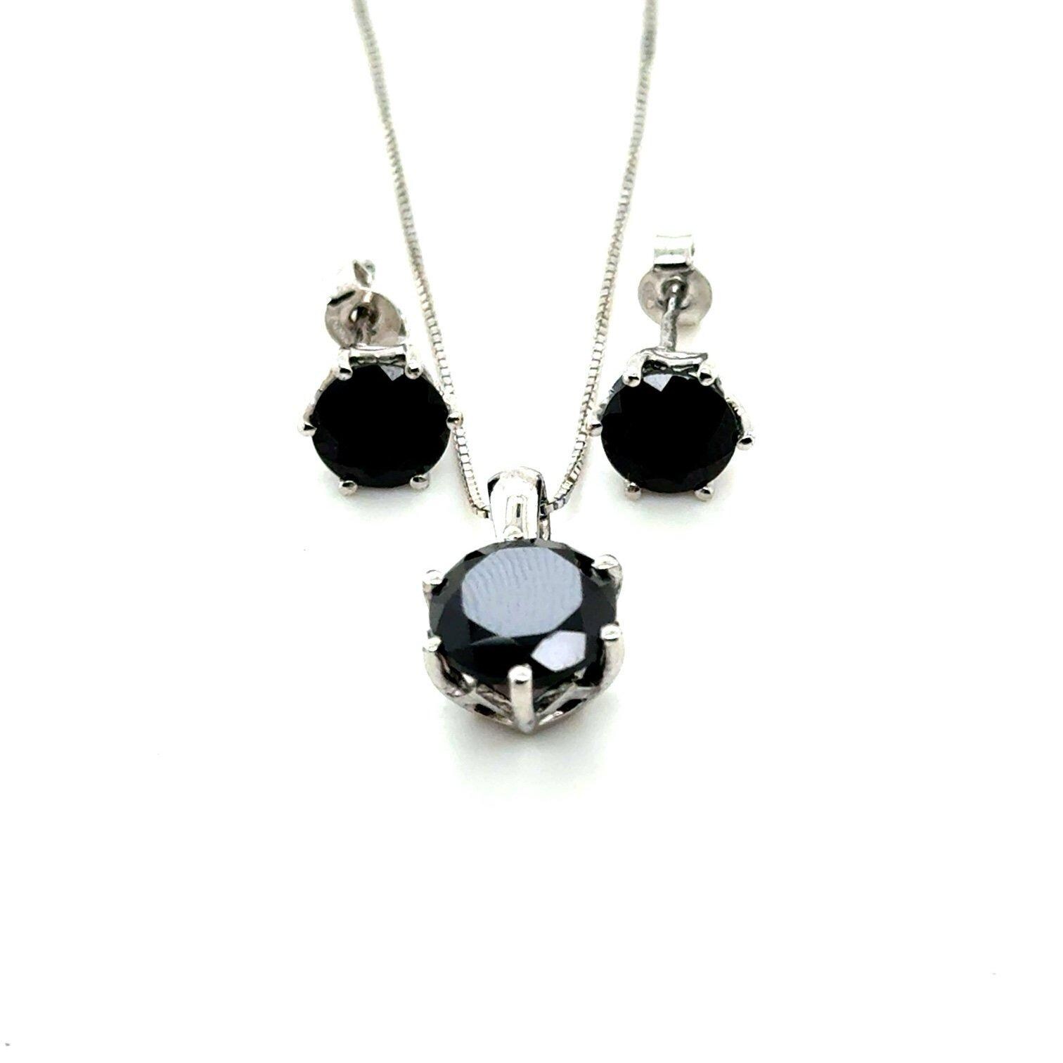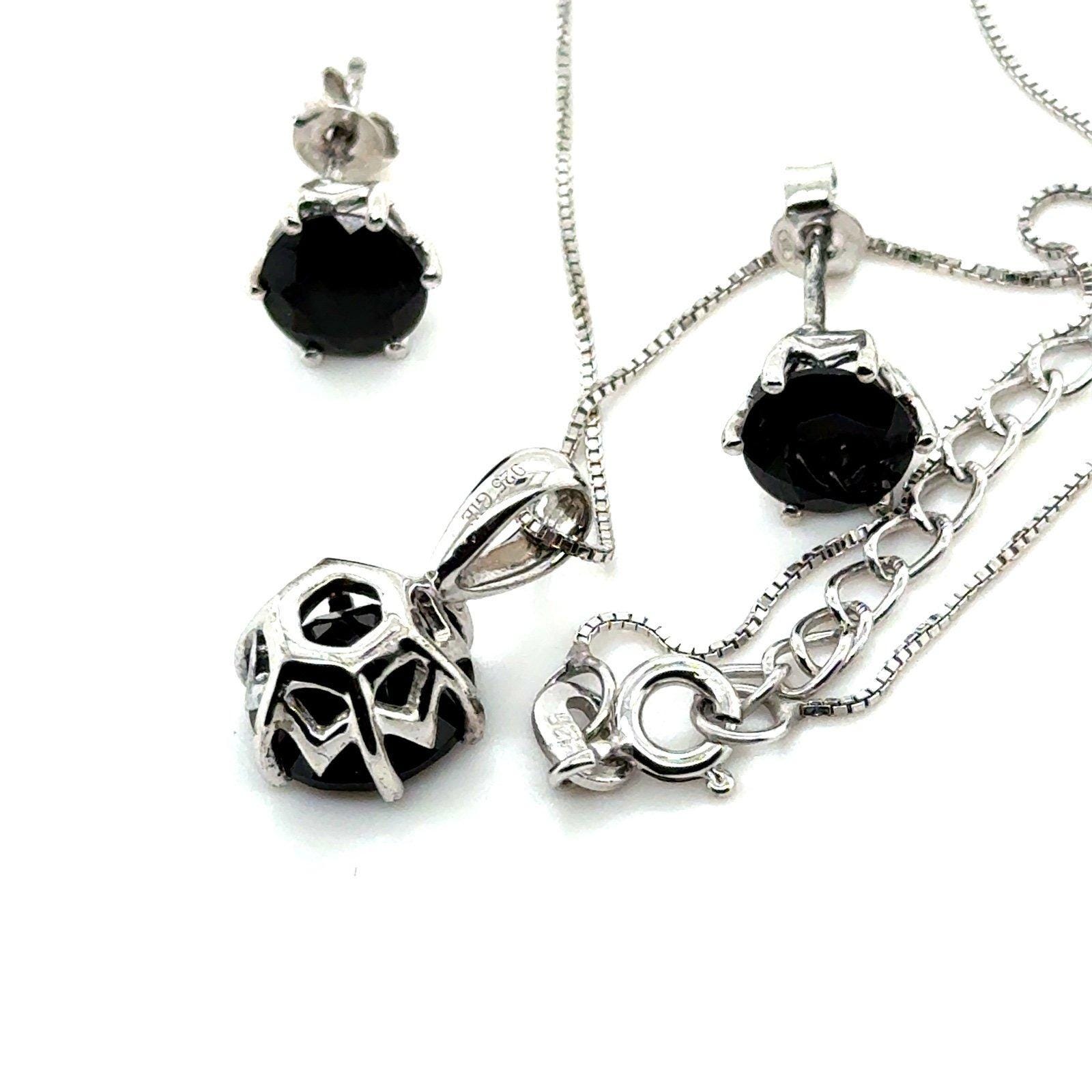 Sterling Silver 925 Black Stone Stud/Necklace Set.