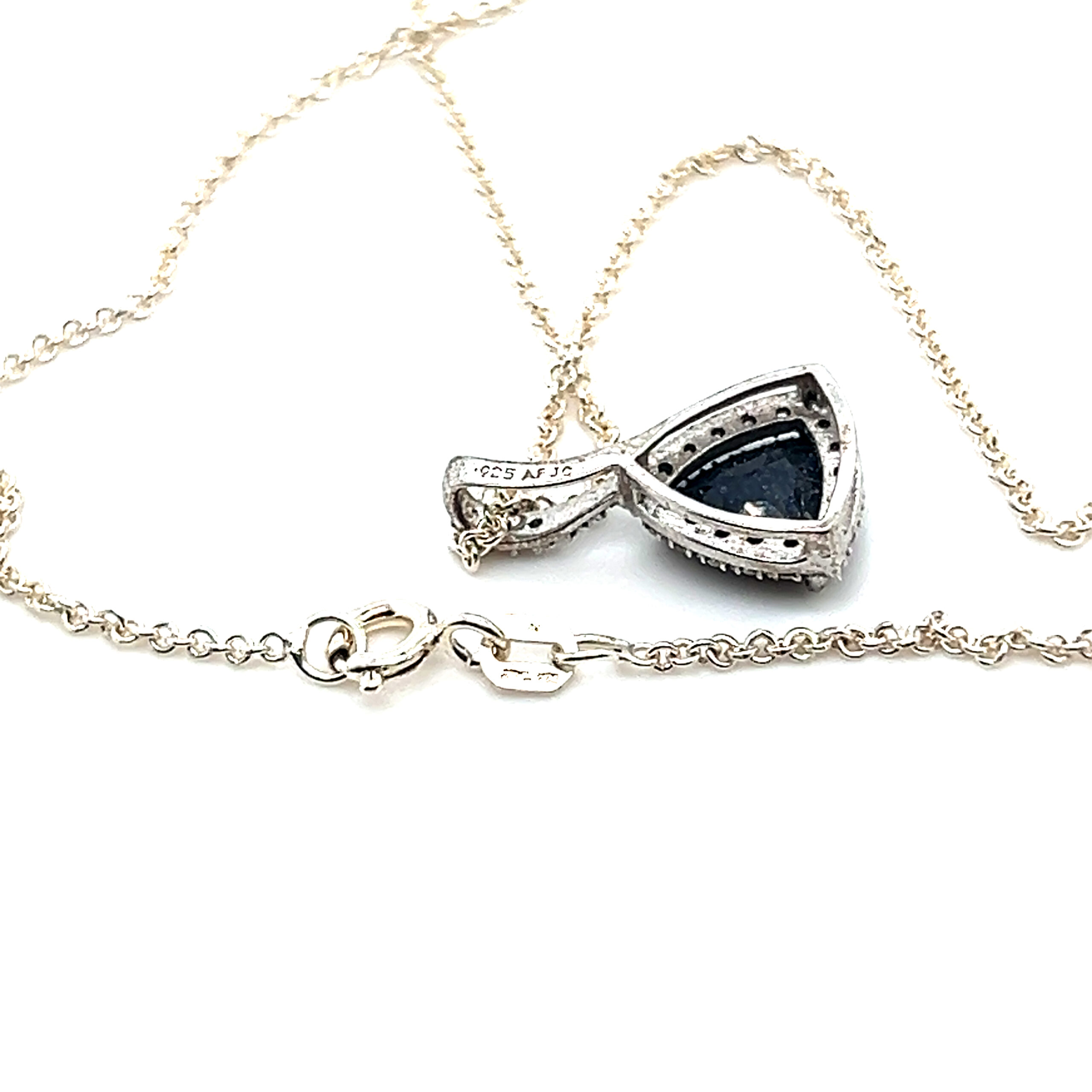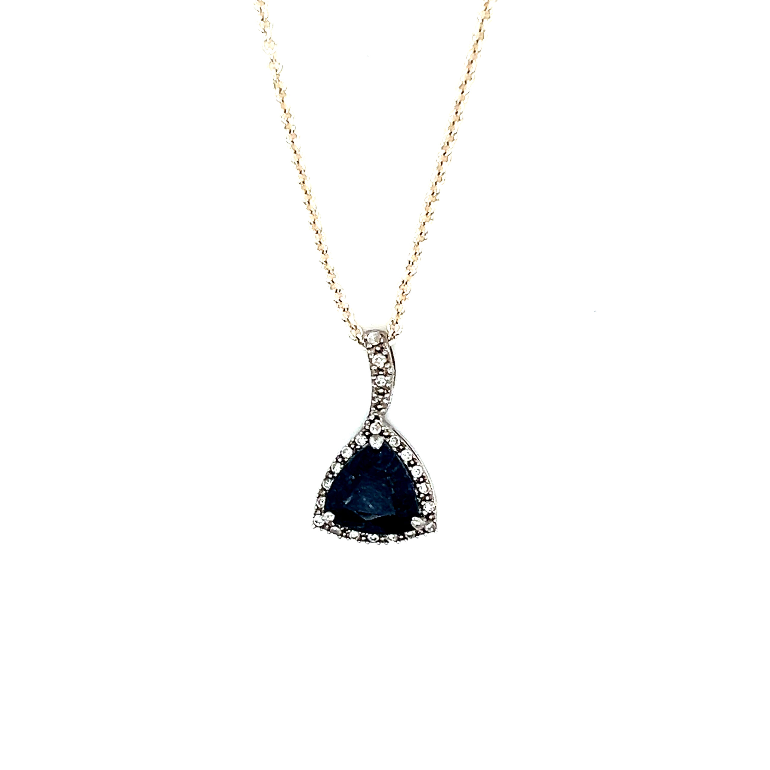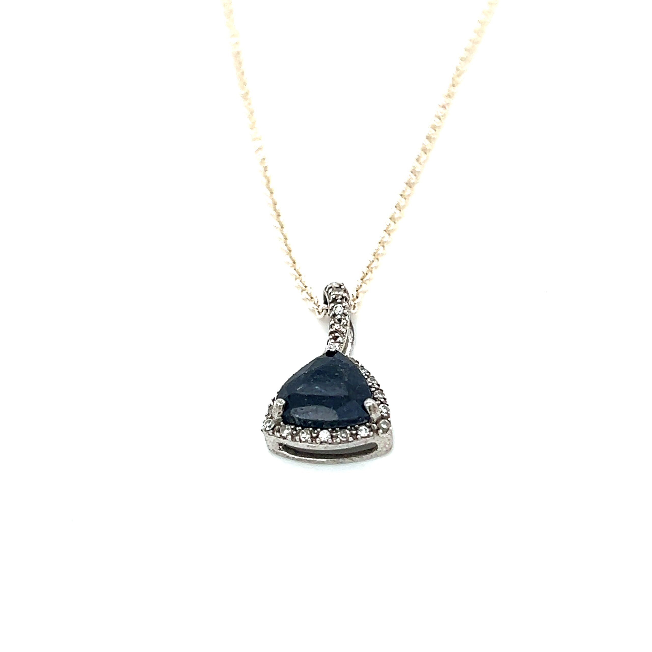 Sterling Silver Blue Sapphire and Cz Necklace