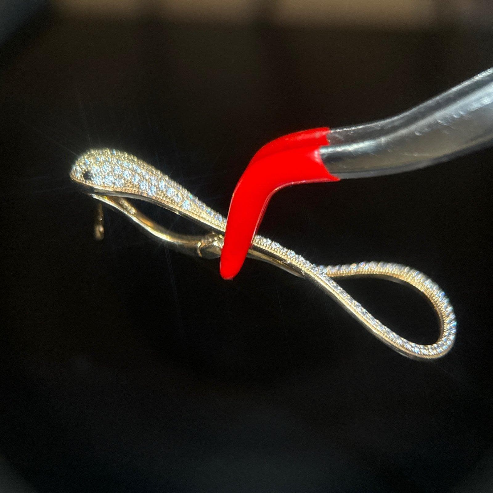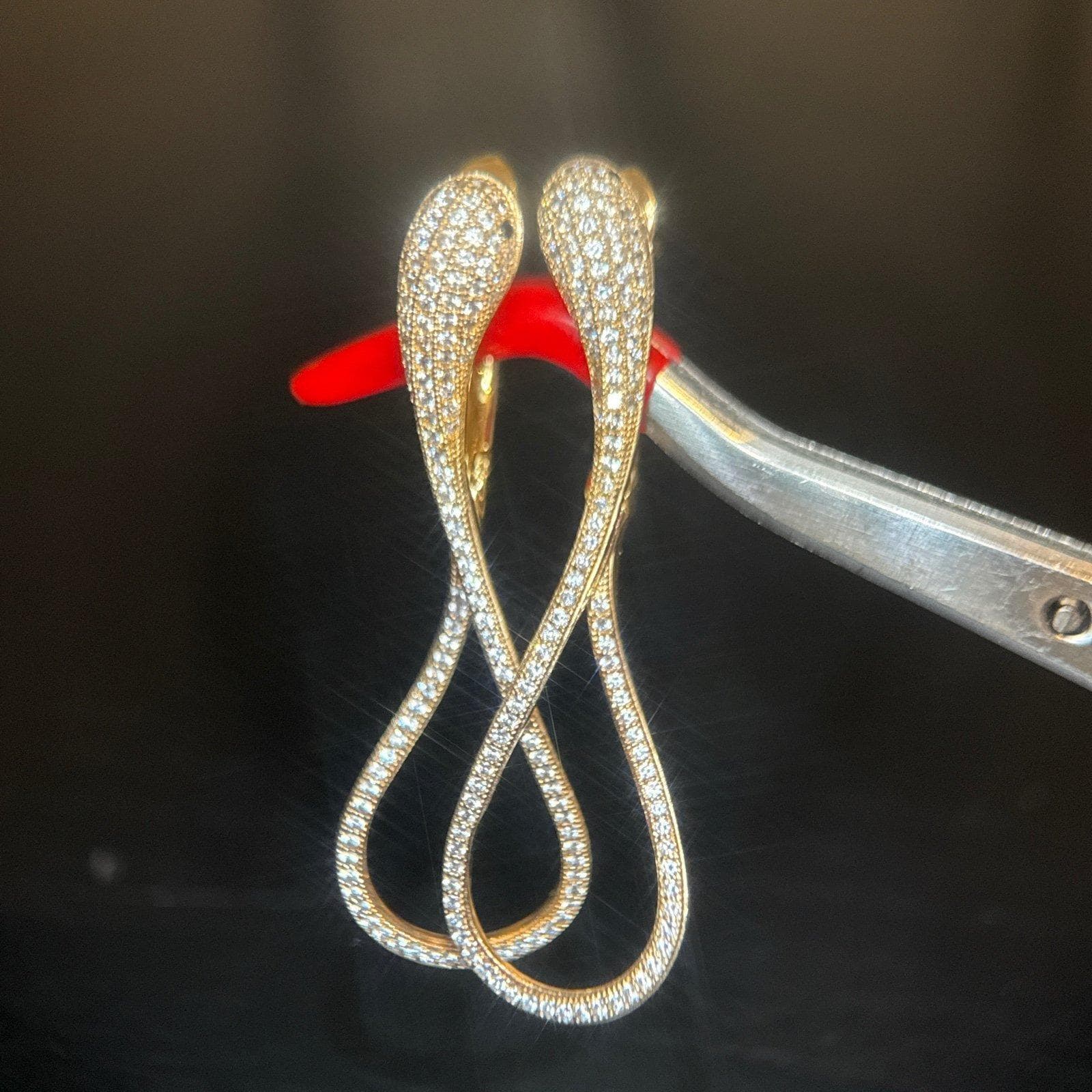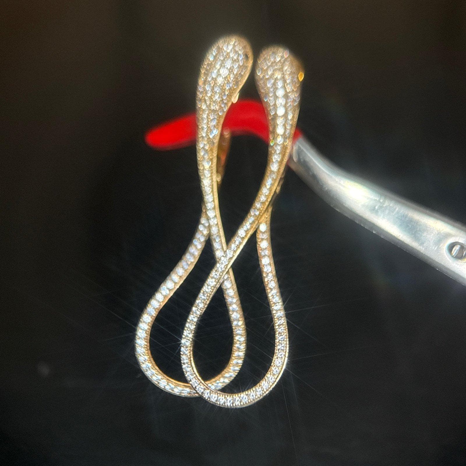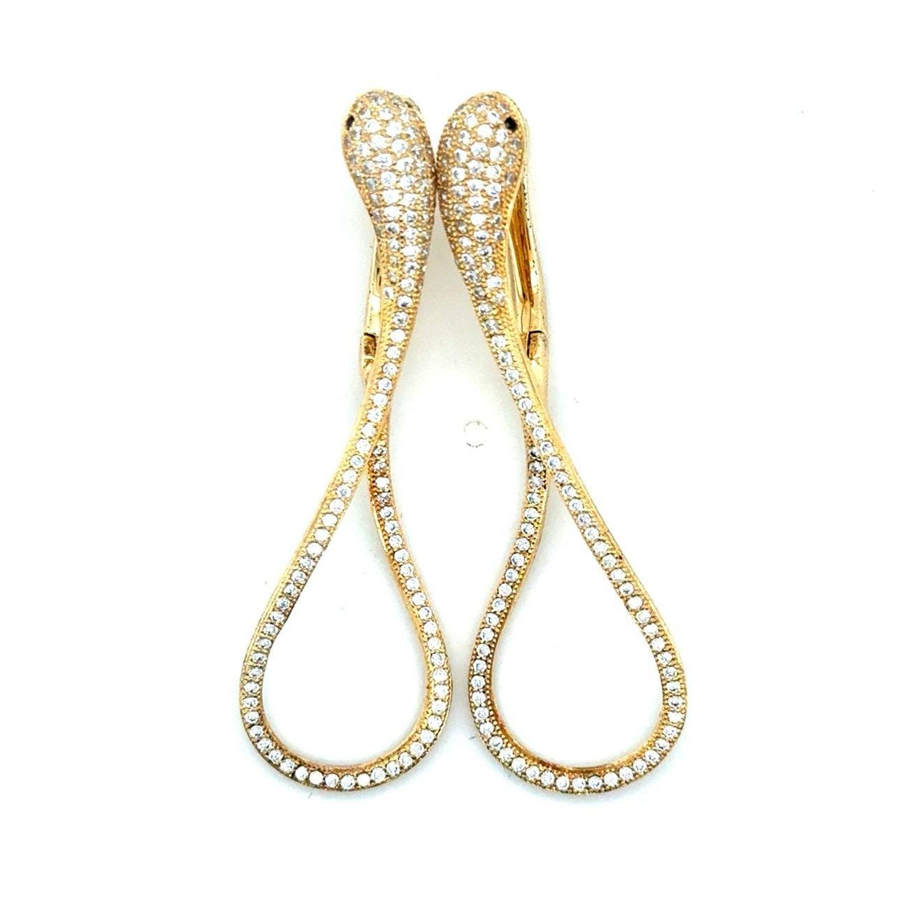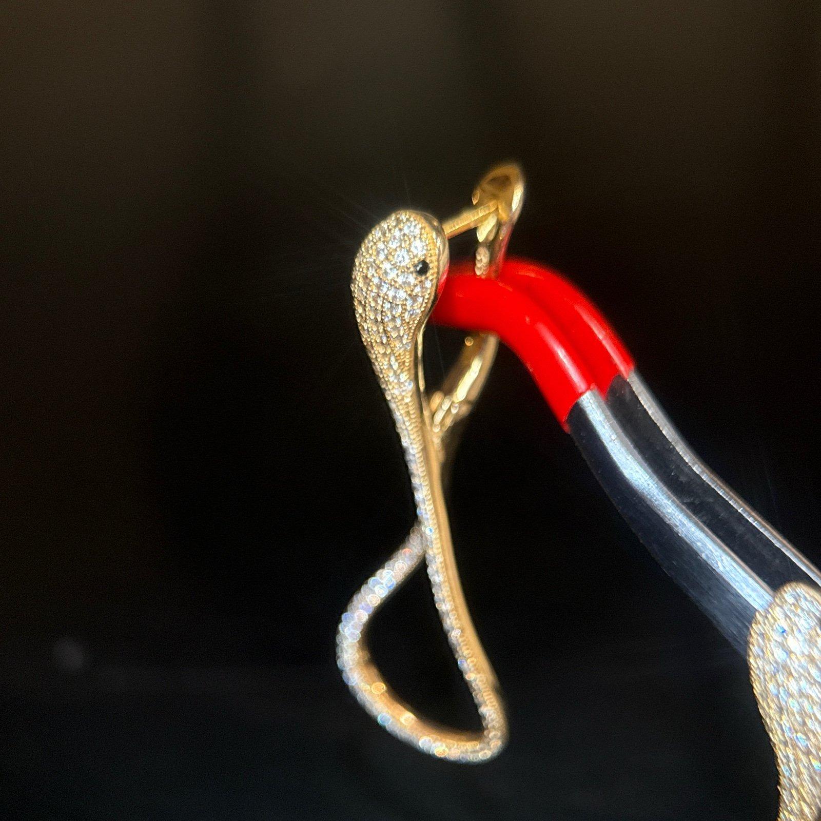 925 Gold Vermeil Pave Cz Snake Earrings with Black Eyes.