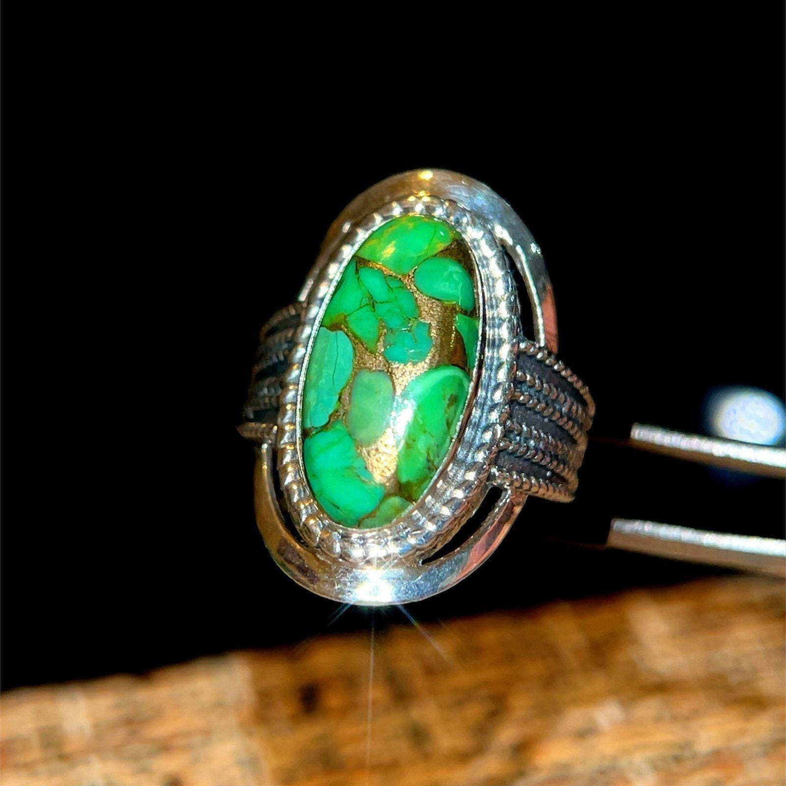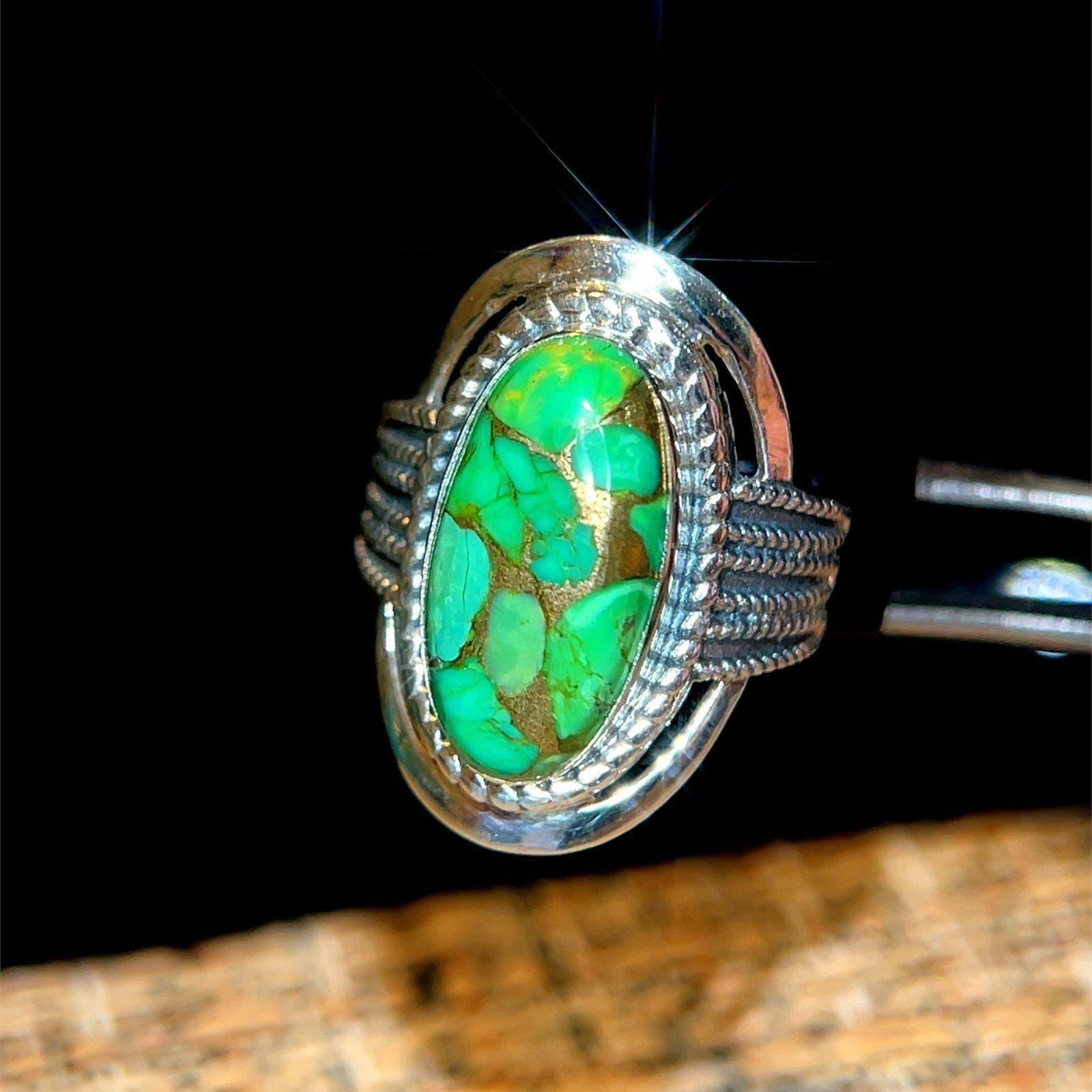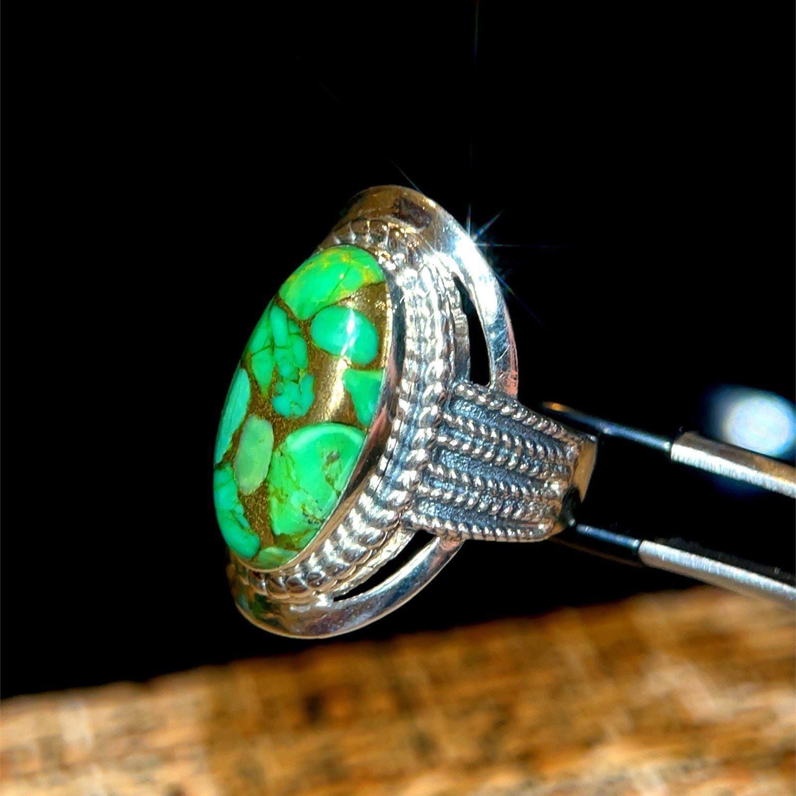 Be the first to review “925 India Green/Gold Oval Shaped Stone Ring”