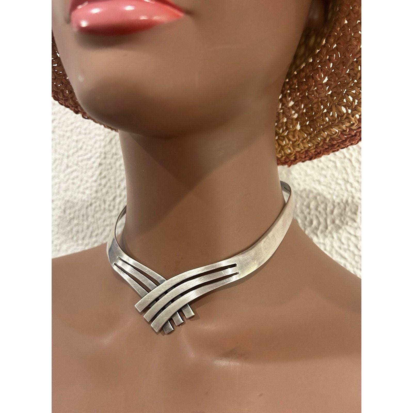 Sterling Silver 925 Bypass Mexican Open Collar Necklace.